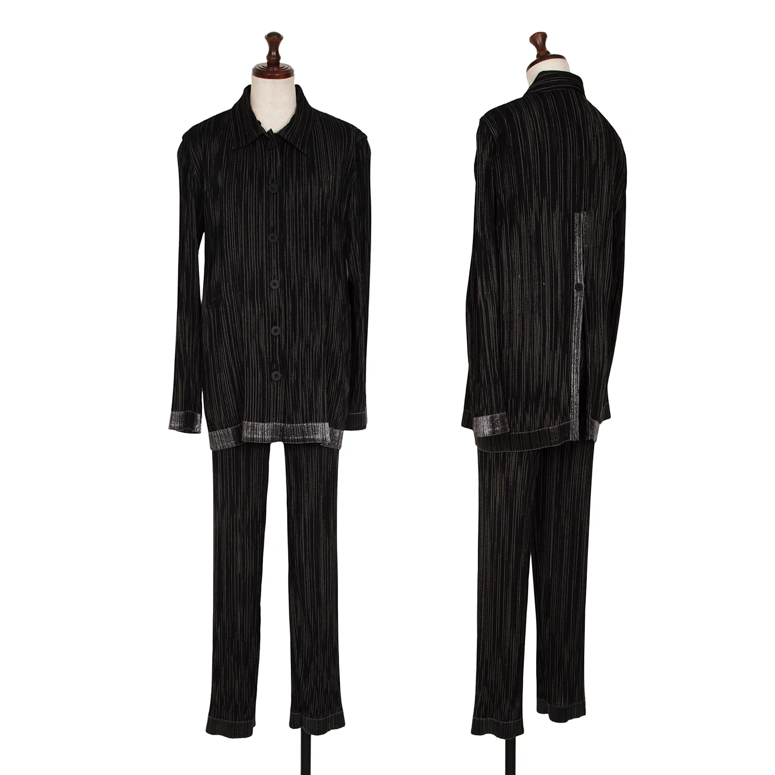 イッセイミヤケISSEY MIYAKEピンストライプステッチプリーツパンツ 黒M