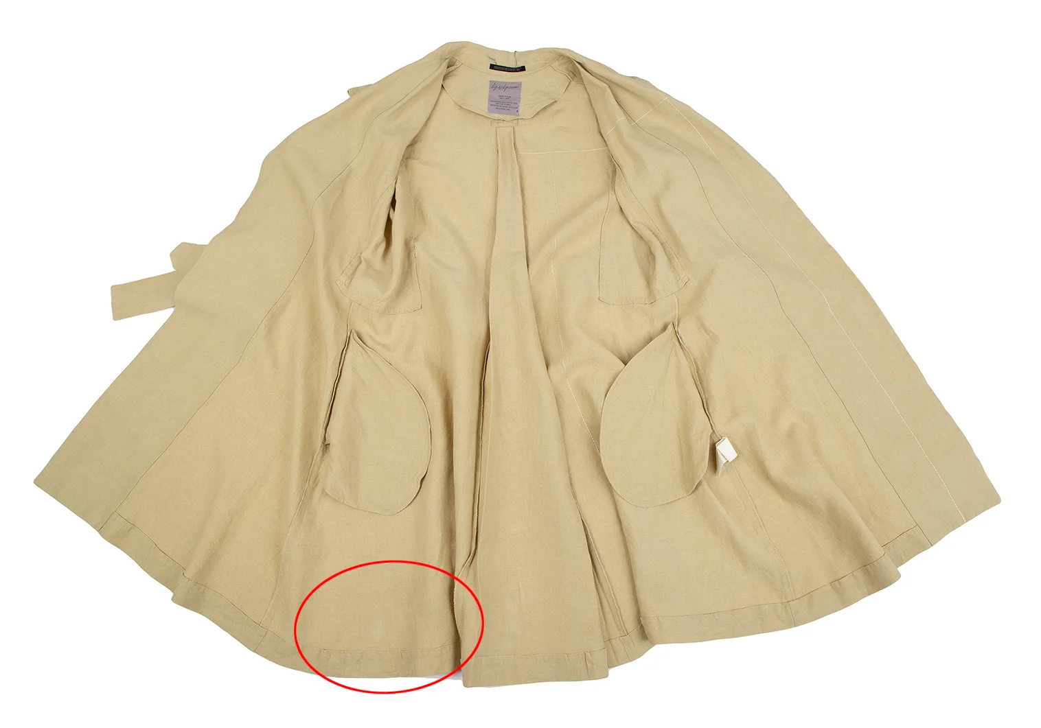 ヨウジヤマモト ファムYohji Yamamoto FEMME リネンボタンレスカットコート ベージュ2