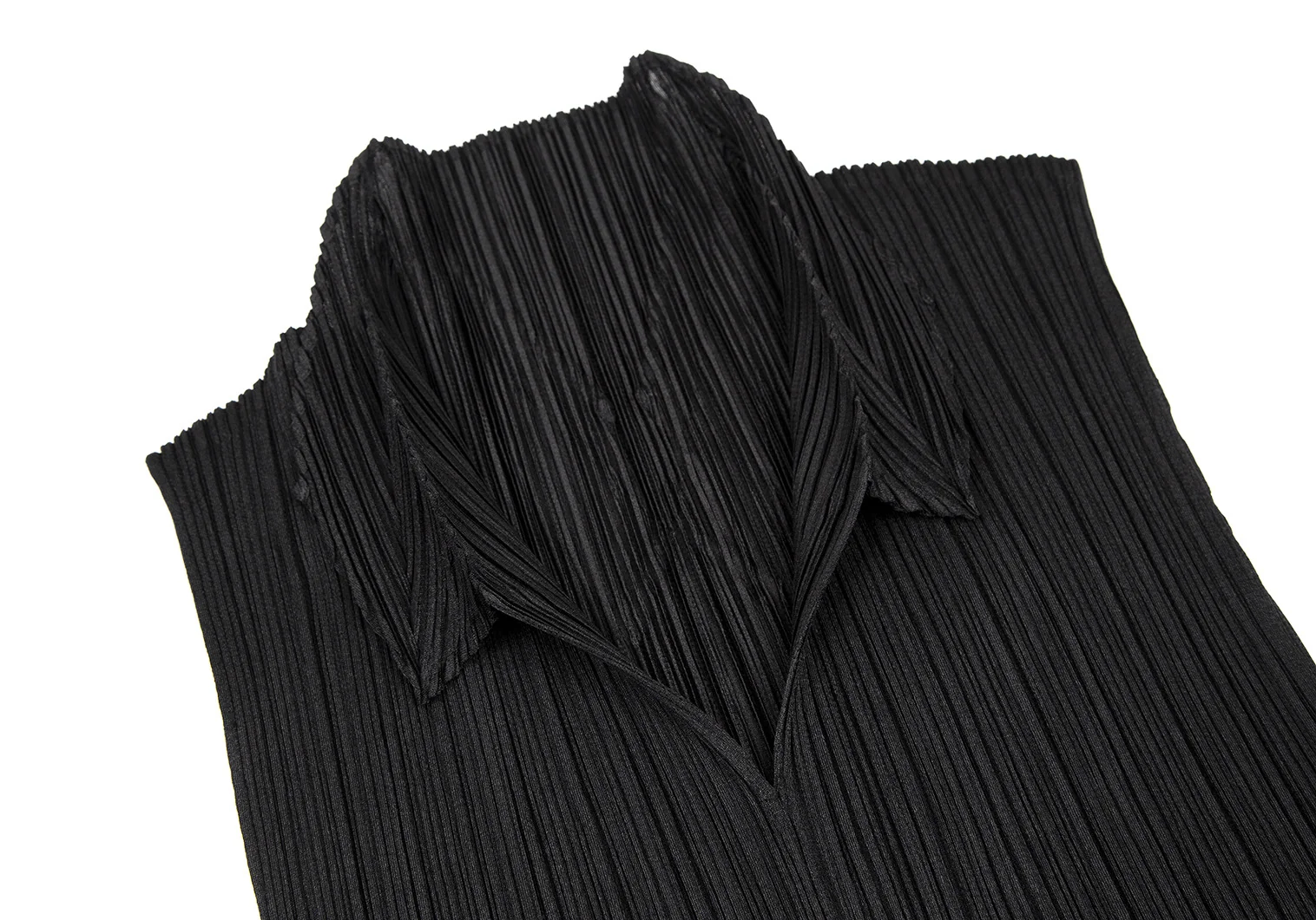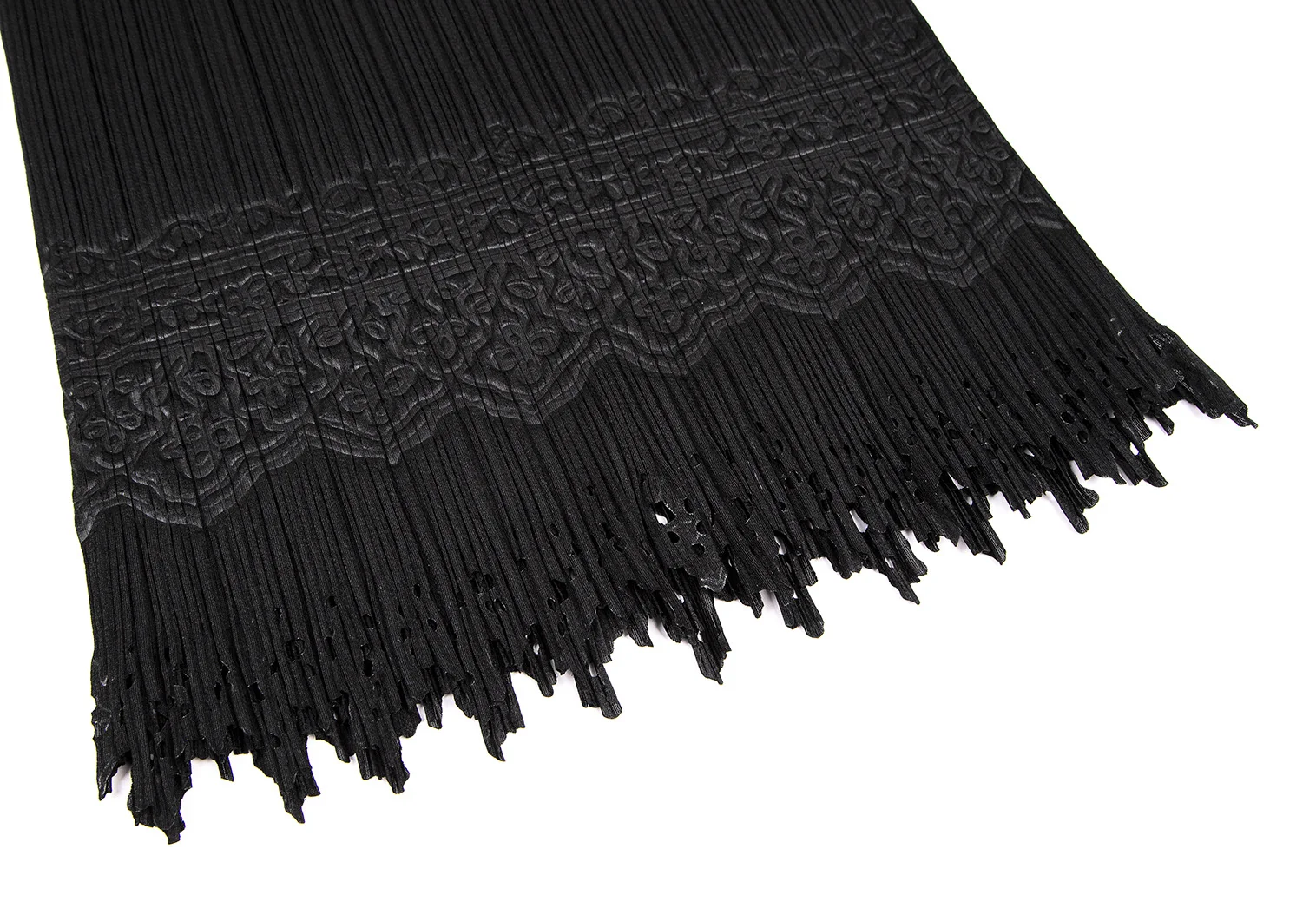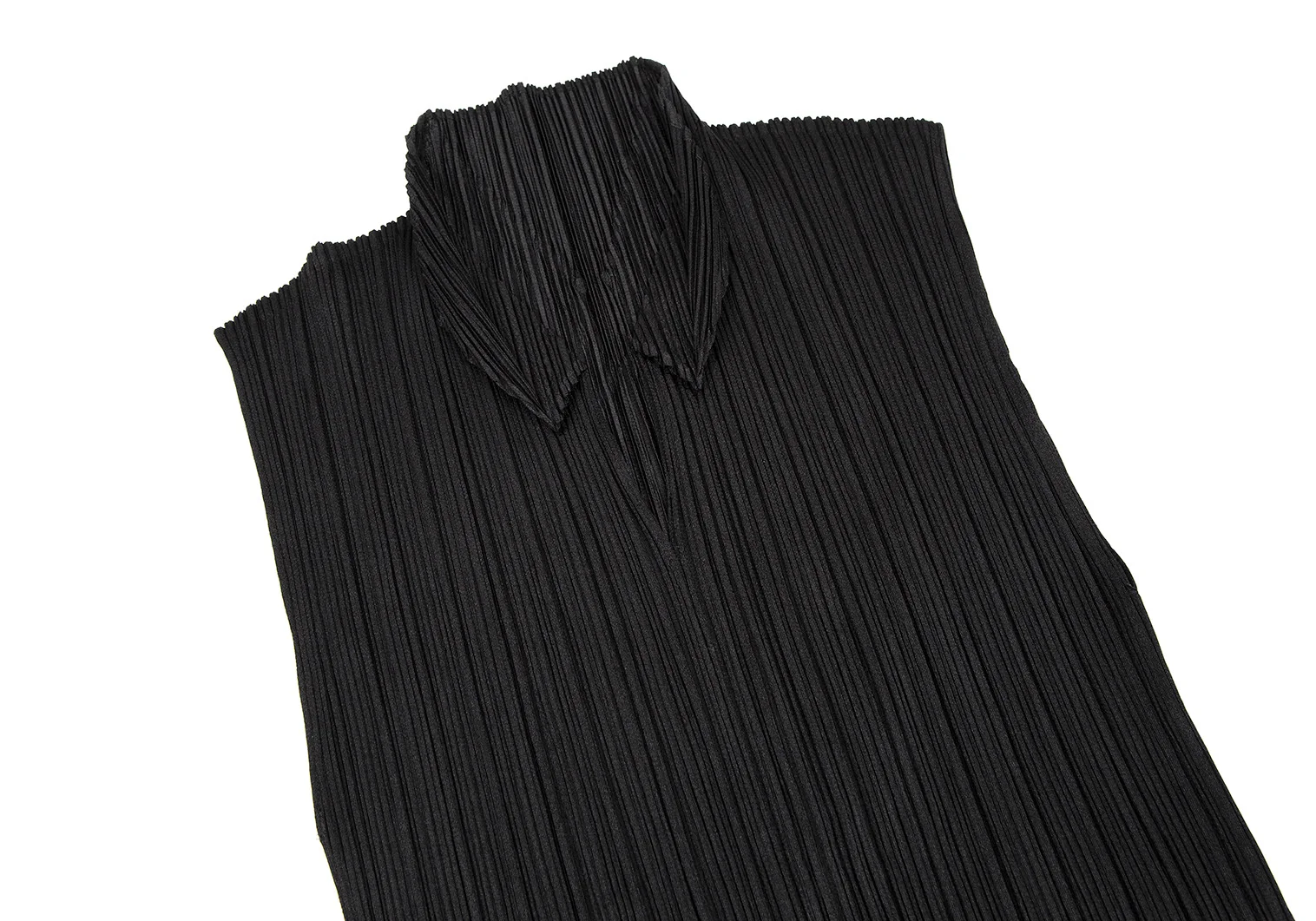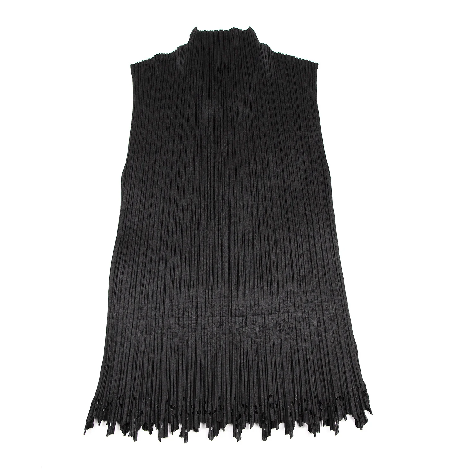プリーツプリーズPLEATS PLEASE ダマスクエンボス裾カッティングノースリーブトップス 黒3