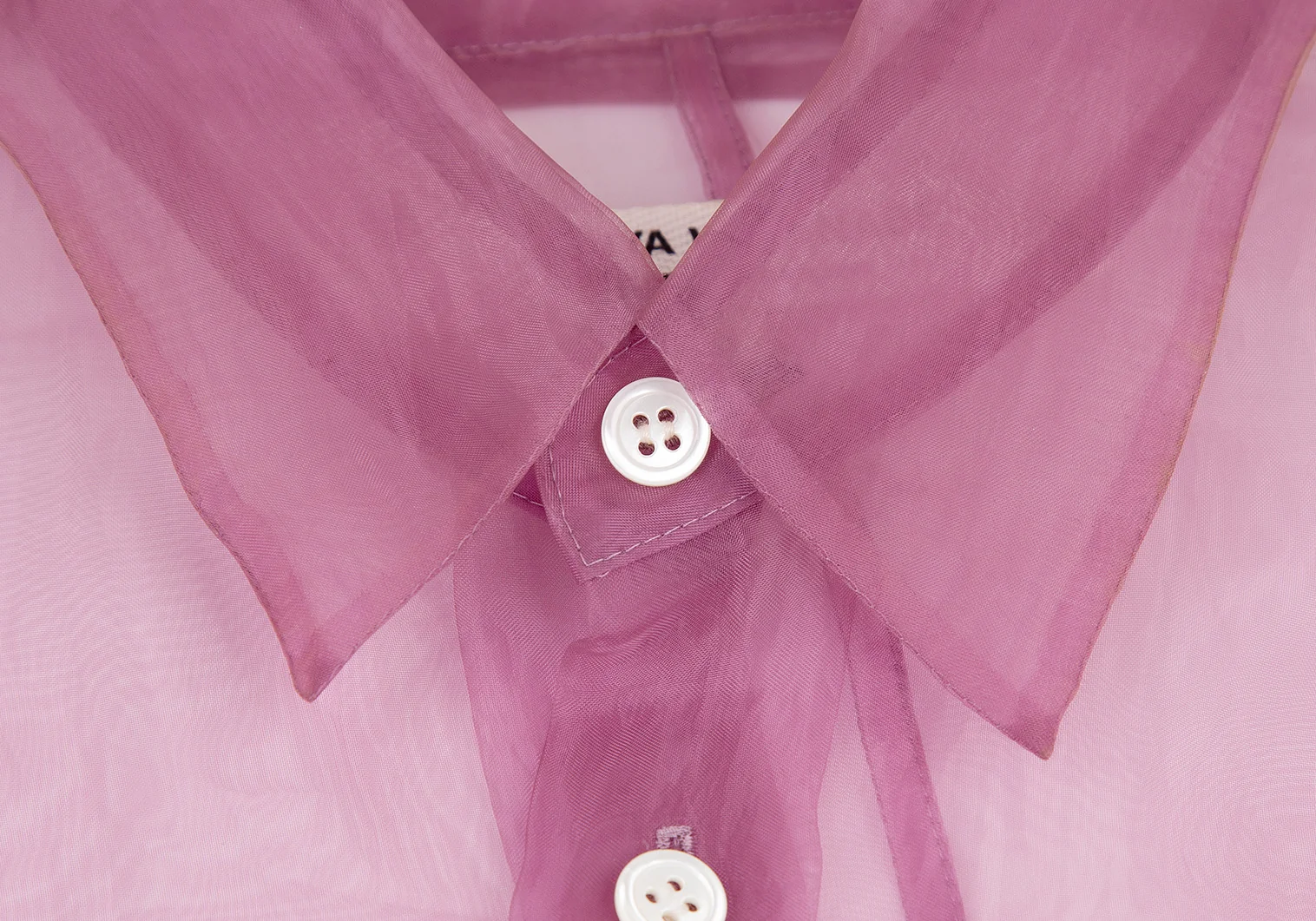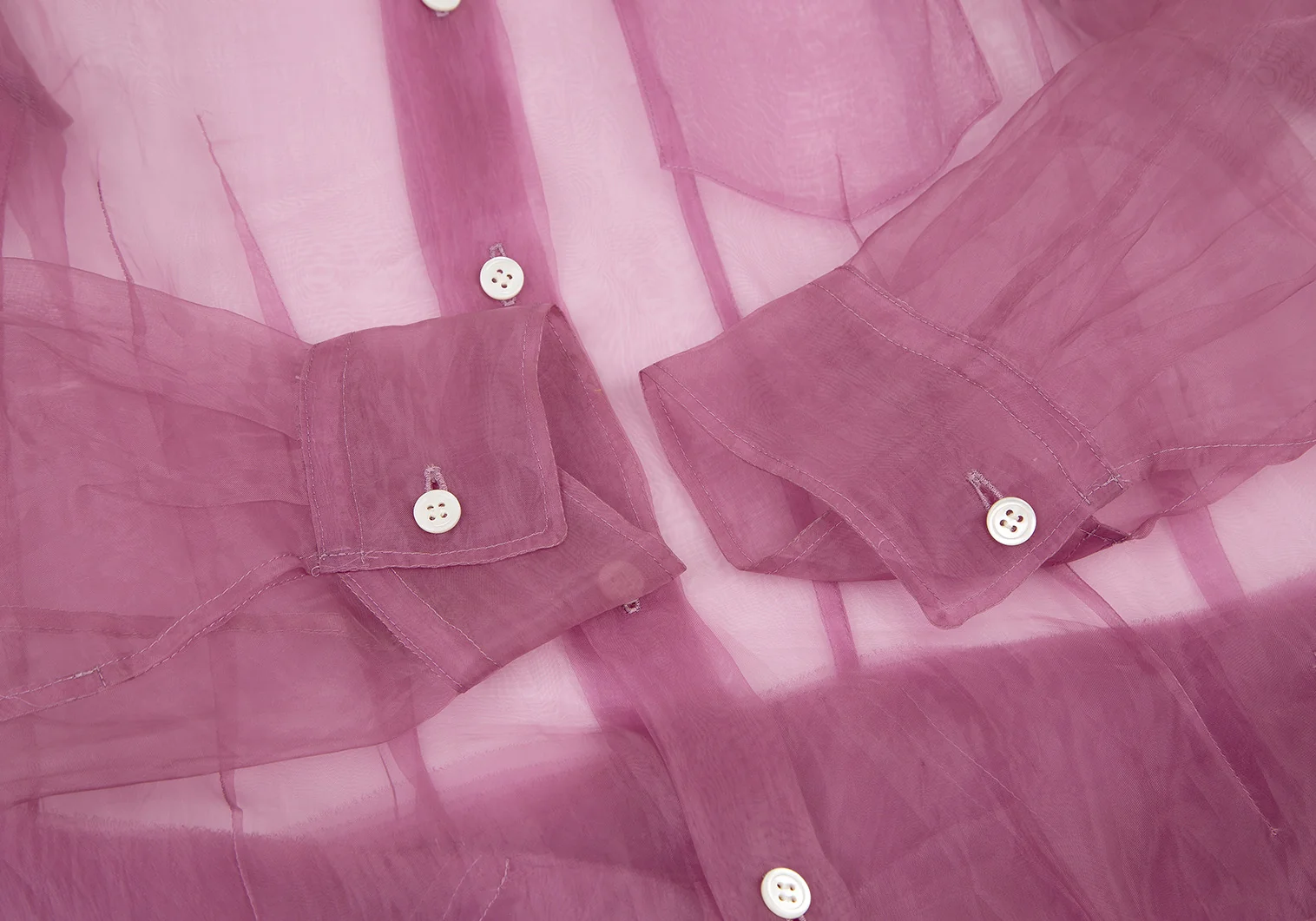 ジュンヤワタナベ コムデギャルソンJUNYA WATANABE COMME des GARCONS 裾フリルシースルーシャツ M位 紫S