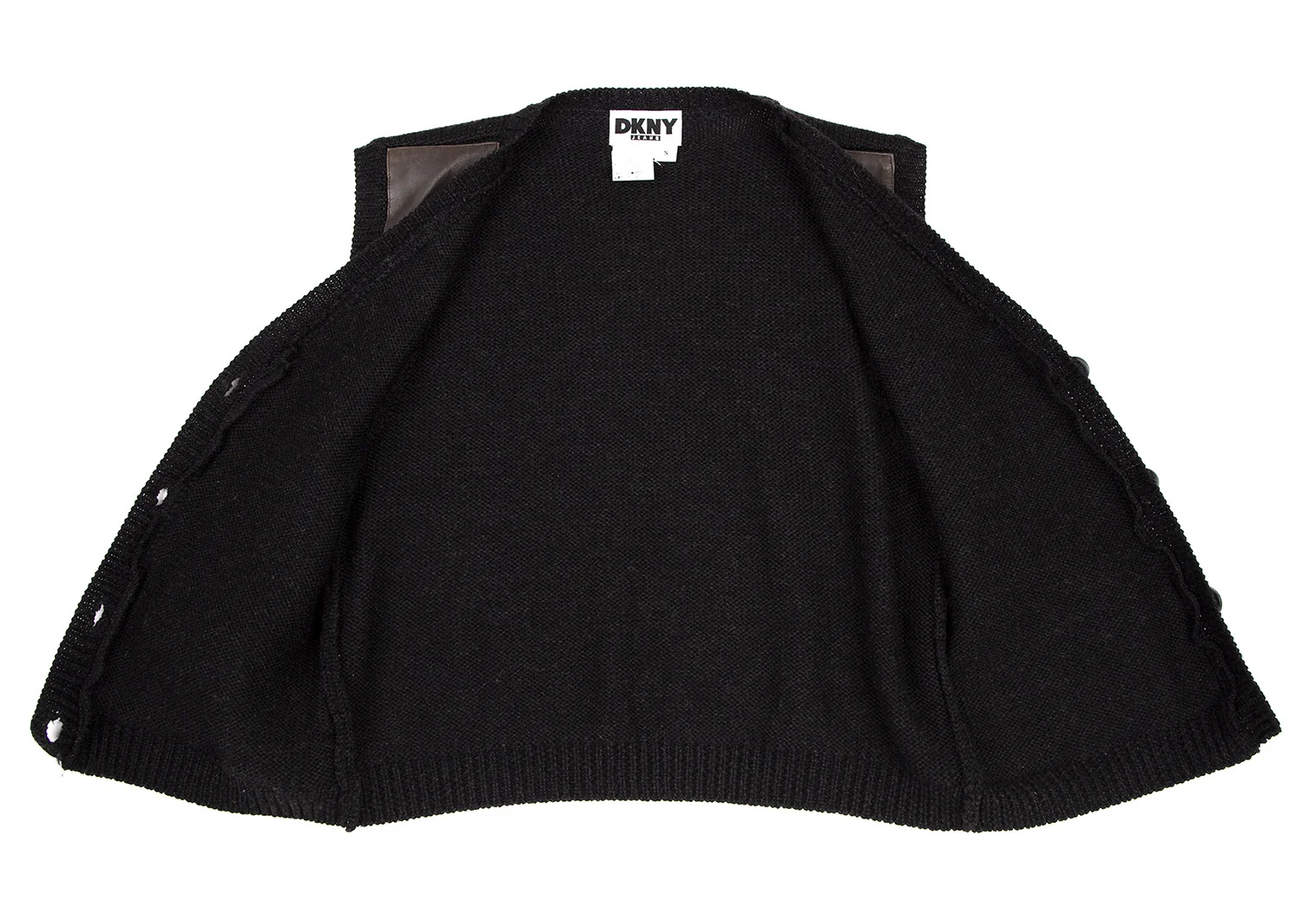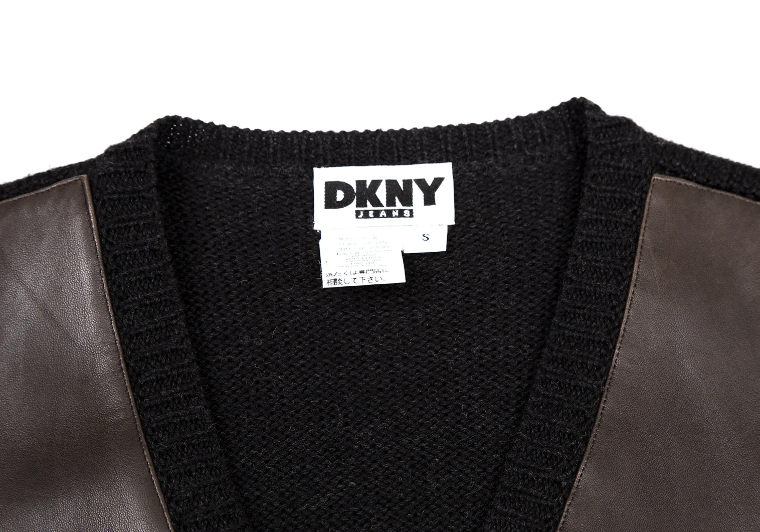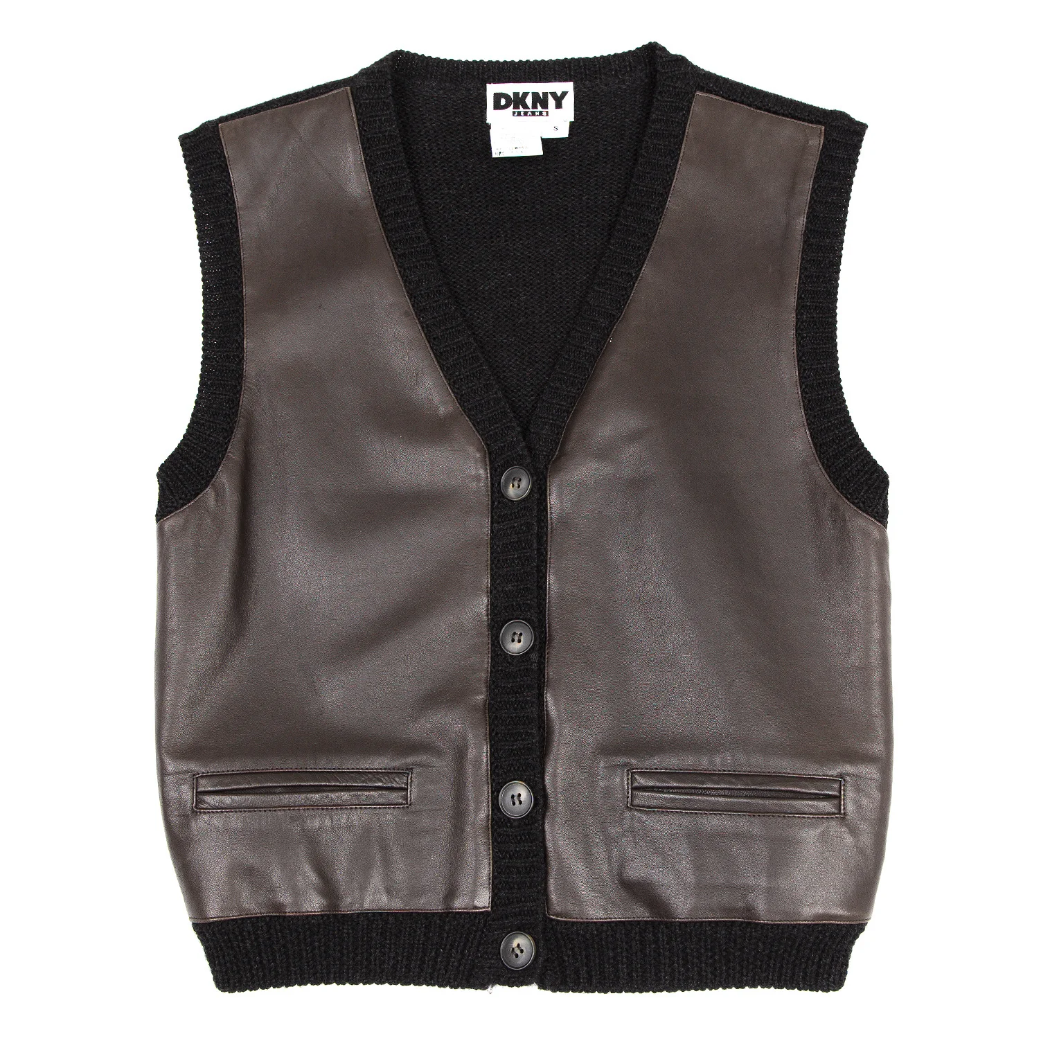 ダナキャランジーンズDKNY JEANS フロントレザー切替ニットベスト 茶黒S