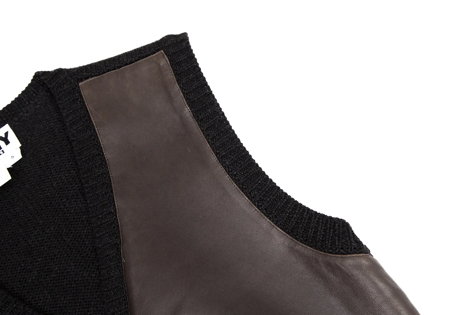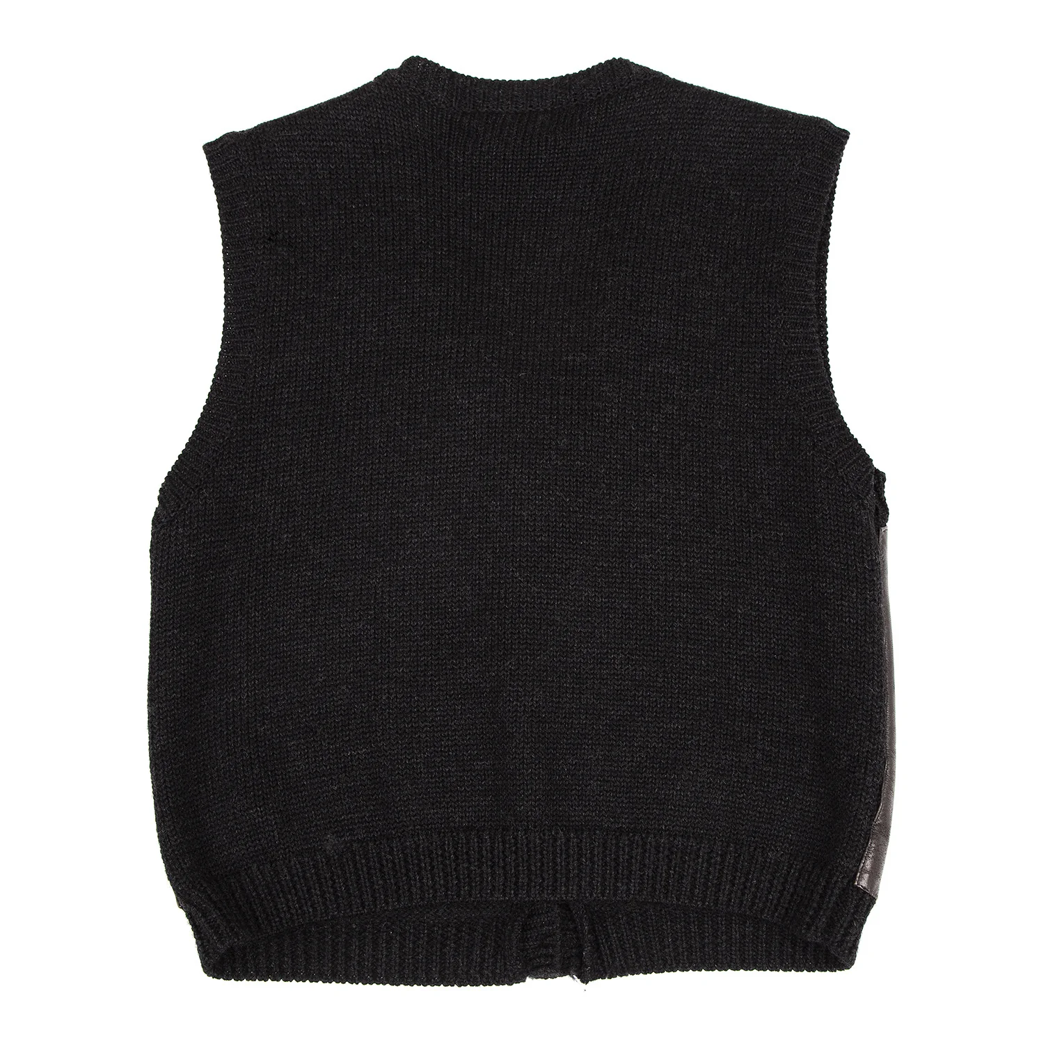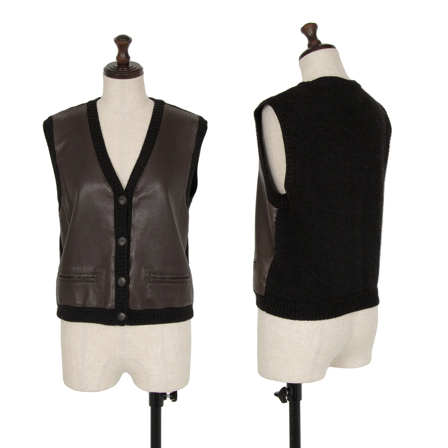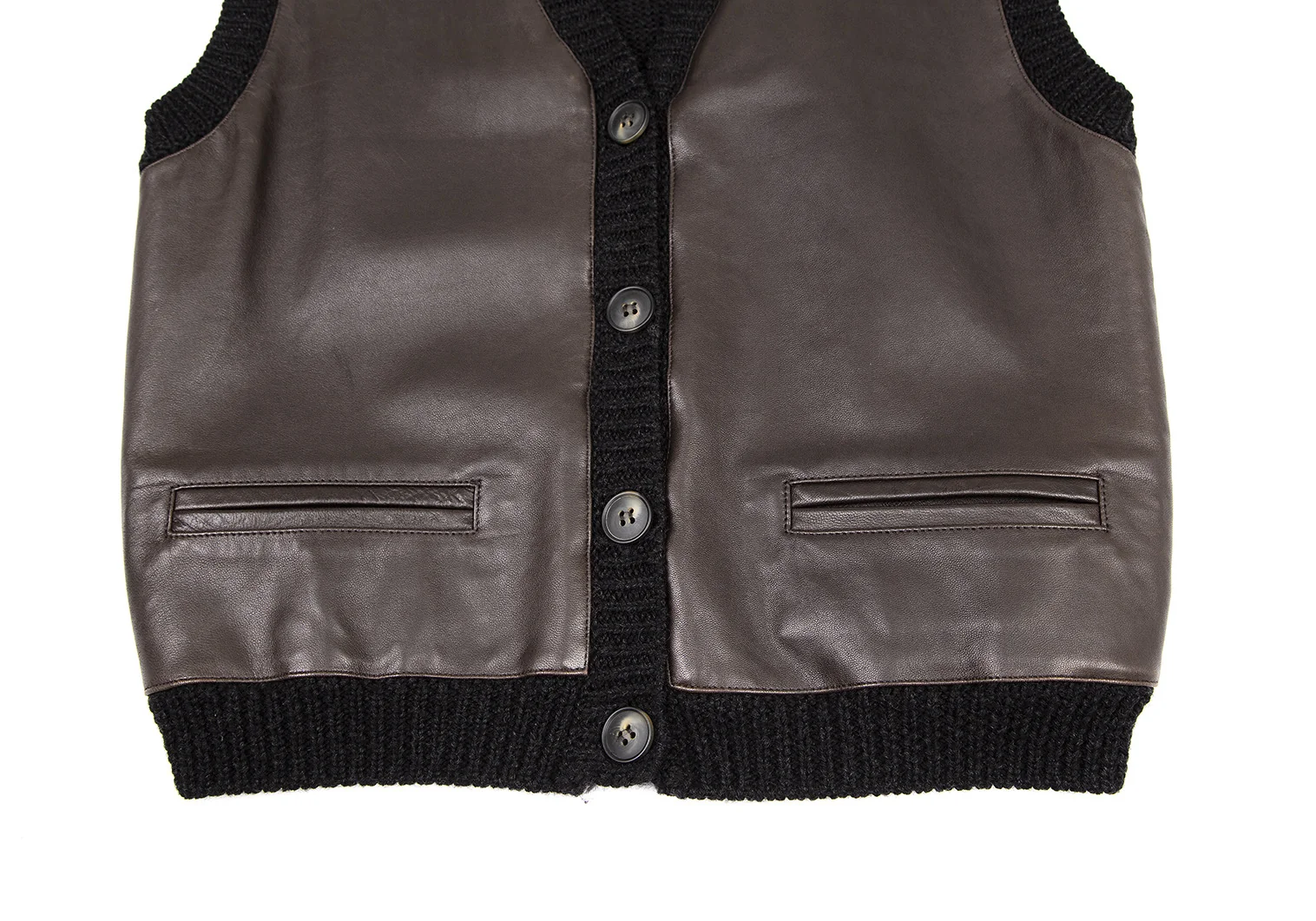 ダナキャランジーンズDKNY JEANS フロントレザー切替ニットベスト 茶黒S