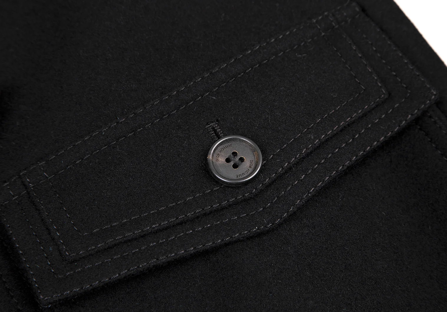 ディオールオムDior homme ウールダブルトルグボタンデザインダッフルコート 黒44