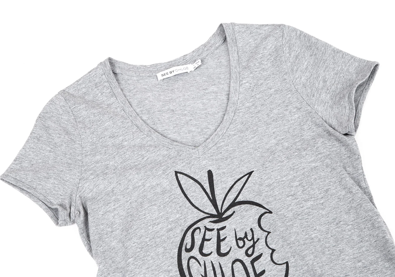 シーバイクロエSEE BY CHLOE アップルロゴプリントTシャツ 杢グレー40
