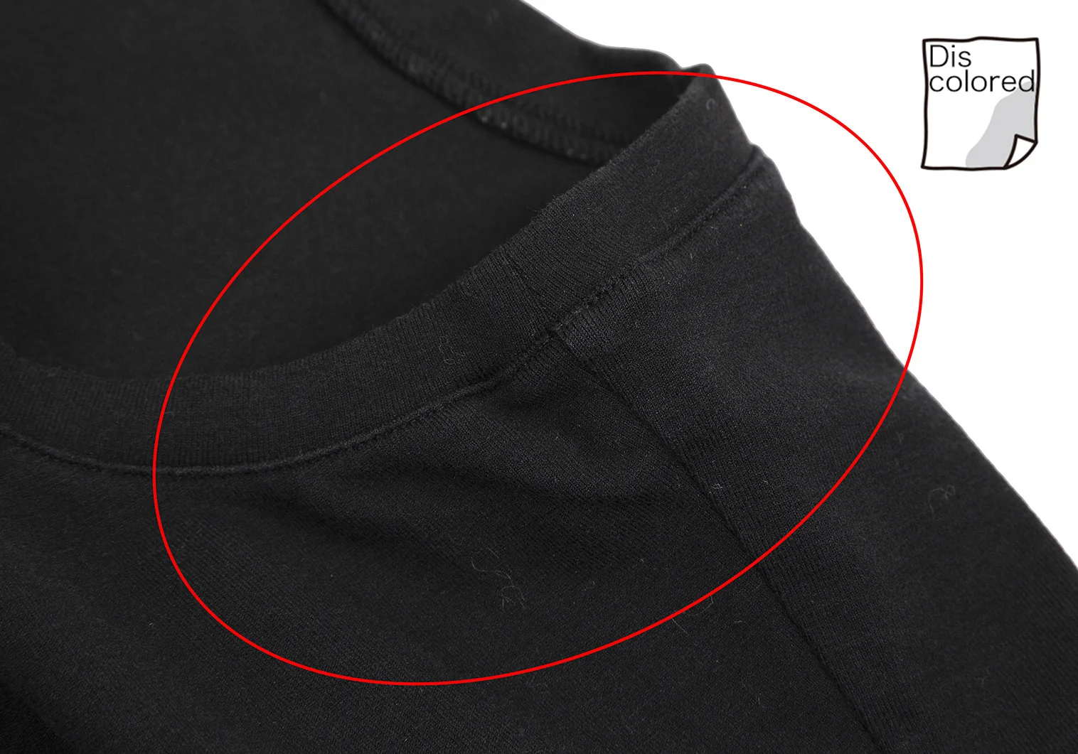 品質タグがカットされています。首周り・脇に色褪せがあります(写真参照)。その他目立ったシミ、汚れ、ほつれ等なくいい状態です。クリーニング済み