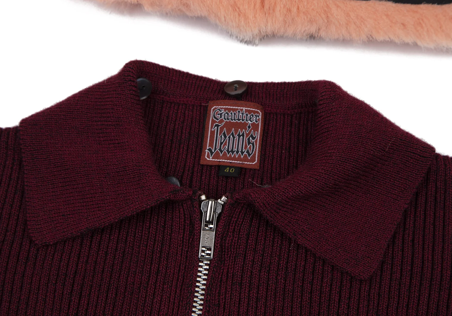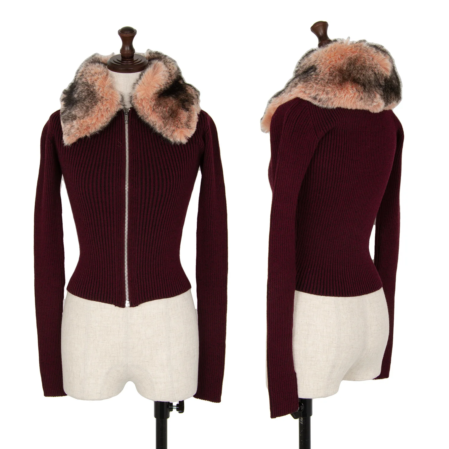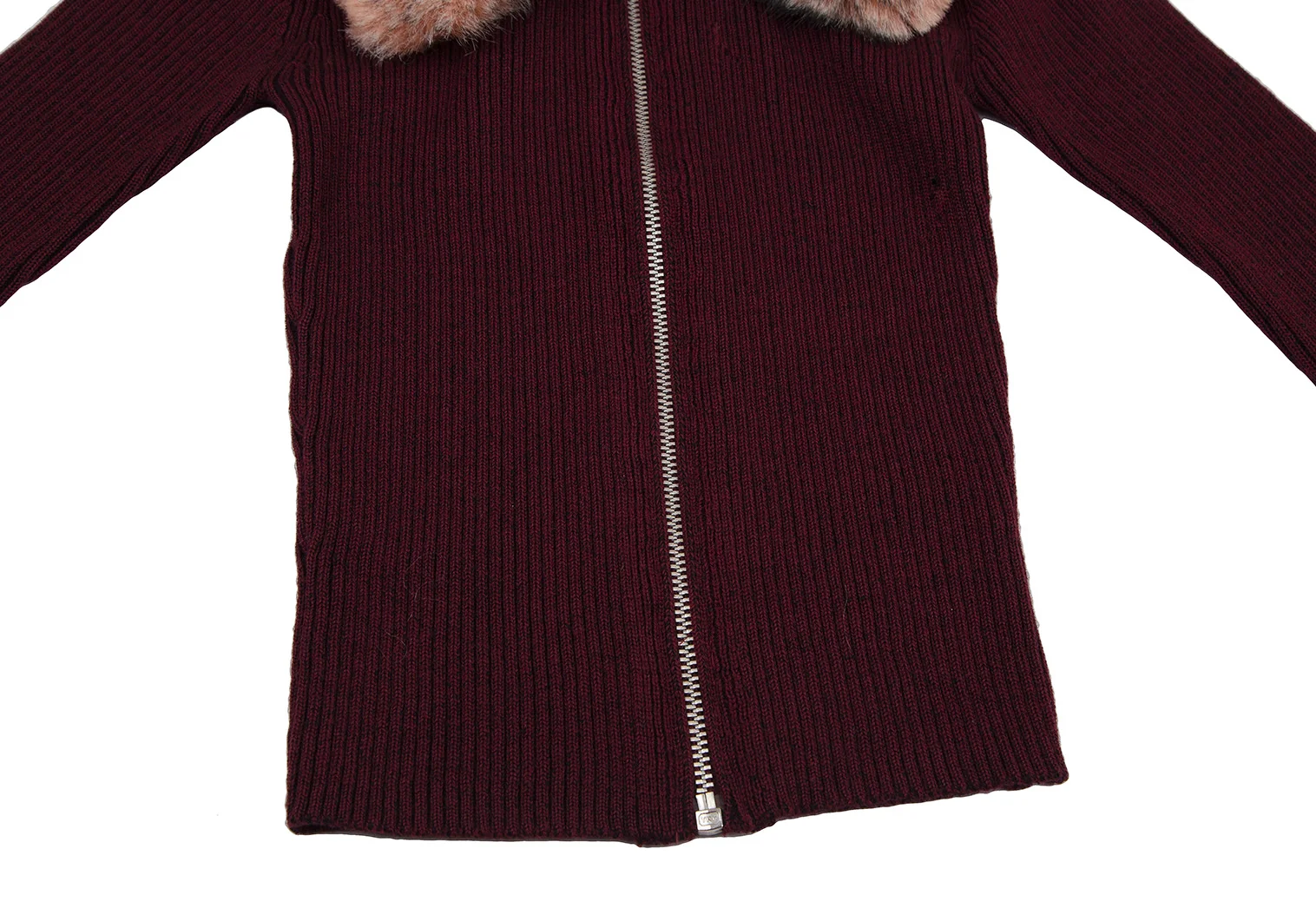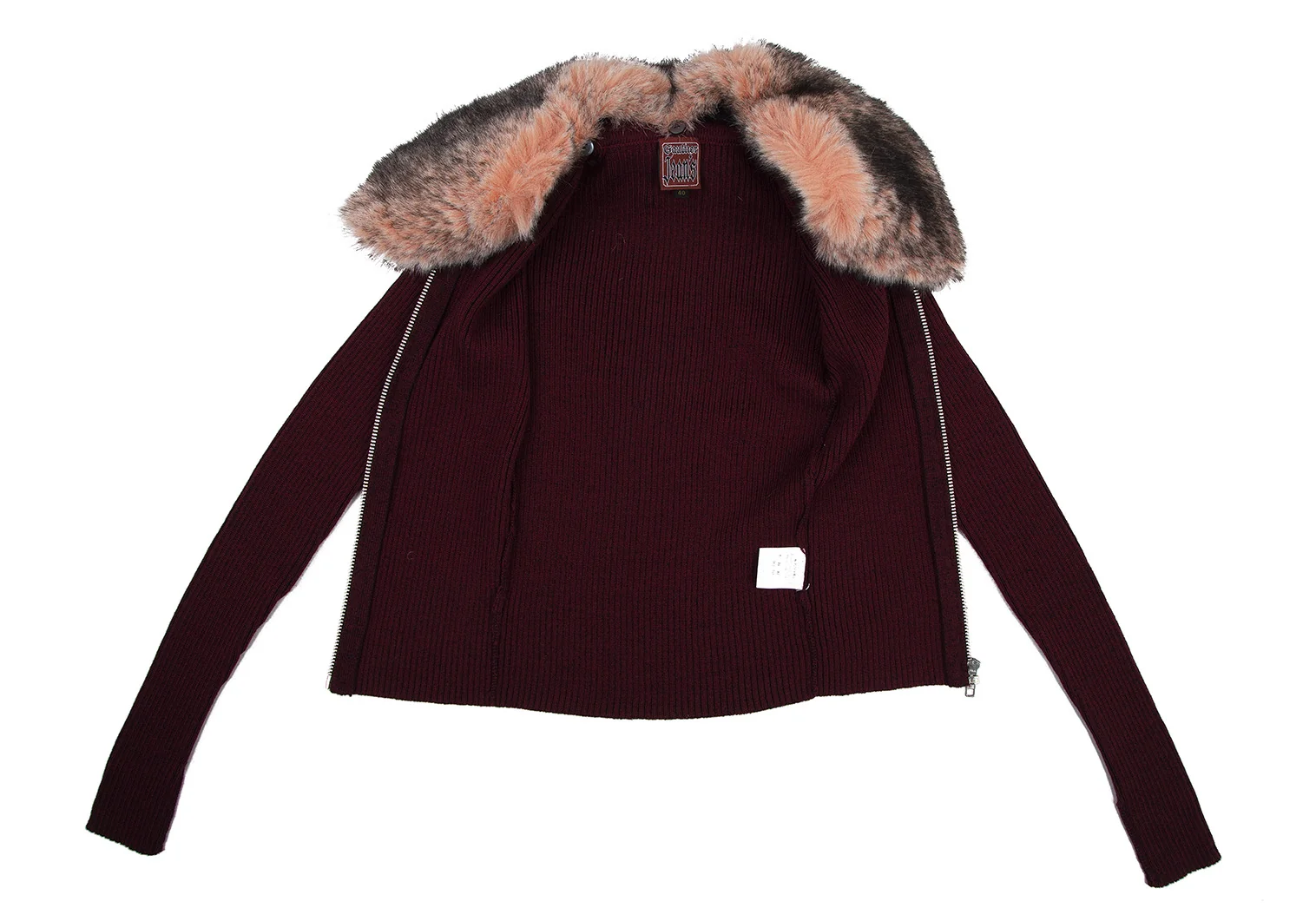ゴルチエジーンズGAULTIER JEAN'S 襟ファー着脱ジップアップリブニット ボルドー40