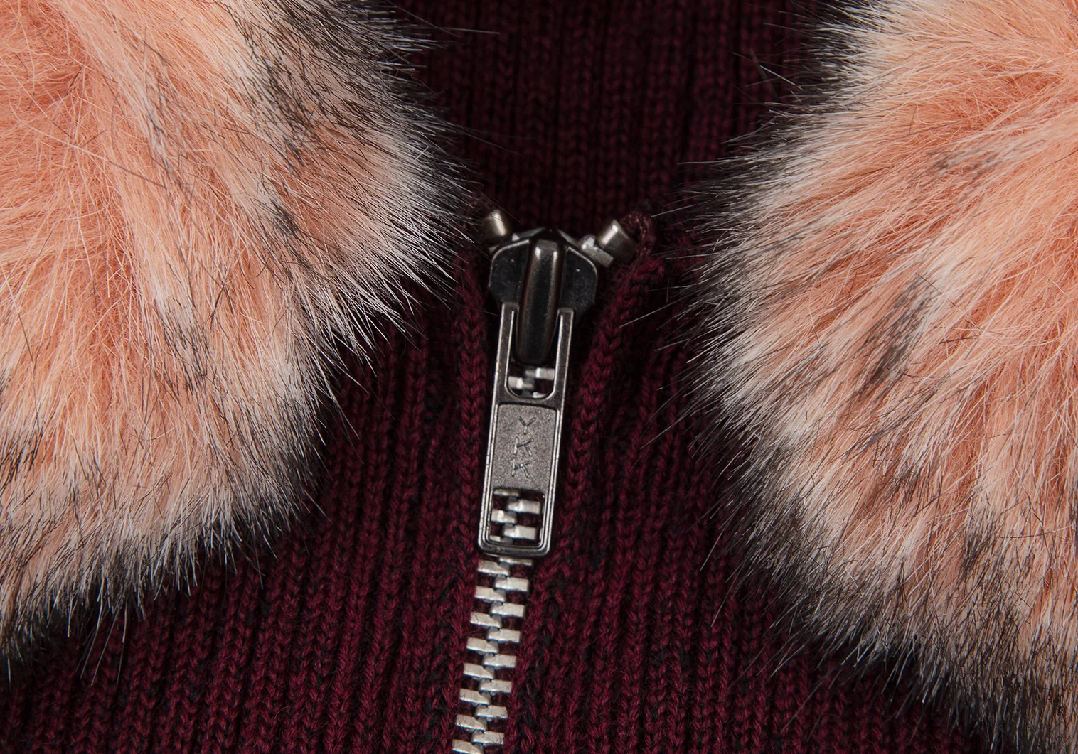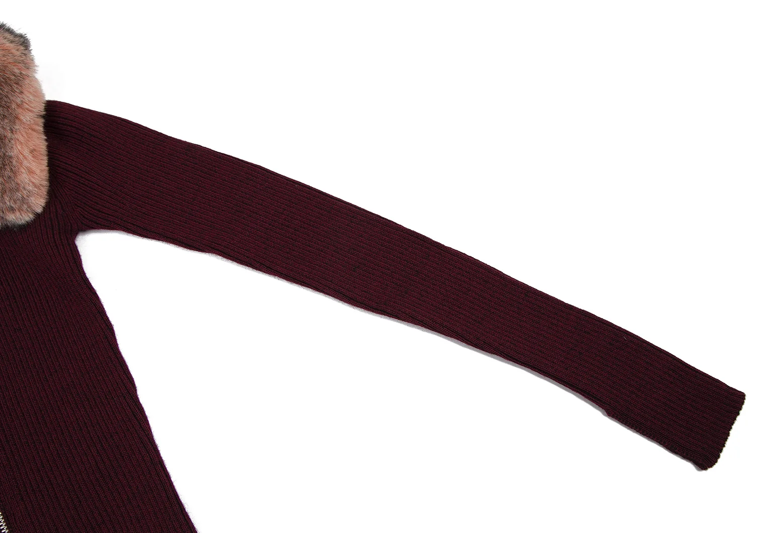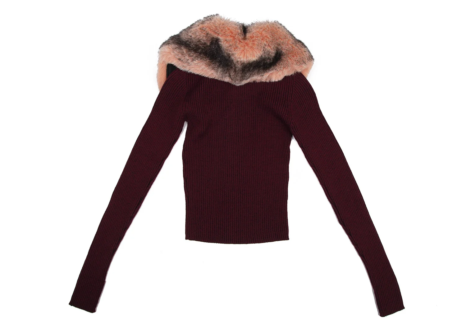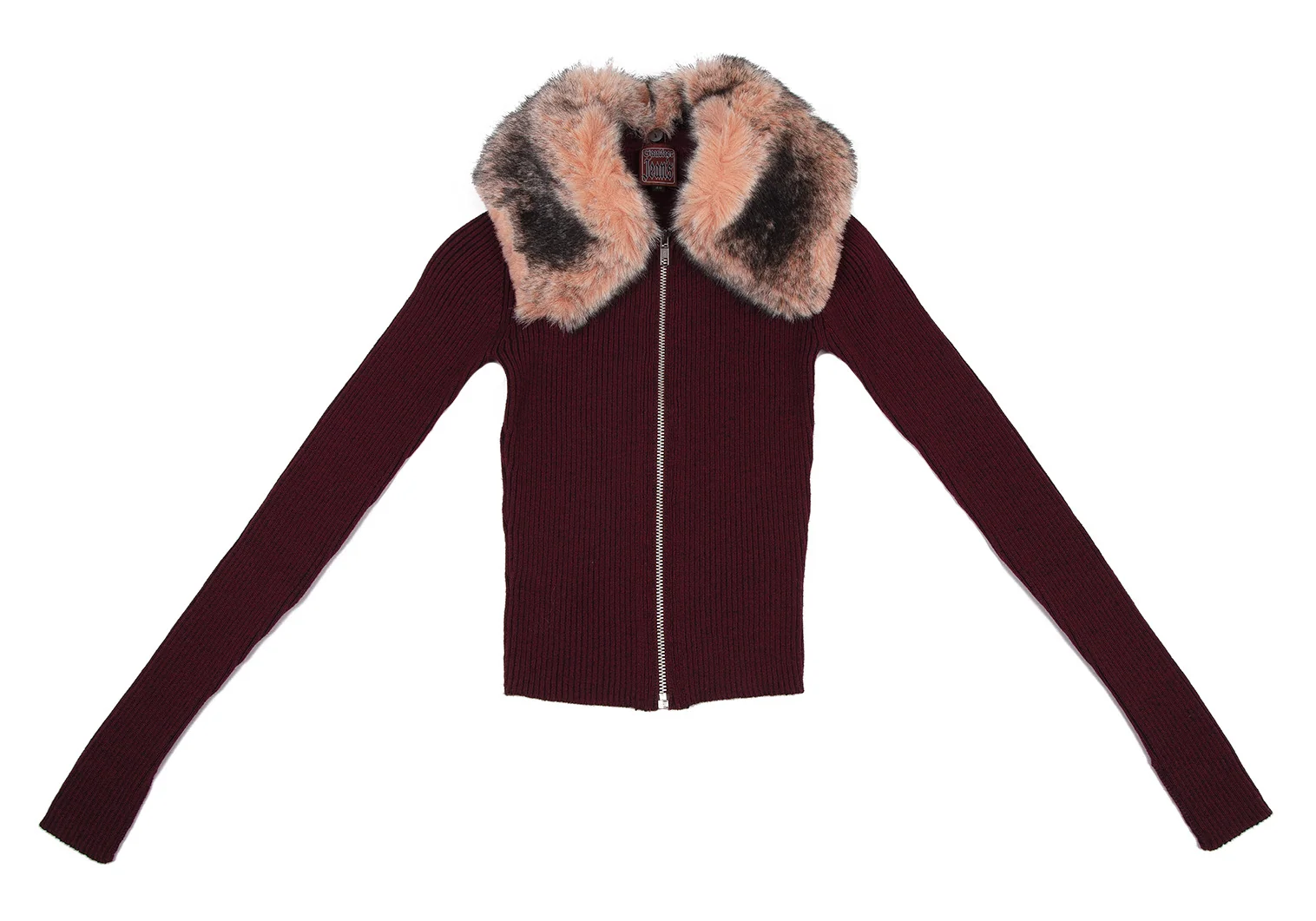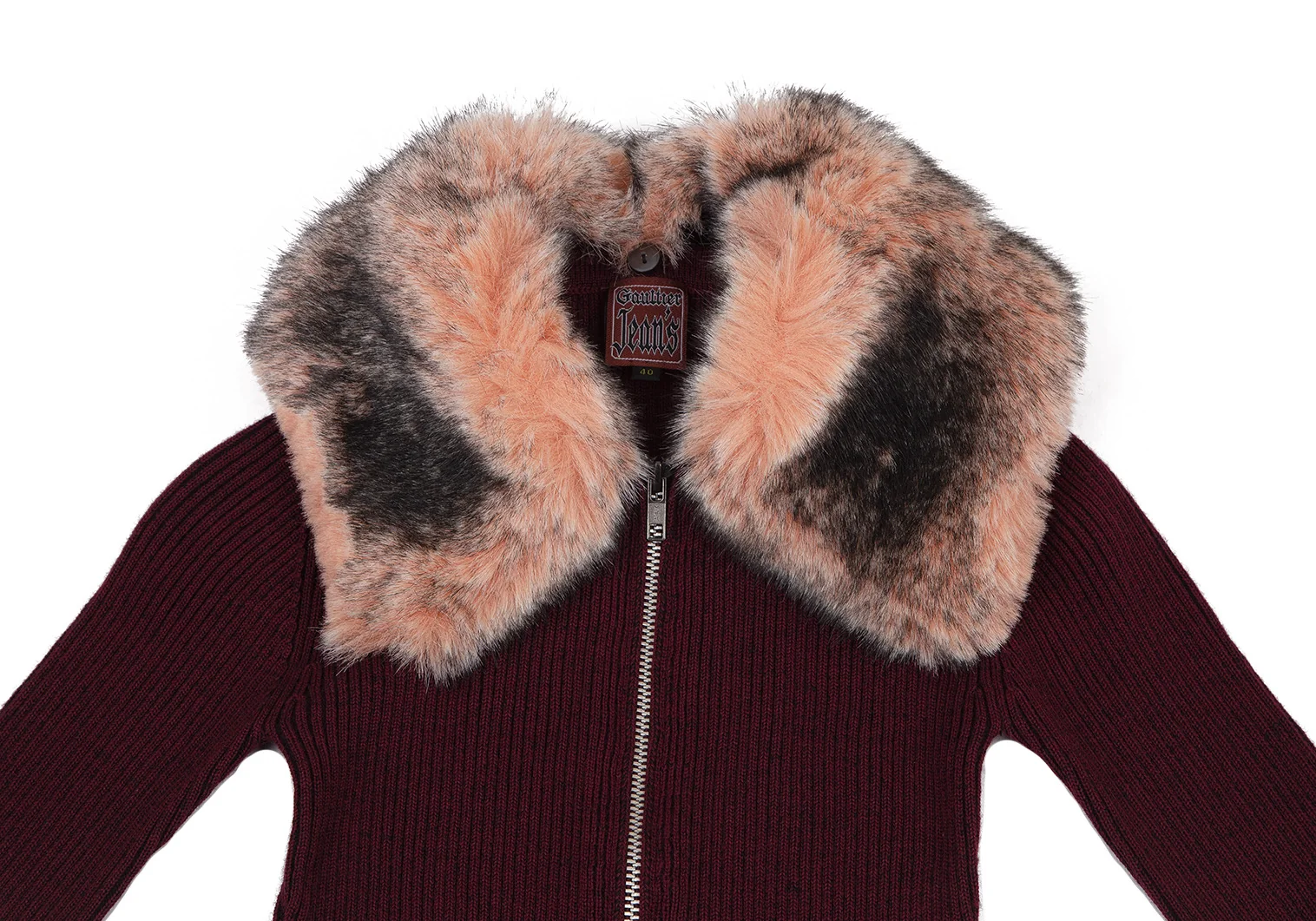 ゴルチエジーンズGAULTIER JEAN'S 襟ファー着脱ジップアップリブニット ボルドー40