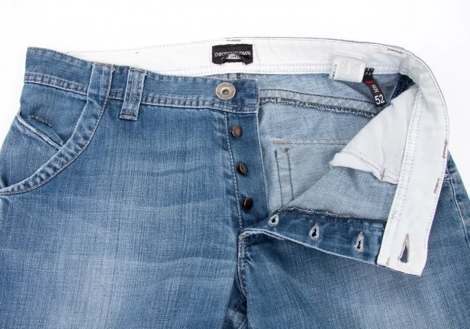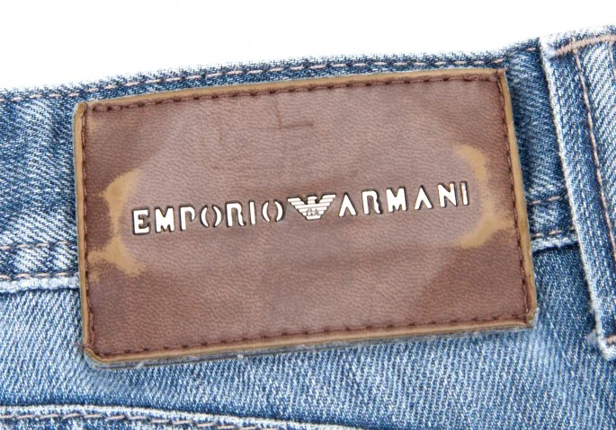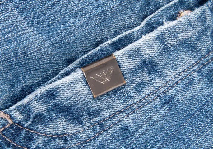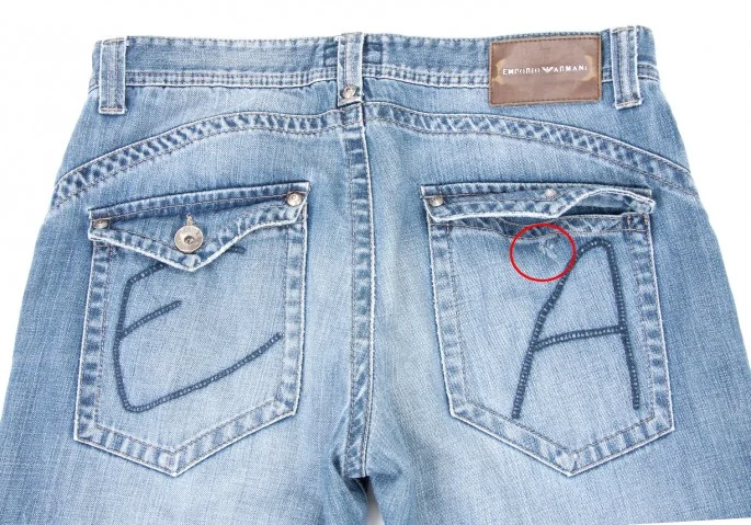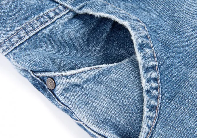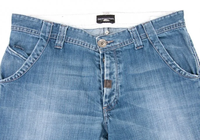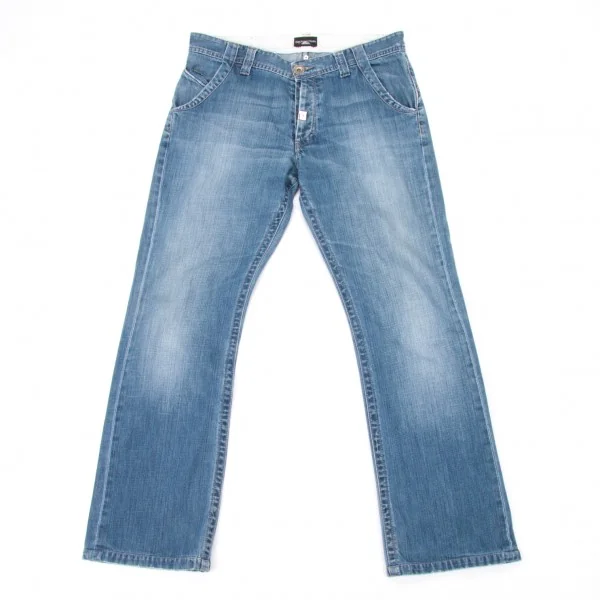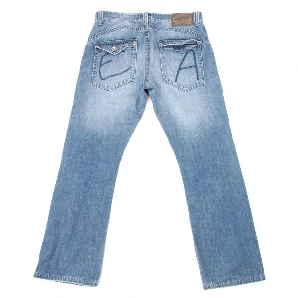 エンポリオ アルマーニEMPORIO ARMANI バックポケットロゴ刺繍デザインジーンズ 青52