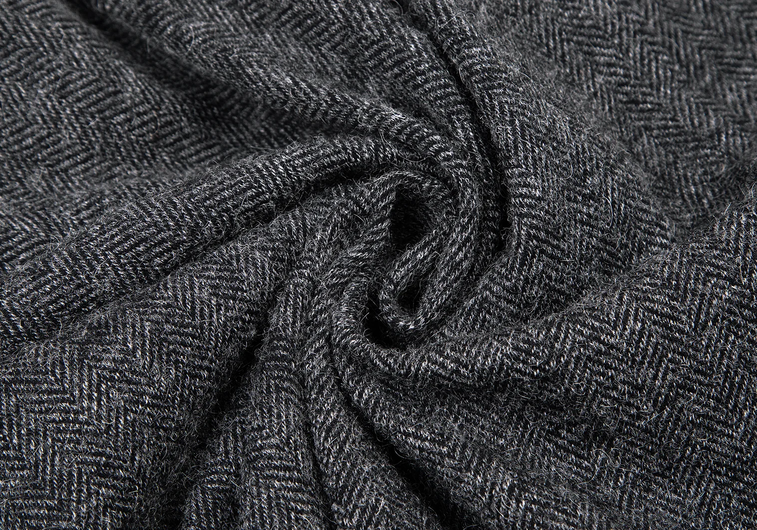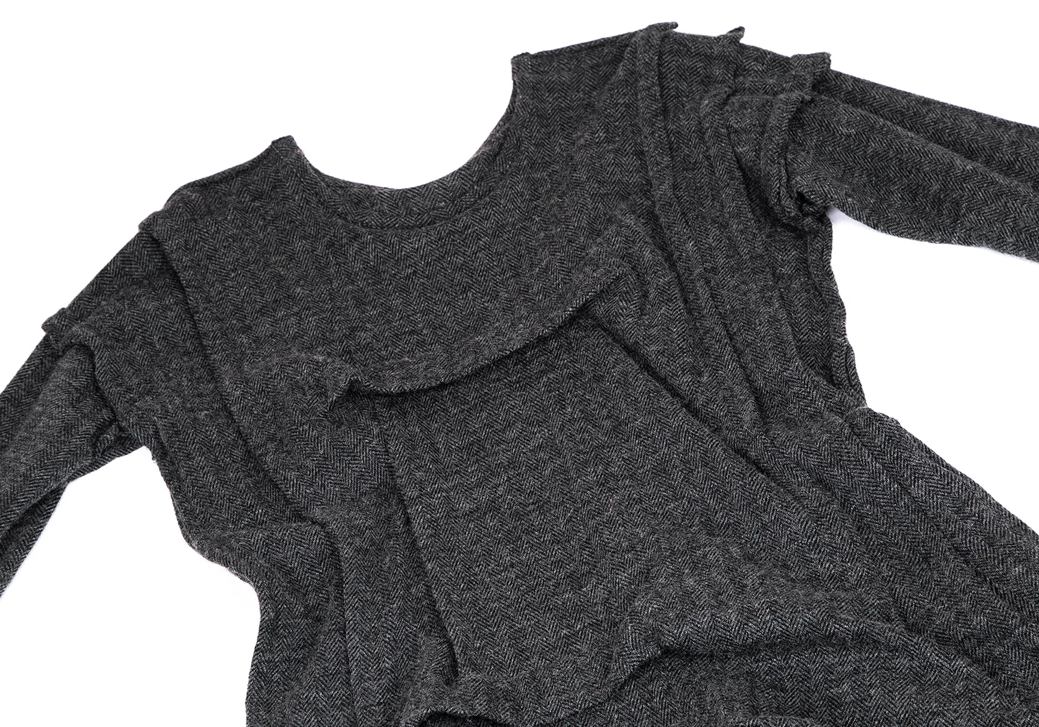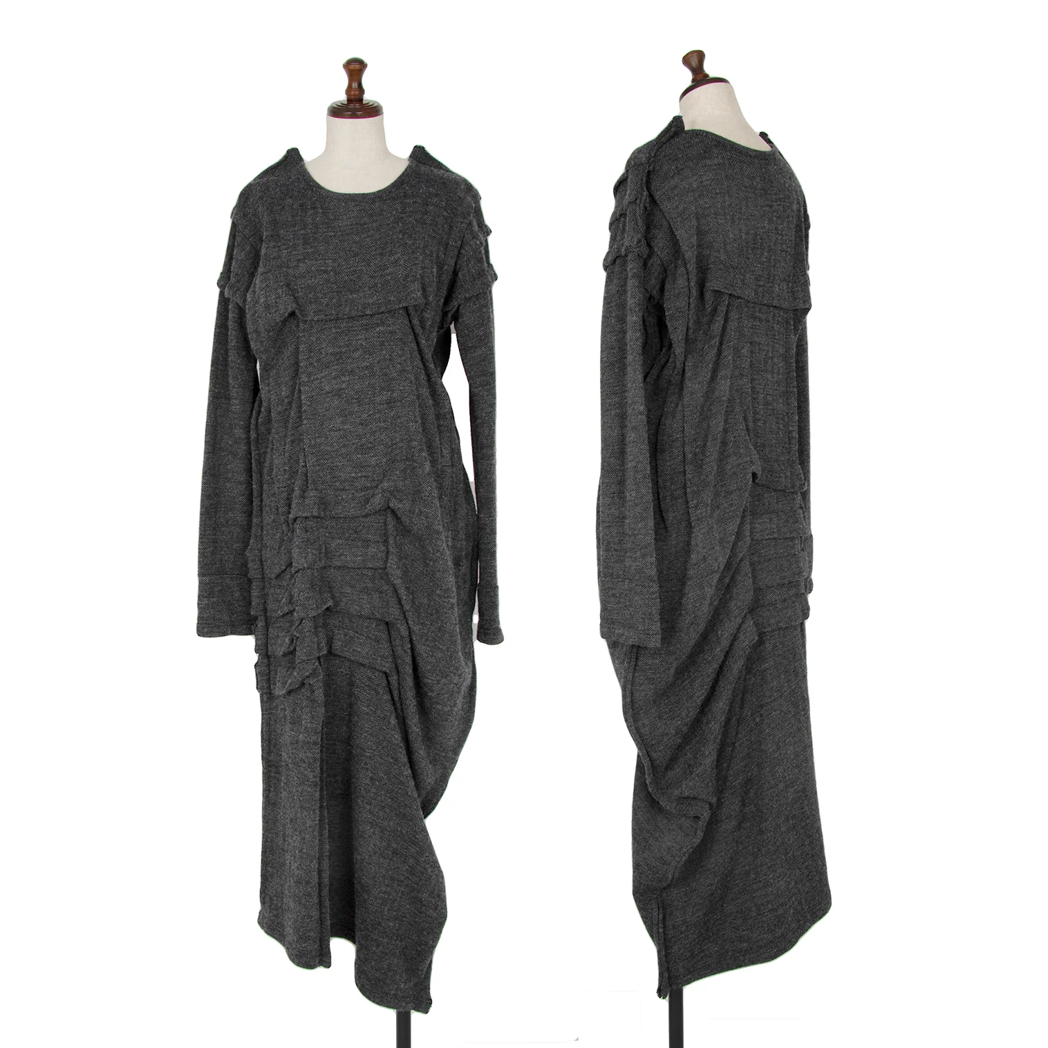 リミフゥLIMI feu ウールコットンヘリンボーン変形タックワンピース チャコール2