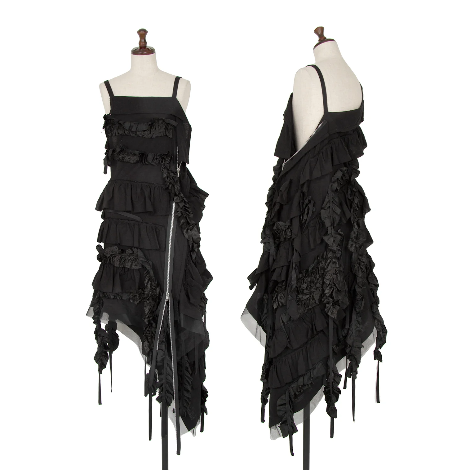リミフゥLIMI feu ジップデザインフリル装飾ワンピース 黒2