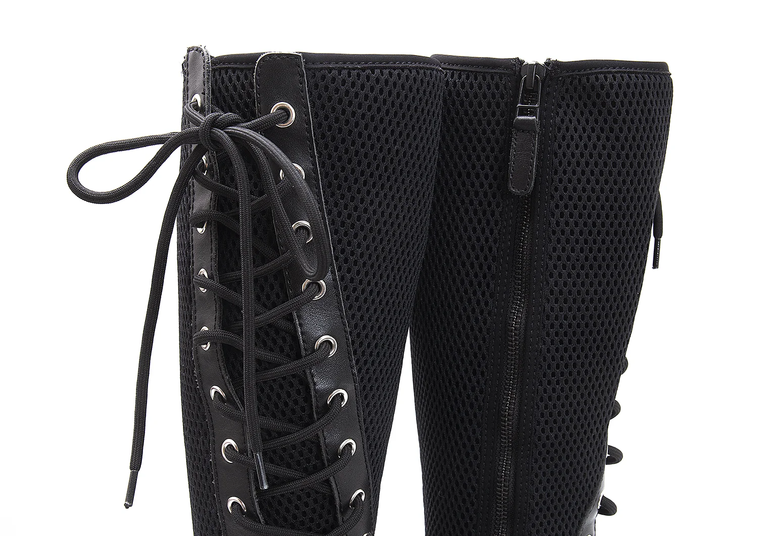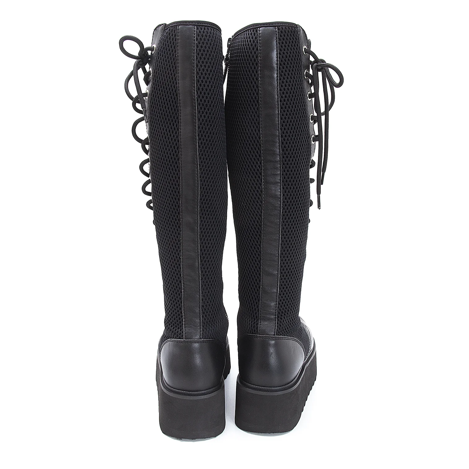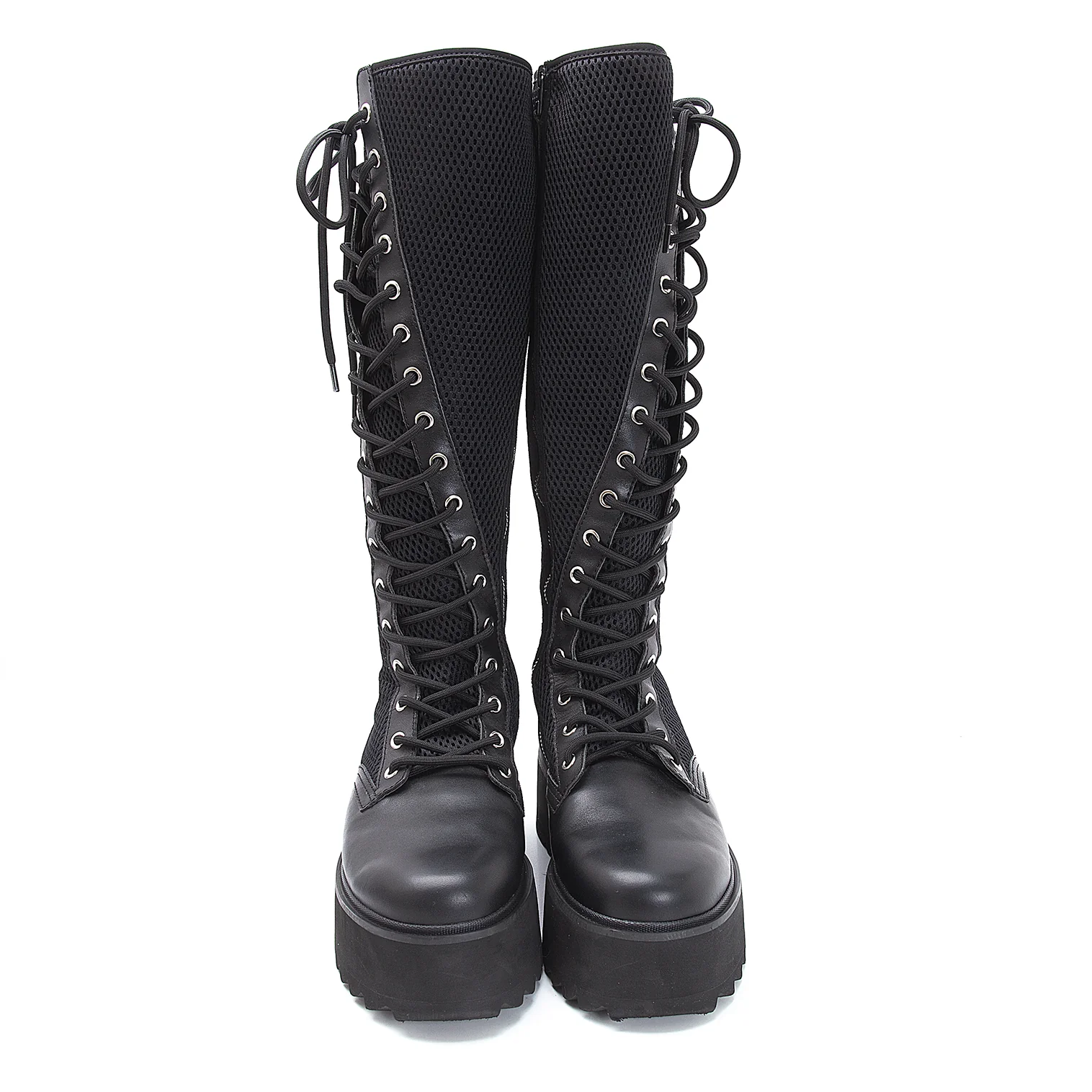 リミフゥLIMI feu メッシュ切替サイドジップレースアップロングブーツ 黒25位