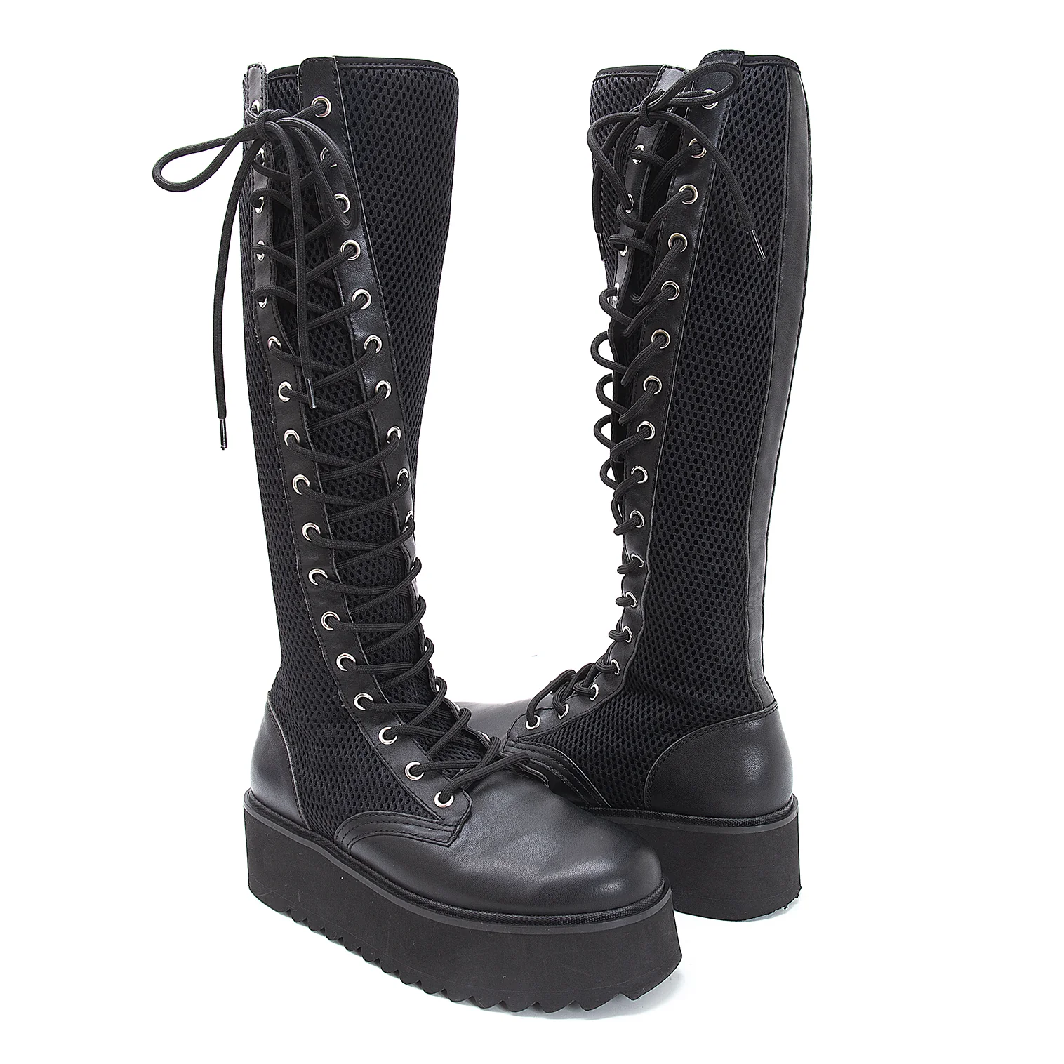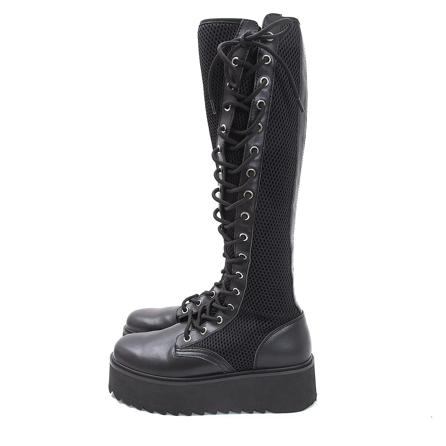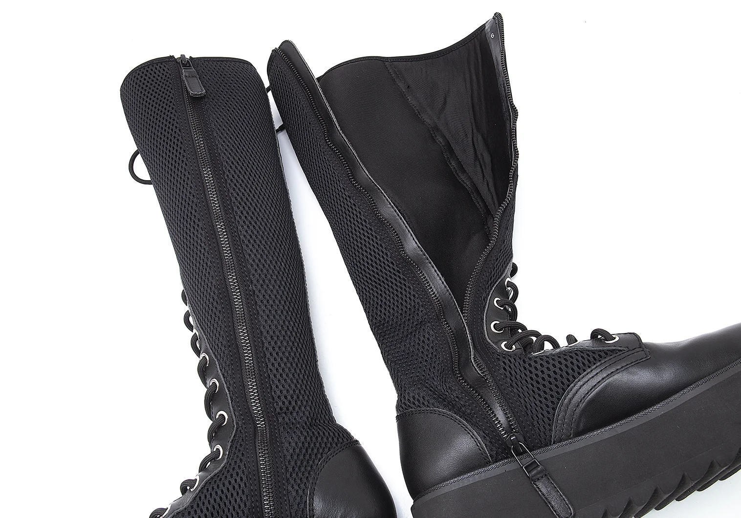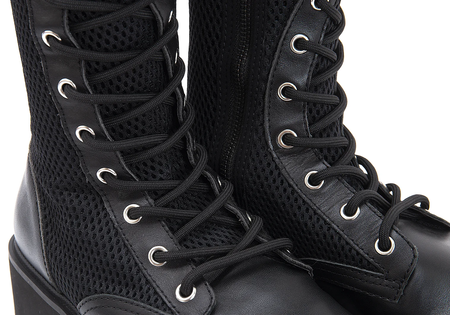 リミフゥLIMI feu メッシュ切替サイドジップレースアップロングブーツ 黒25位