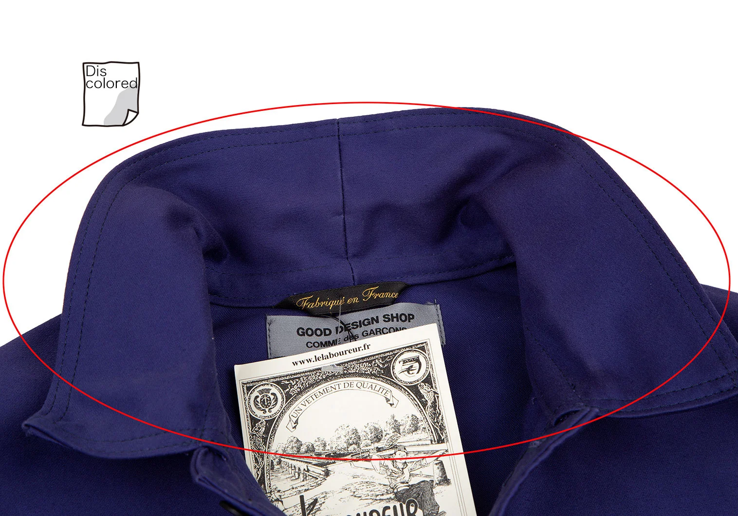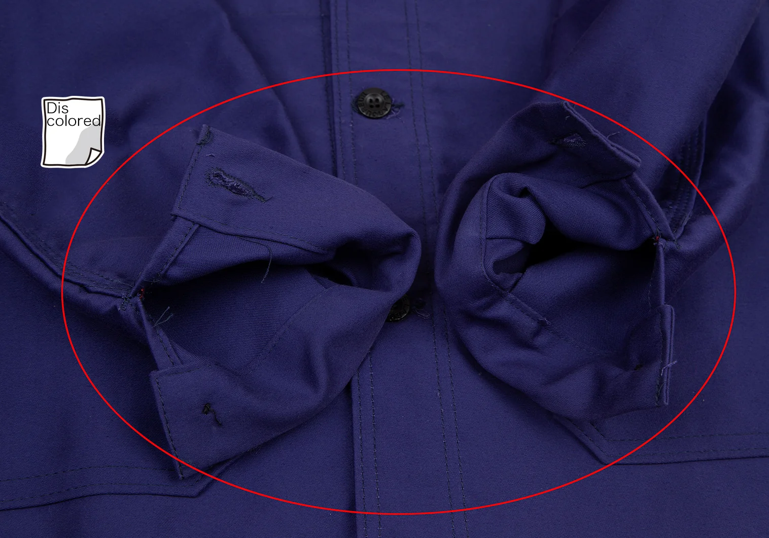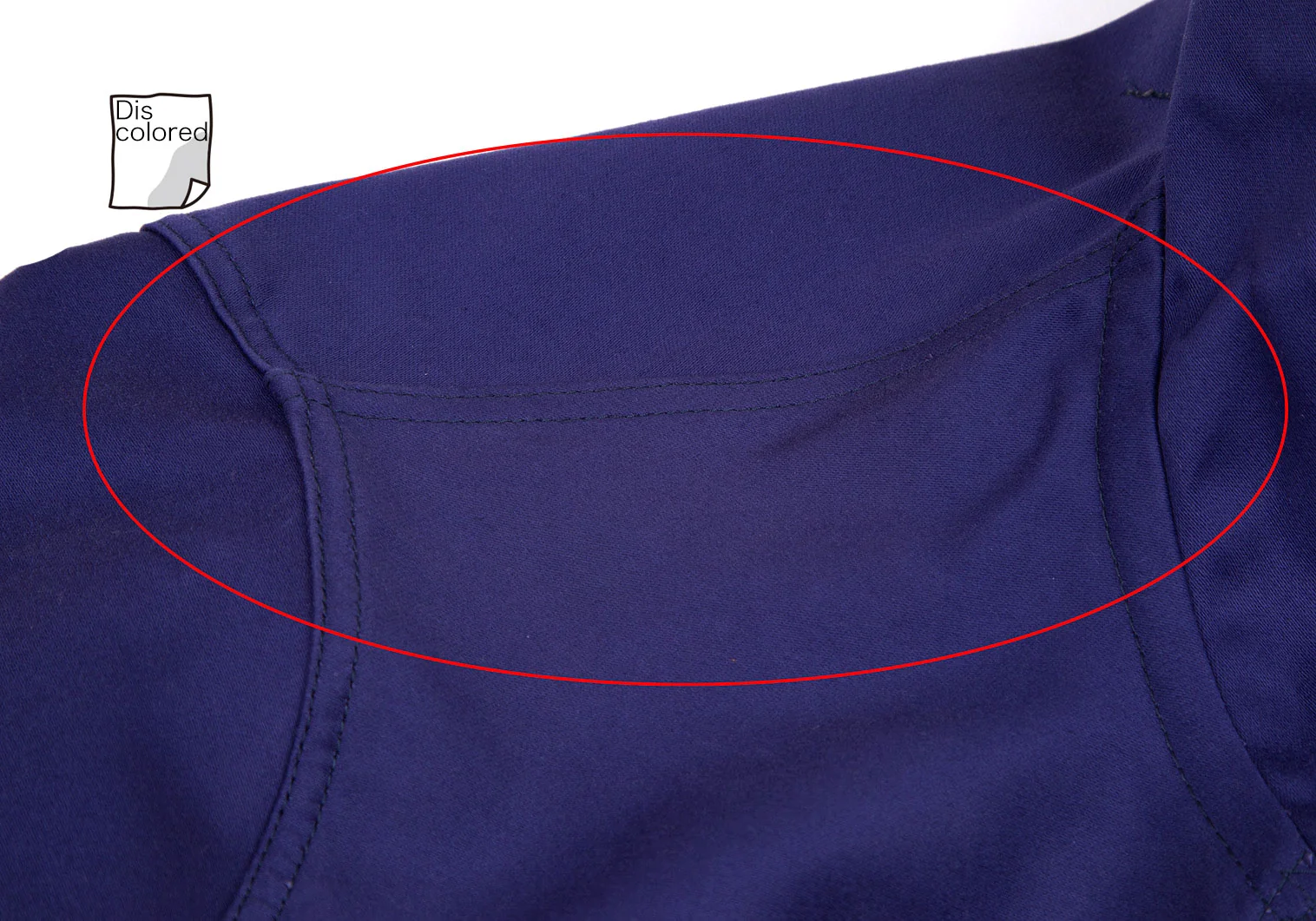 襟裏・肩・左袖山・左袖先・袖裏に変色があります(写真参照)。その他目立ったシミ、汚れ、ほつれ等はありません。クリーニング済み