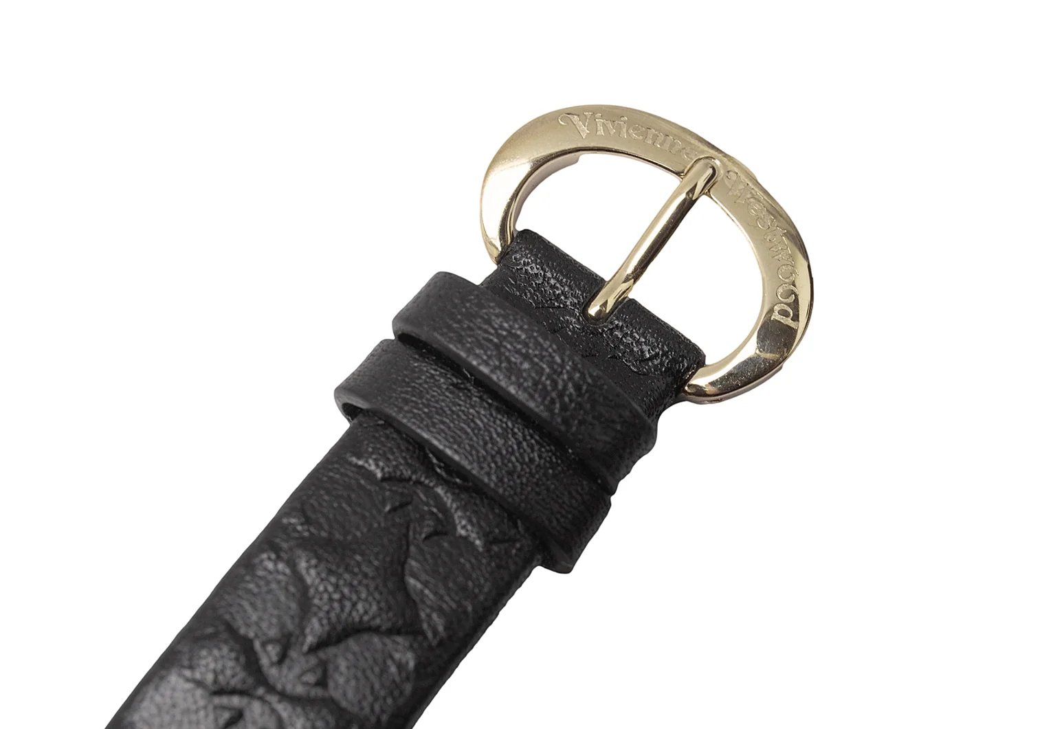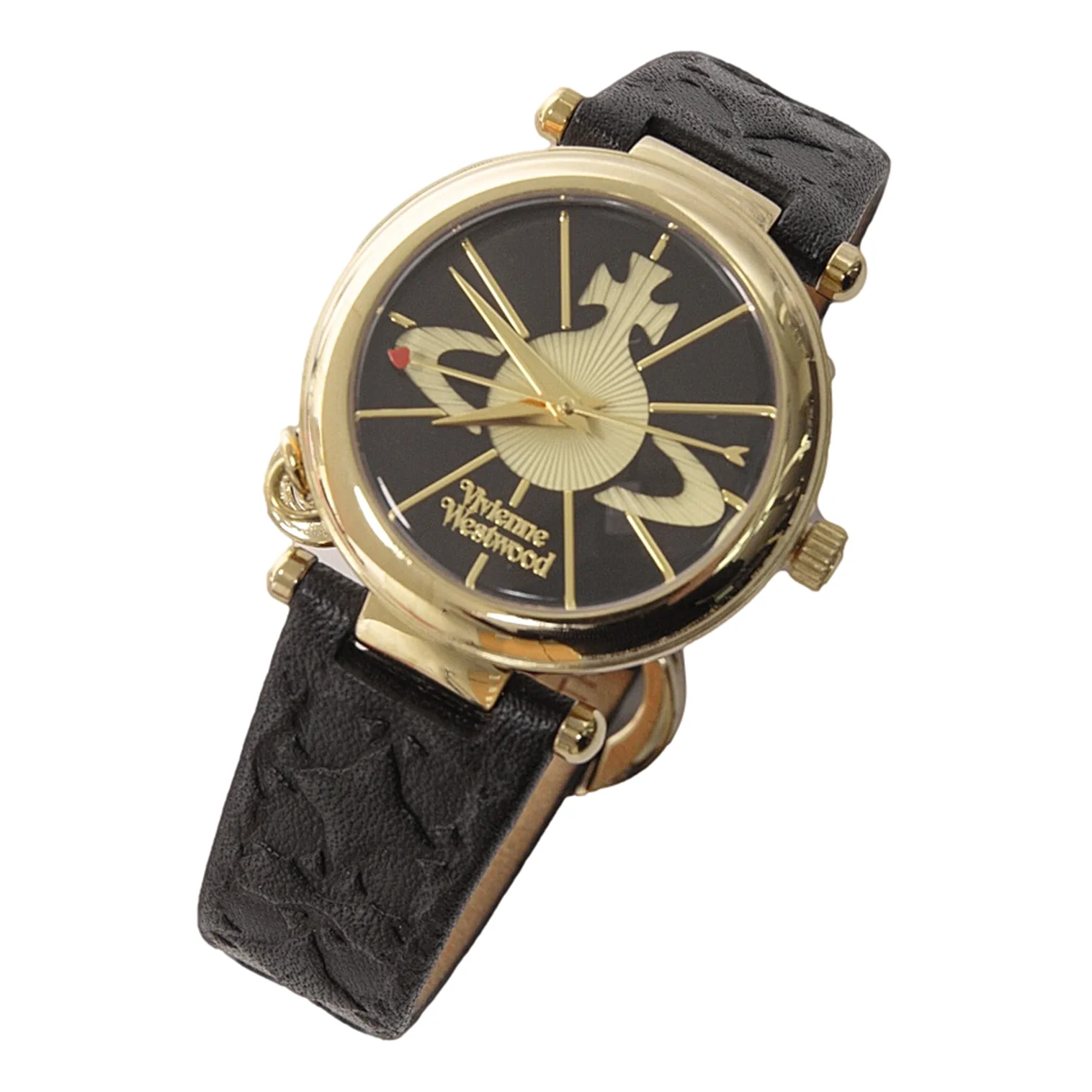 ヴィヴィアンウエストウッドVivienne Westwood オーブチャーム付きレザーバンドウォッチ ゴールド黒