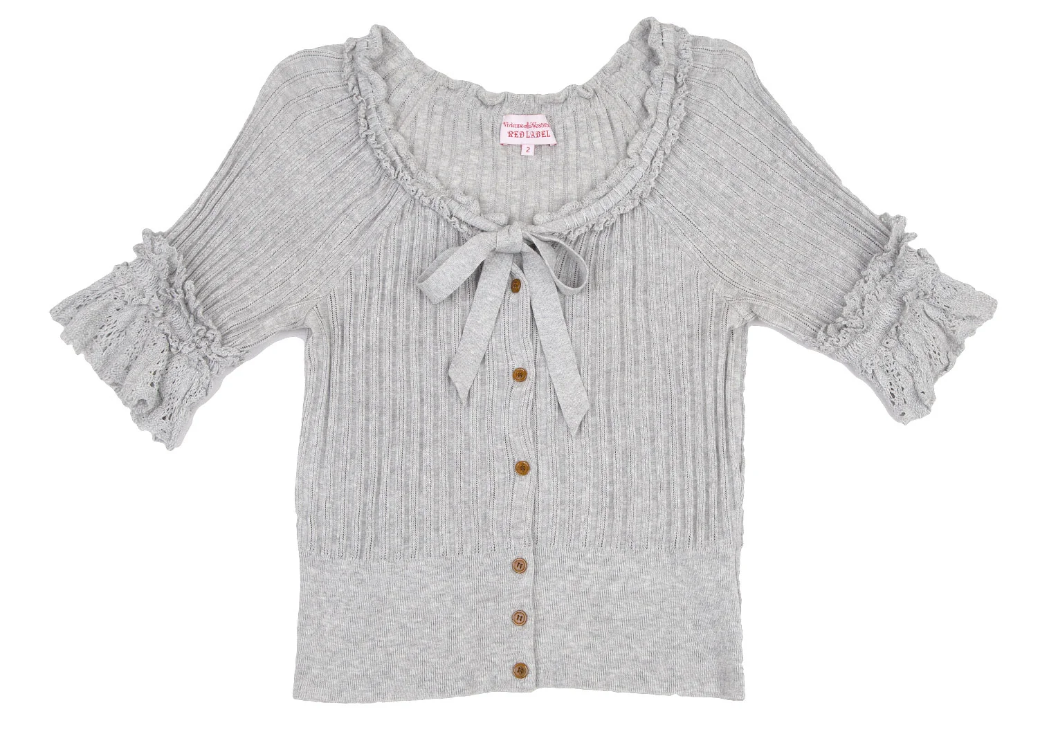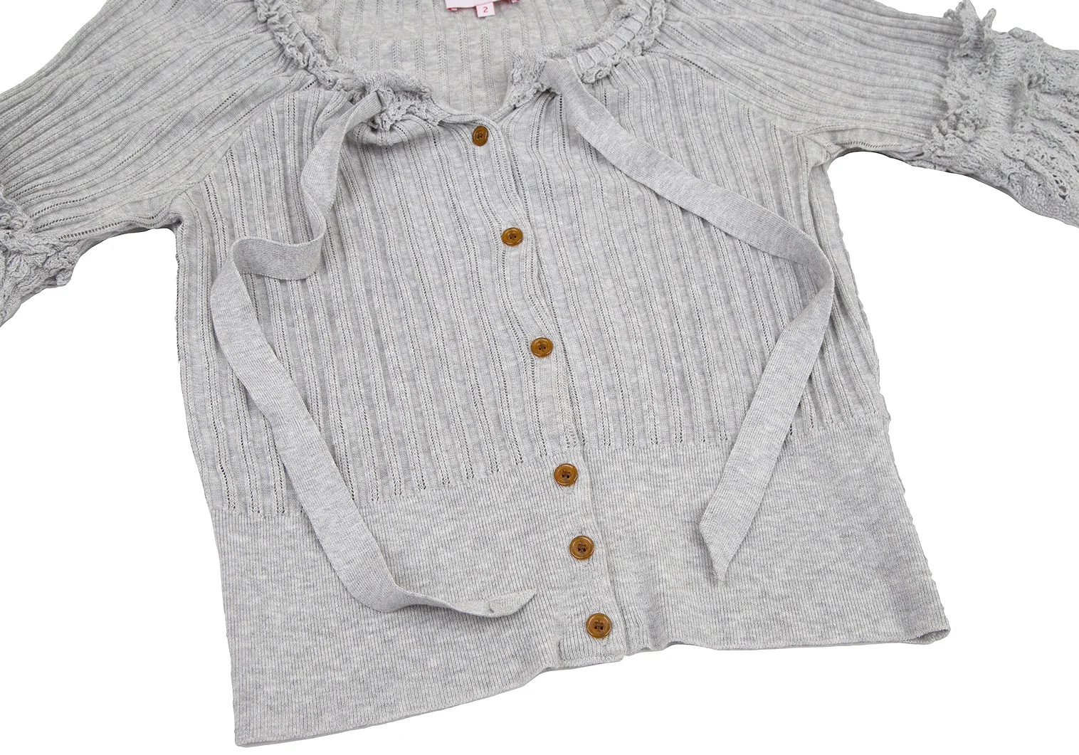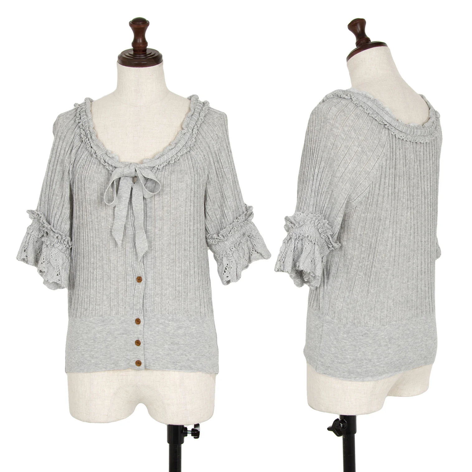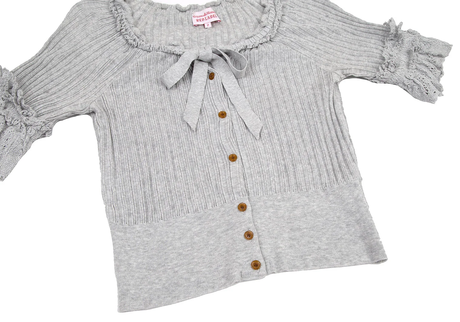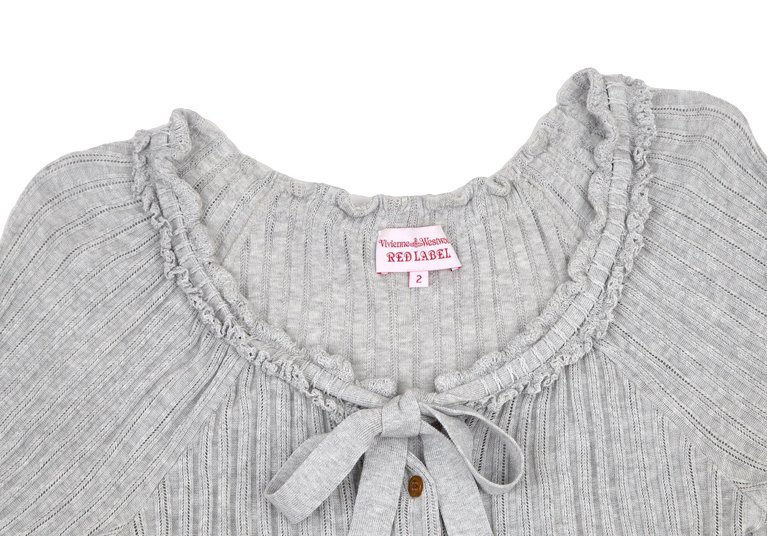 ヴィヴィアンウエストウッド レッドレーベルVivienne Westwood Red Label レースフリル装飾リブニット半袖カーディガン ライトグレー2