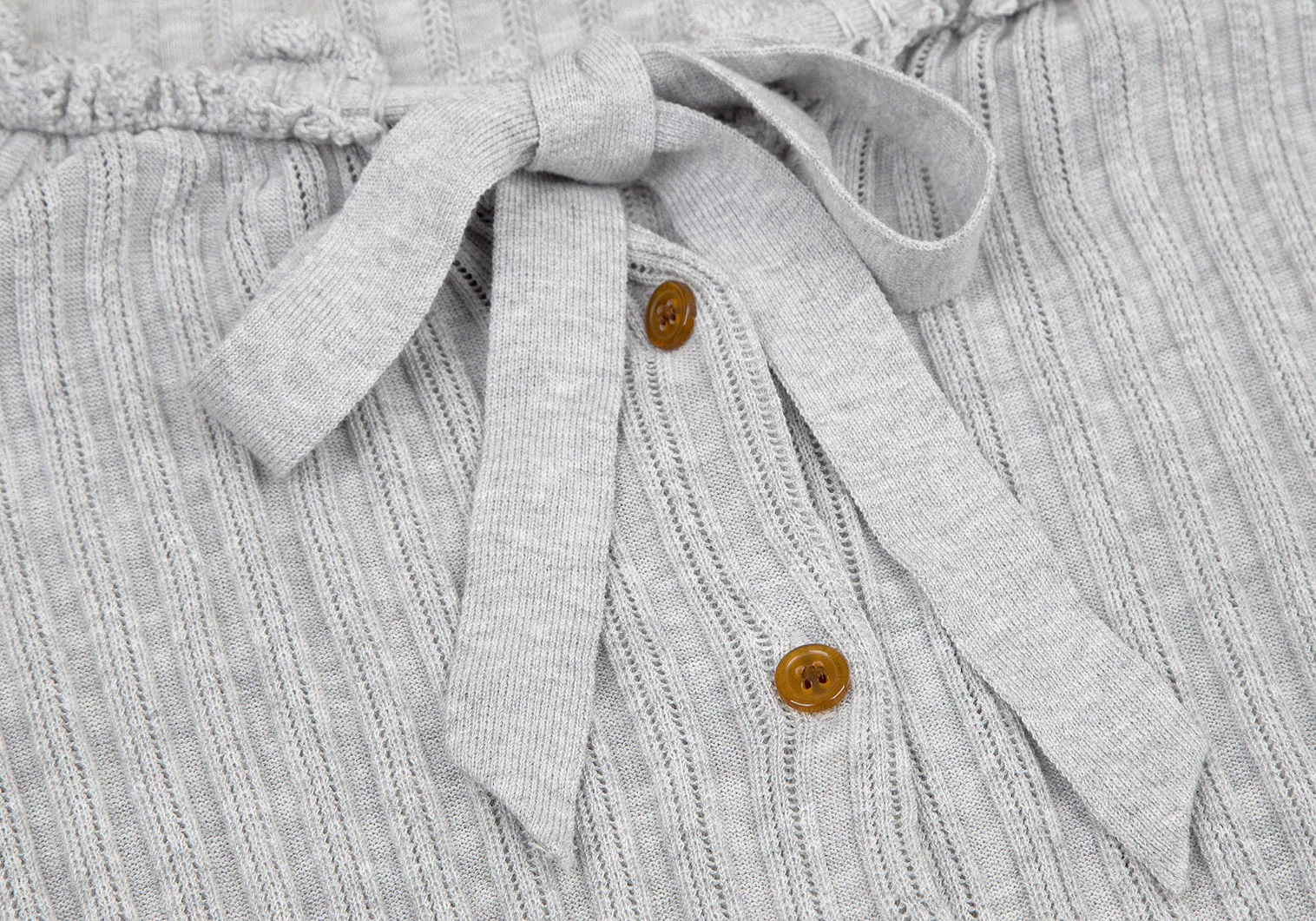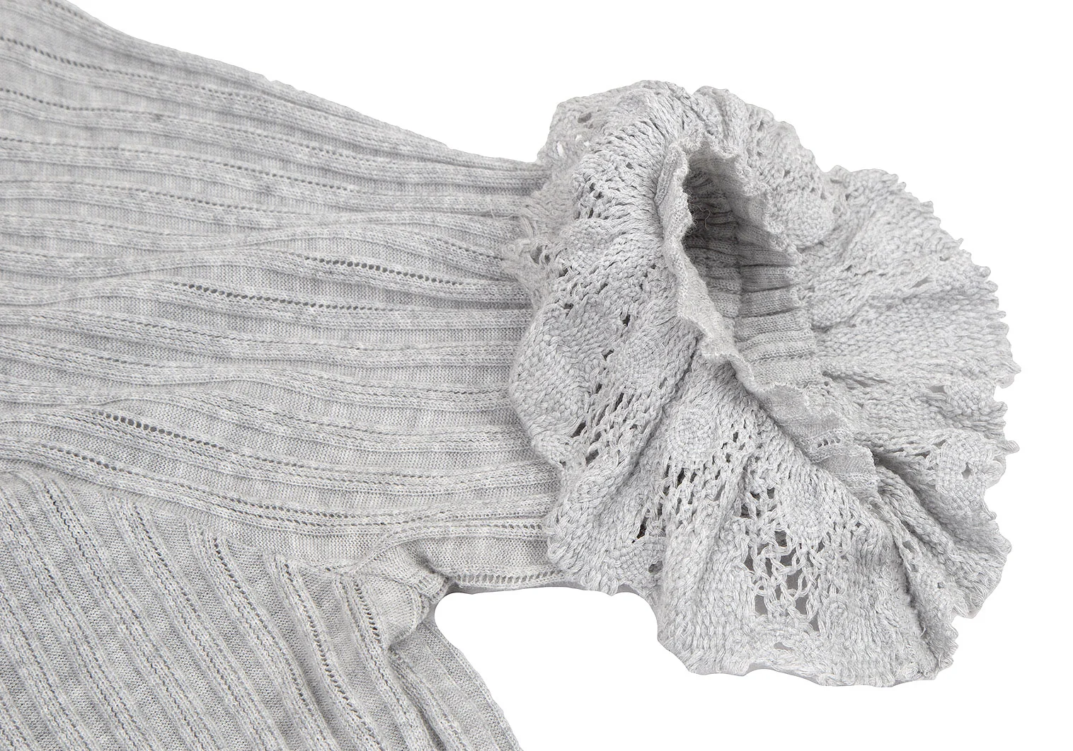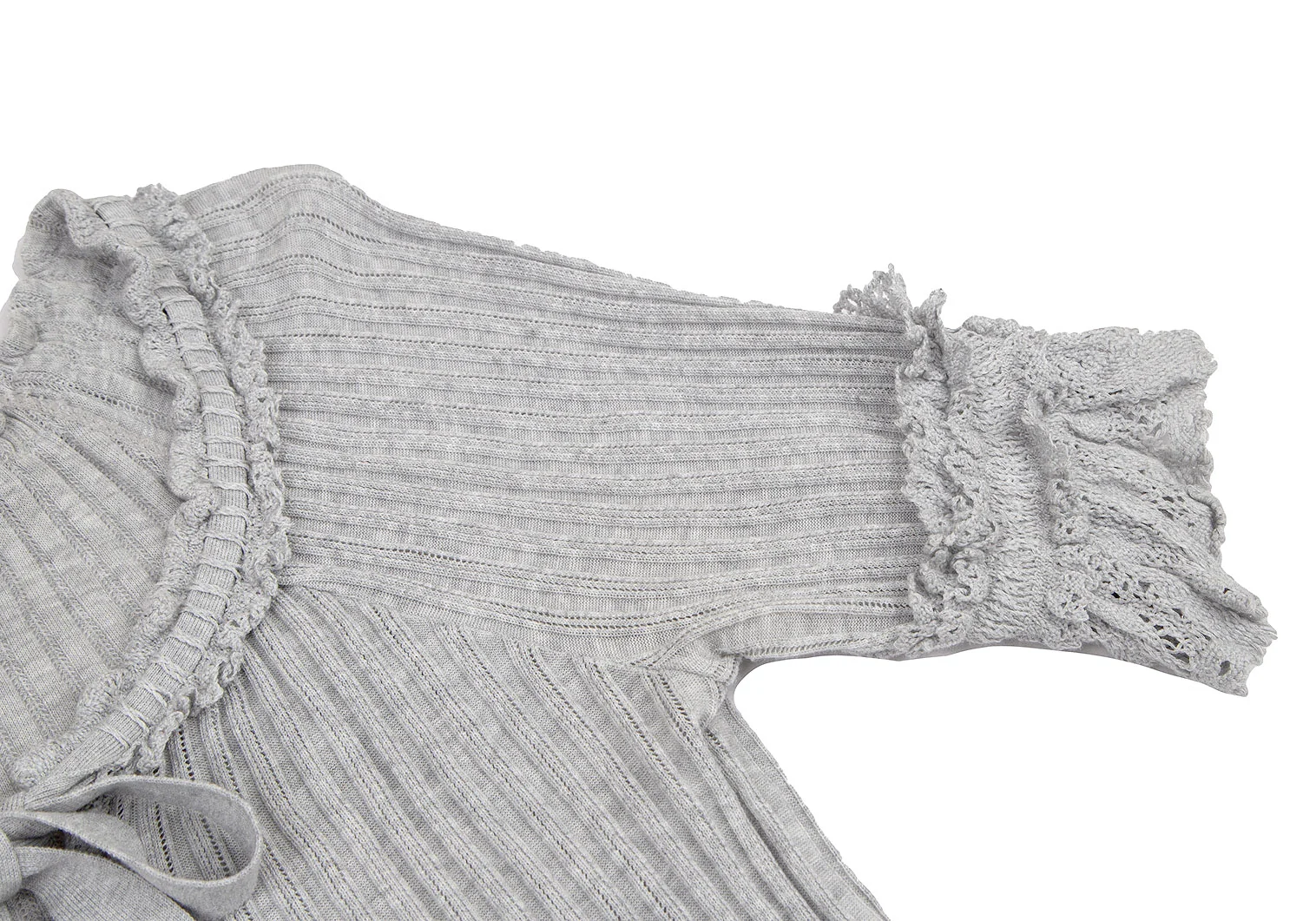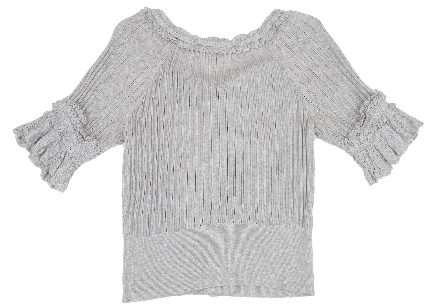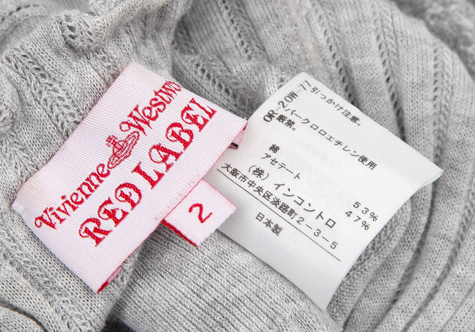 ヴィヴィアンウエストウッド レッドレーベルVivienne Westwood Red Label レースフリル装飾リブニット半袖カーディガン ライトグレー2