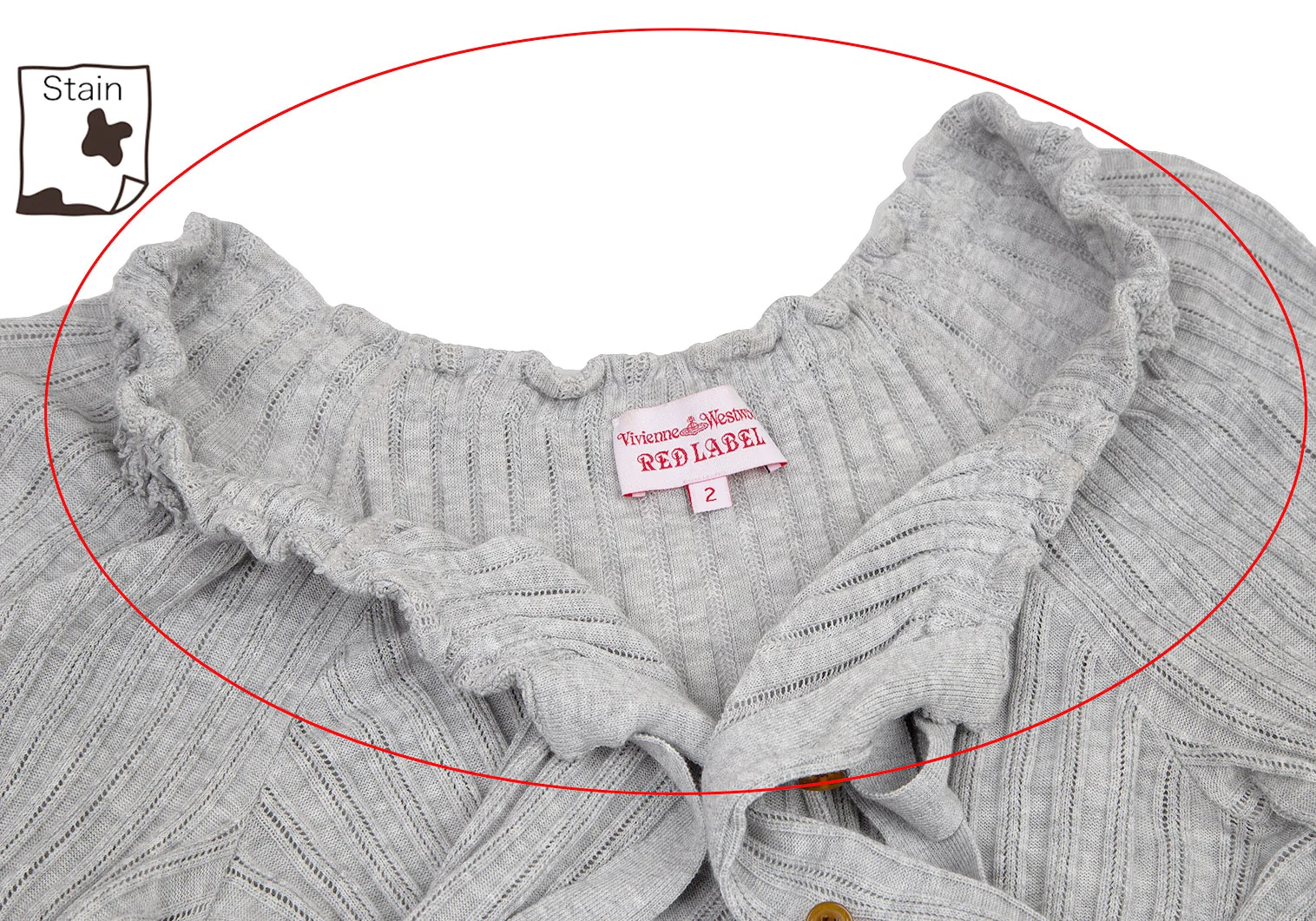 透け感があります。首周りに薄シミがあります(写真参照)。その他目立ったシミ、汚れ、ほつれ等なくいい状態です。クリーニング済み