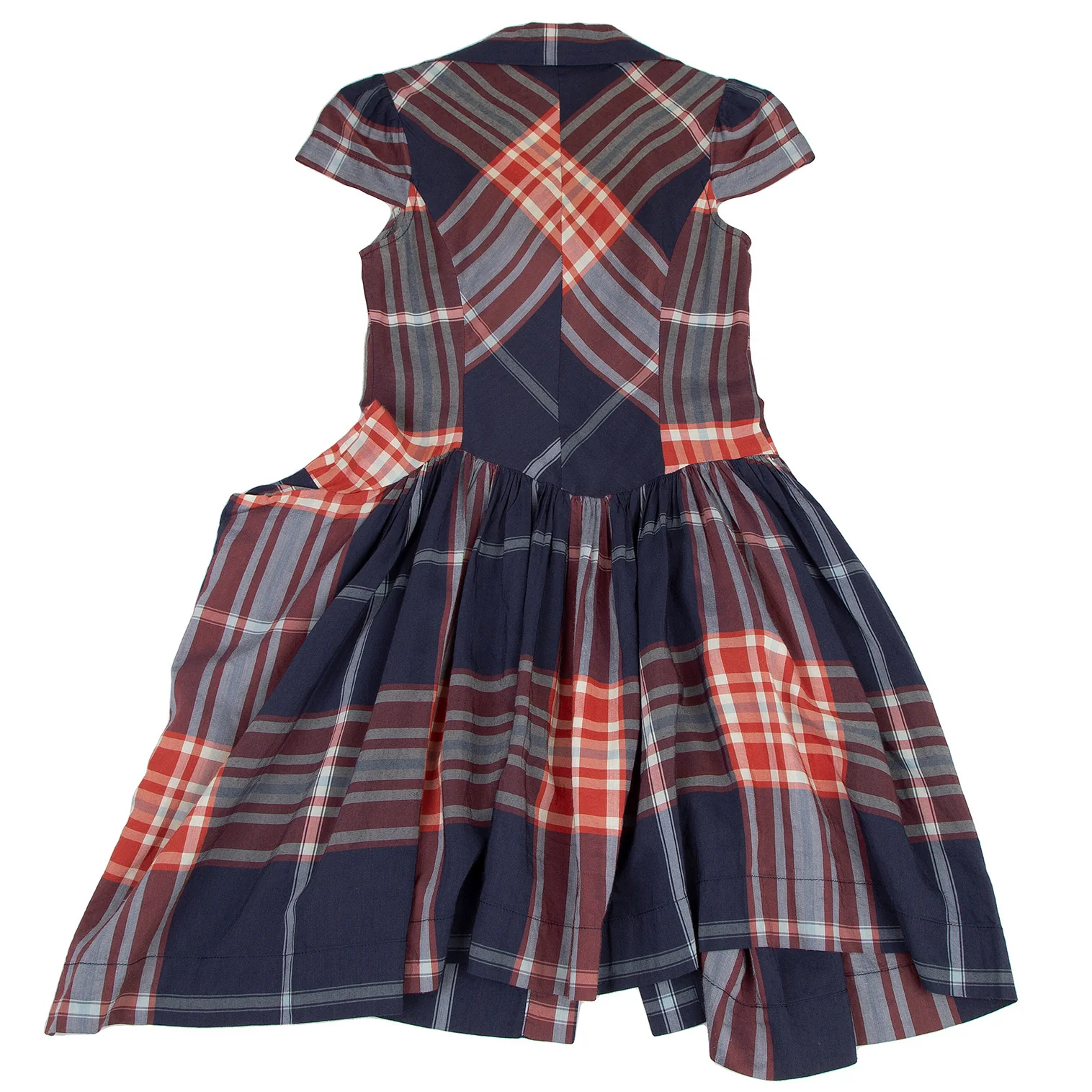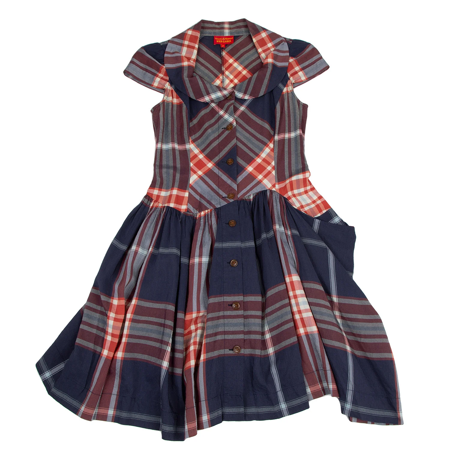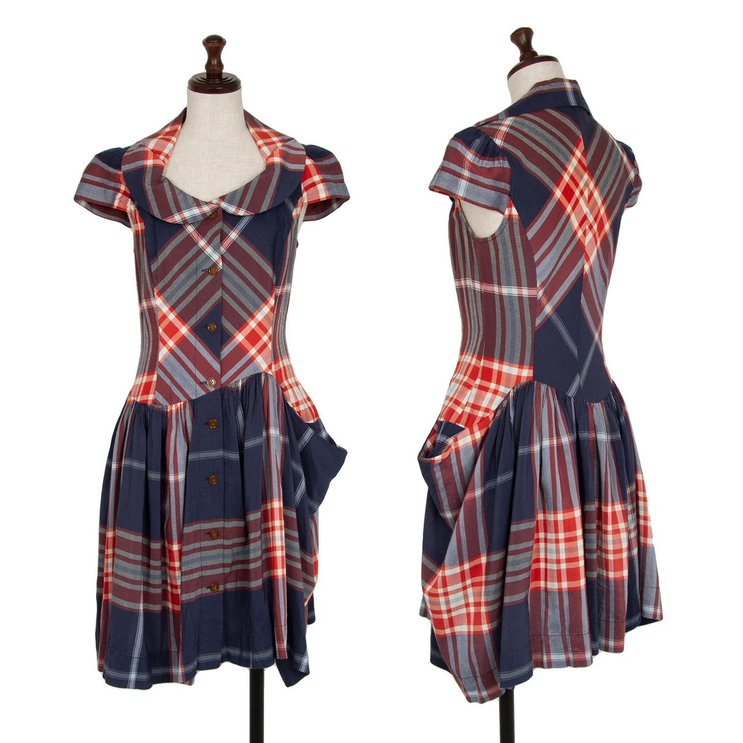 ヴィヴィアンウエストウッド レッドレーベルVivienne Westwood Red Label チェックラウンドカラーフレンチスリーブブラウスワンピース 青赤白2