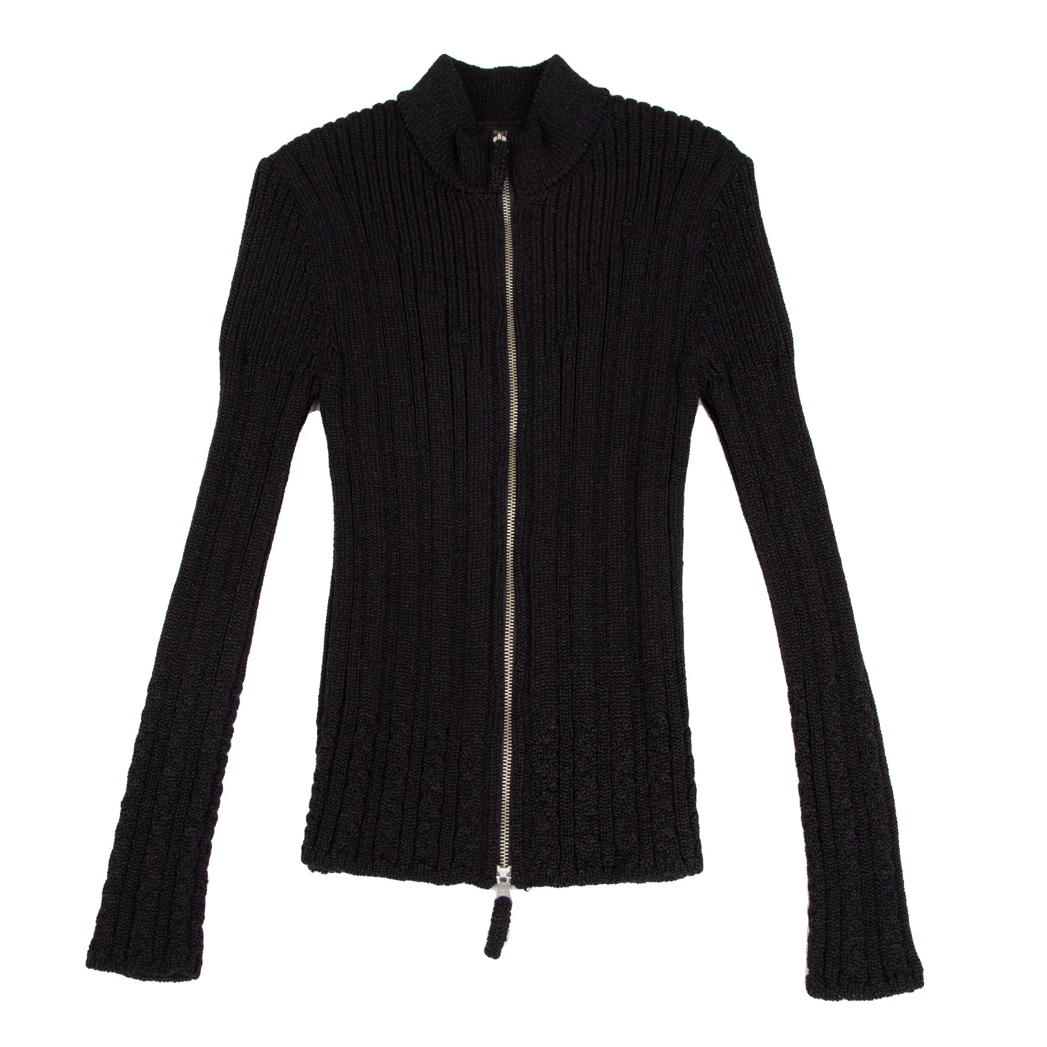 ジャンポールゴルチエ オムJean Paul GAULTIER HOMME ナイロンシャイニージップアップリブニット 黒48