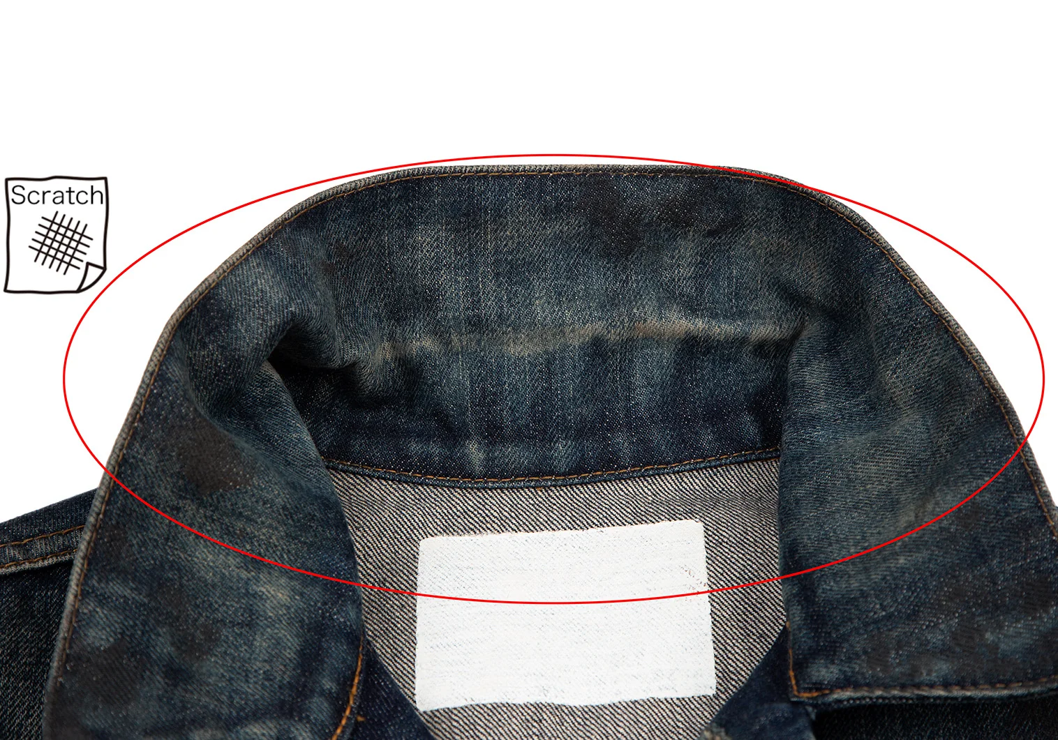 襟にスレ、袖ステッチにほつれがあります(写真参照)その他目立ったシミ、汚れ、ほつれ等なくいい状態です。クリーニング済み