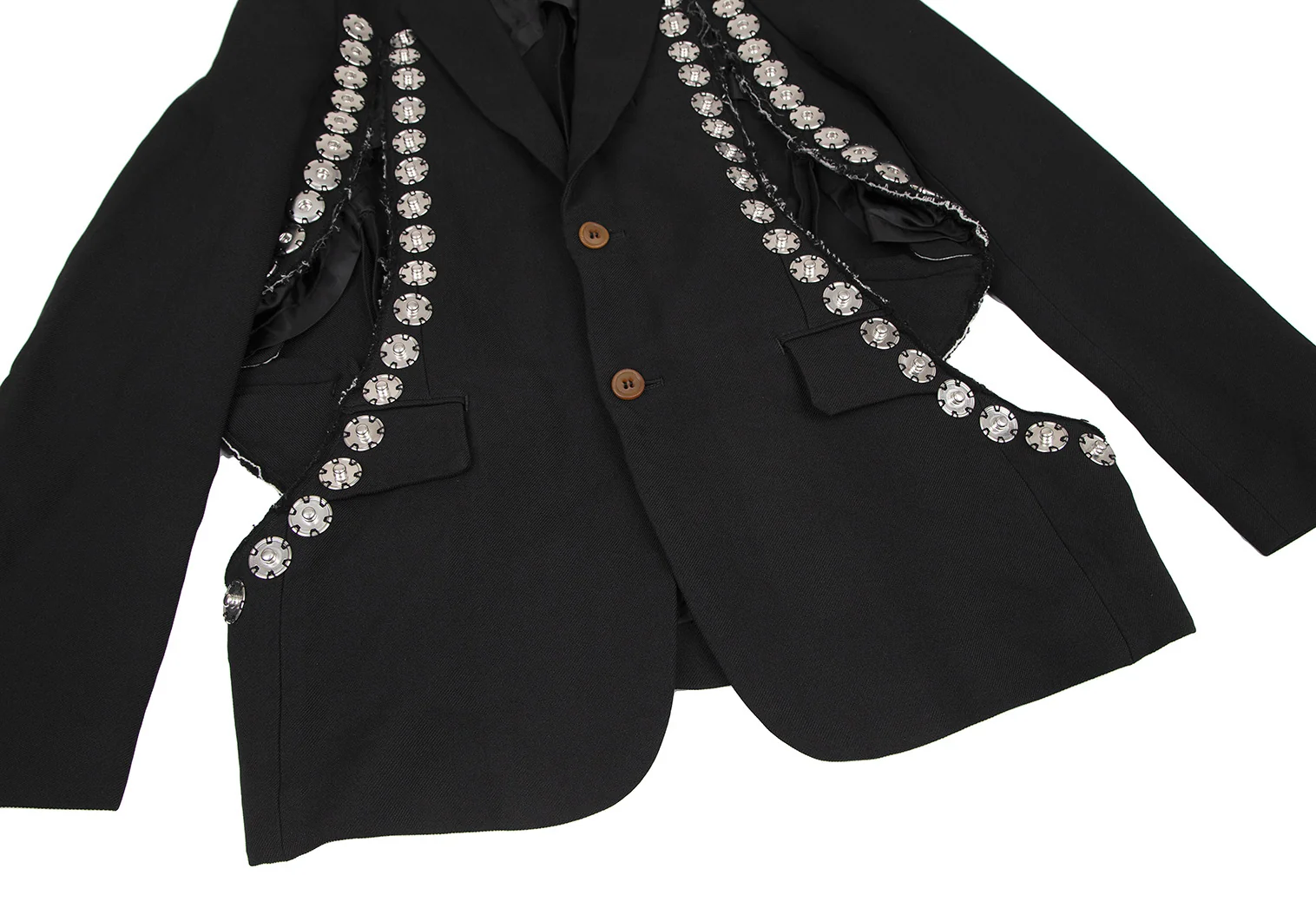 コムデギャルソン オムプリュスCOMME des GARCONS HOMME PLUS エステル裁ち切りスナップボタンジャケット 黒XS