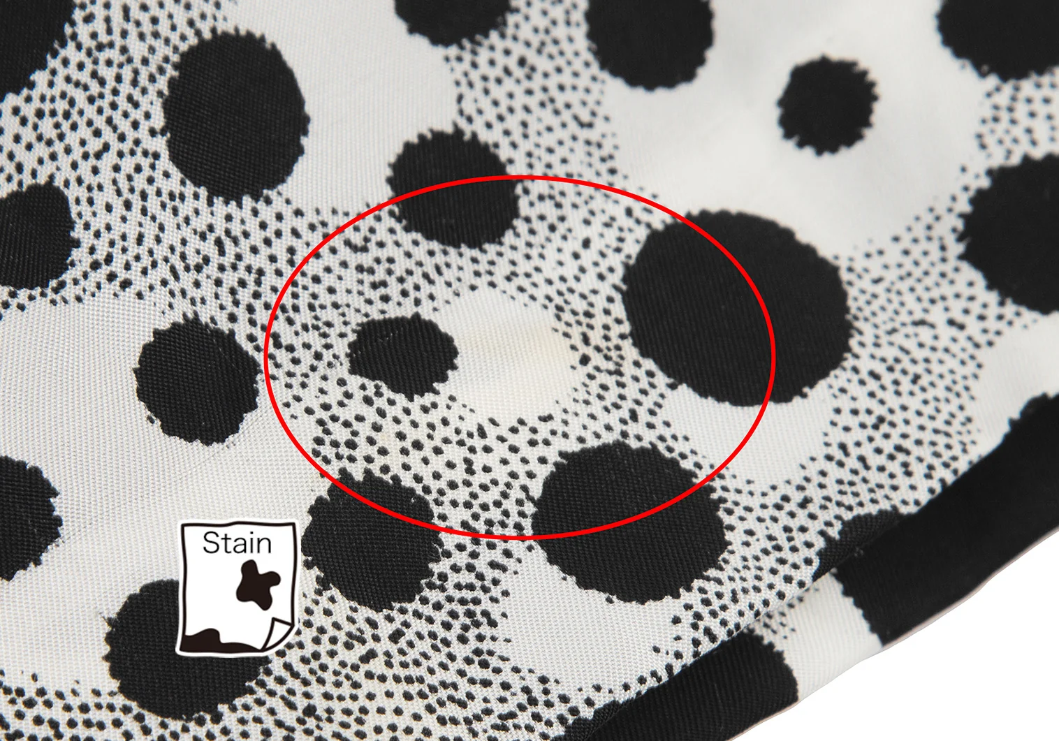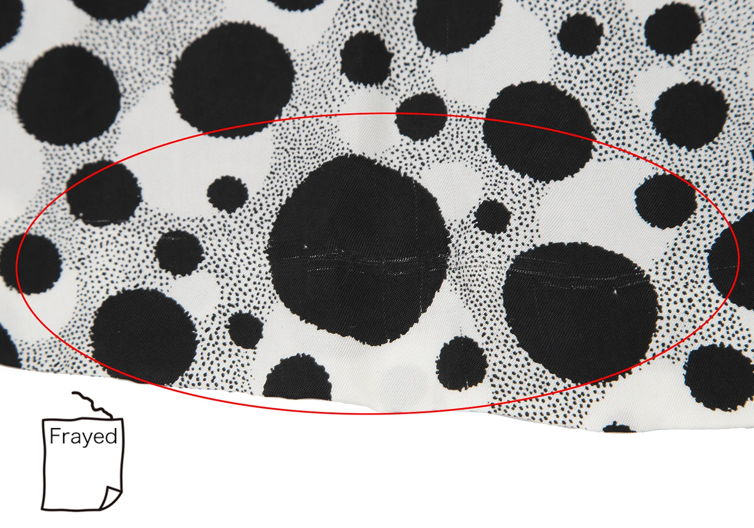 ウエストにピンチ跡、前裾・後ろ裾に糸引き・薄シミ、ウエスト裏サイドに縫い目ほつれがあります(写真参照)。クリーニング済み
