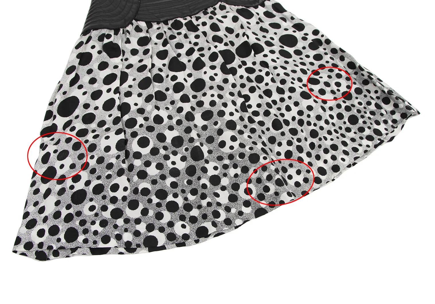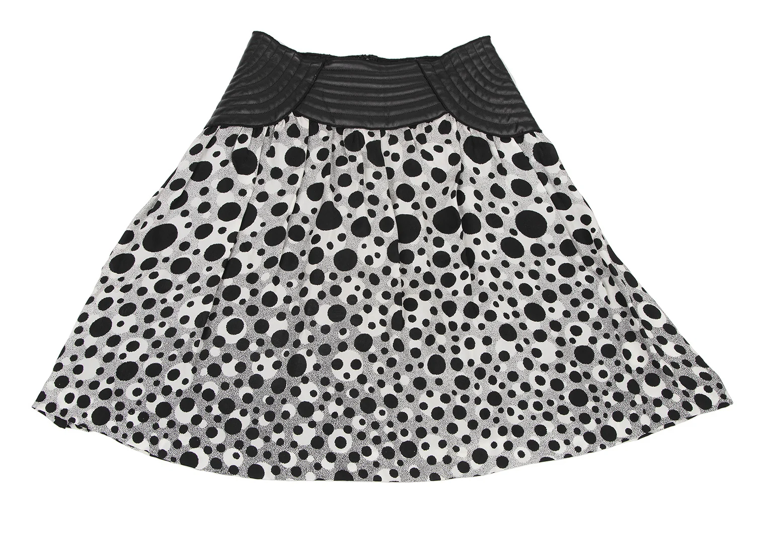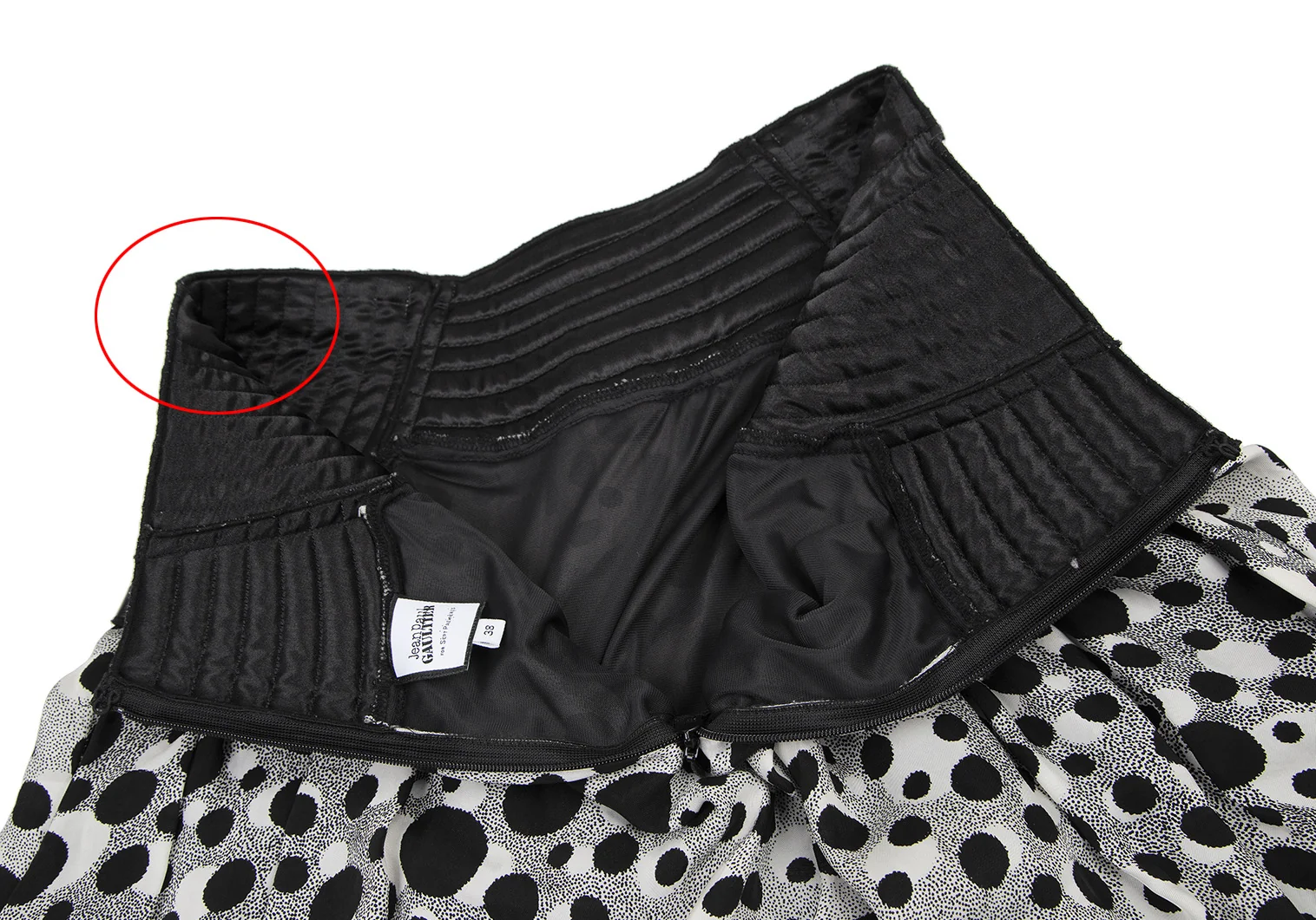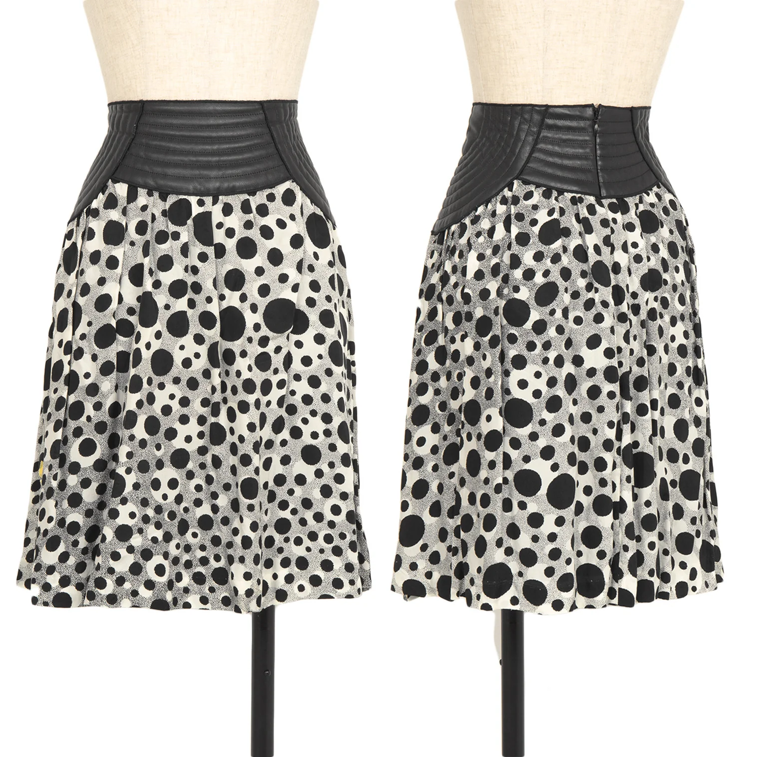 ジャンポールゴルチエ フォー セットプルミエJean Paul GAULTIER FOR SEPT PREMIERES ウエストフェイクレザー切替ドットプリントスカート 黒38
