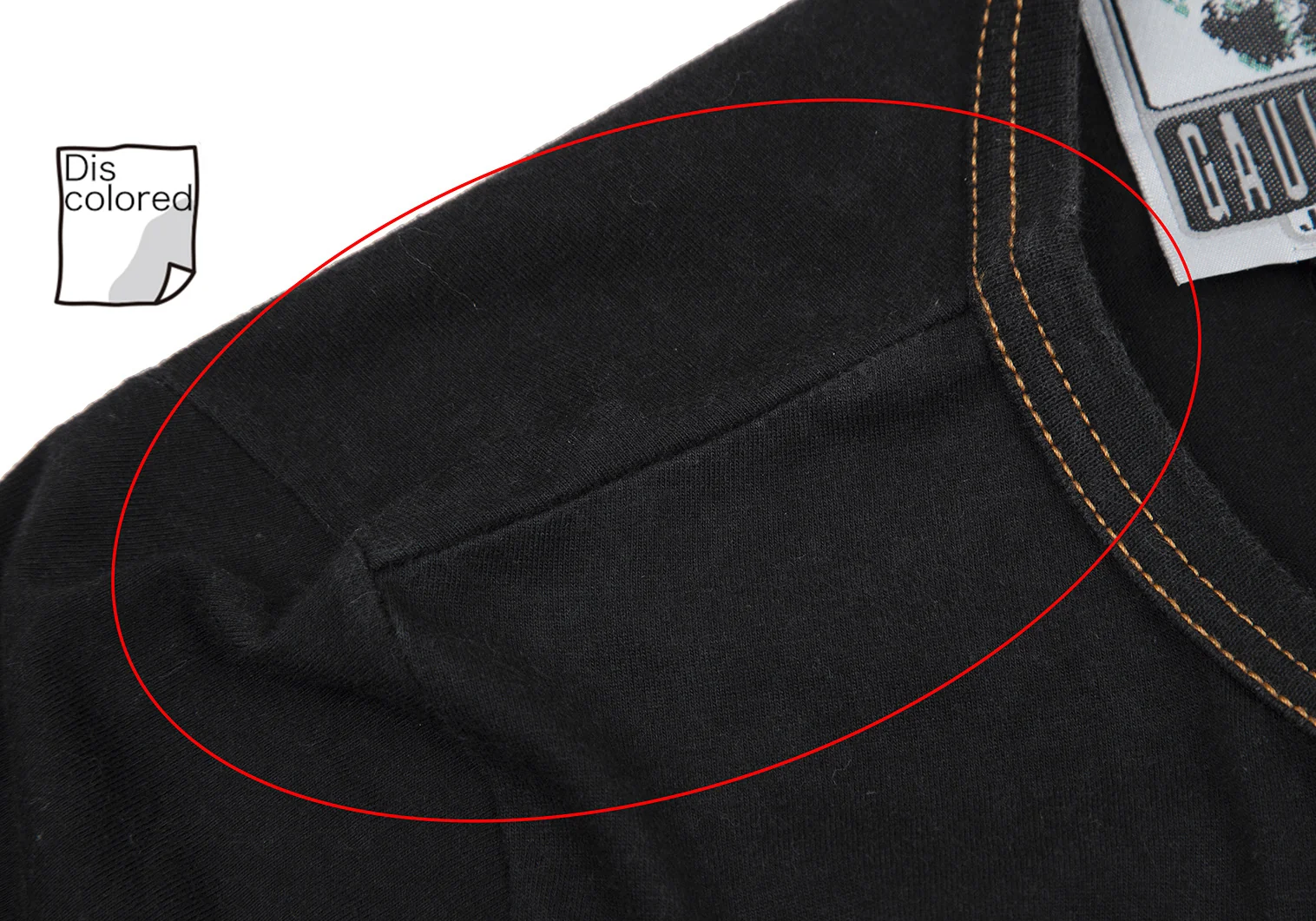 脇下など全体に色褪せがあります。襟ぐりに薄汚れ、両肩にヤケ、裾裏側に小穴があります。(写真参照)。クリーニング済み