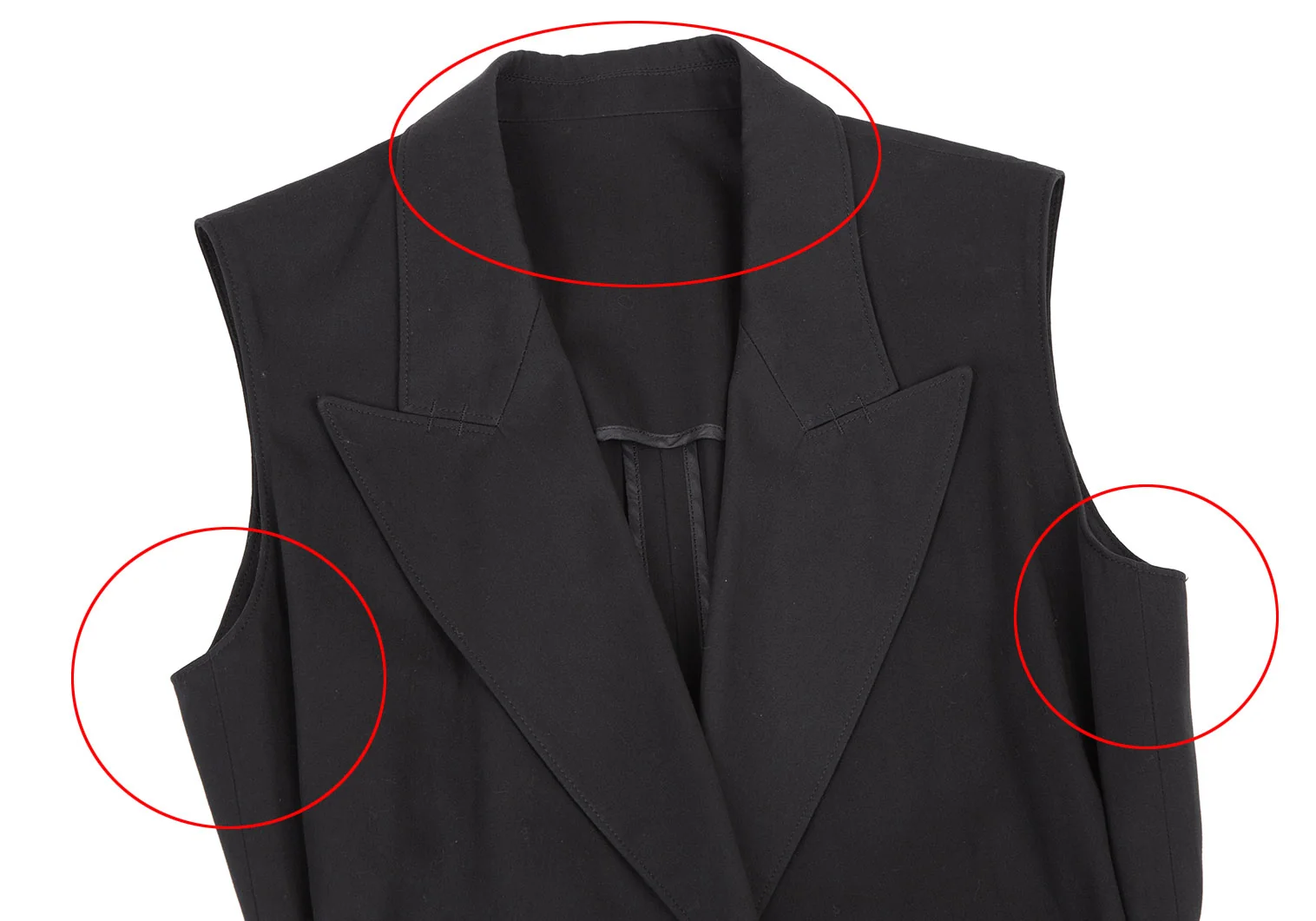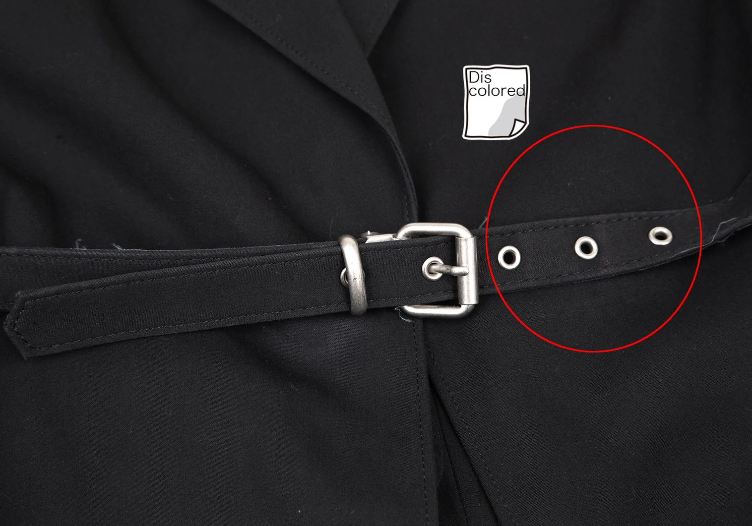 襟裏・脇下に色褪せ、裾に汚れ・ベルトに若干の変色、ベルト裏面に劣化があります(写真参照)。クリーニング済み