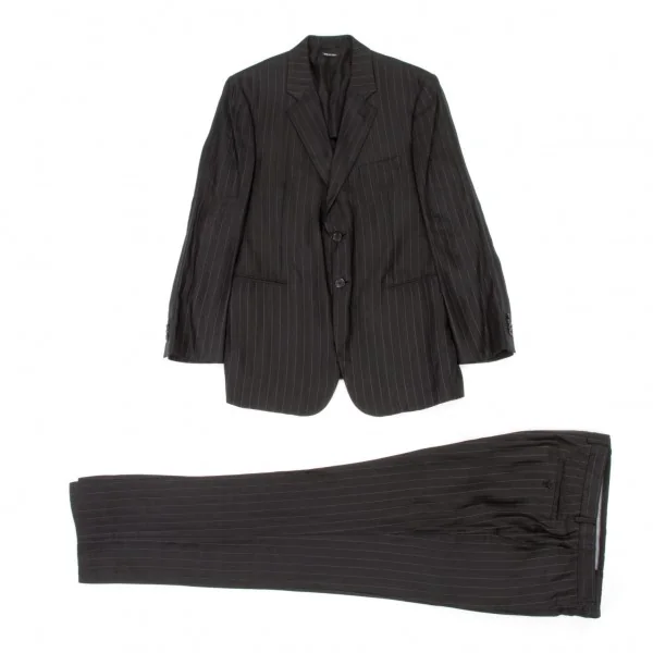 タグ ジョルジオ アルマーニ GIORGIO ARMANI BORGO21 リネンレーヨンストライプセットアップスーツ 黒54