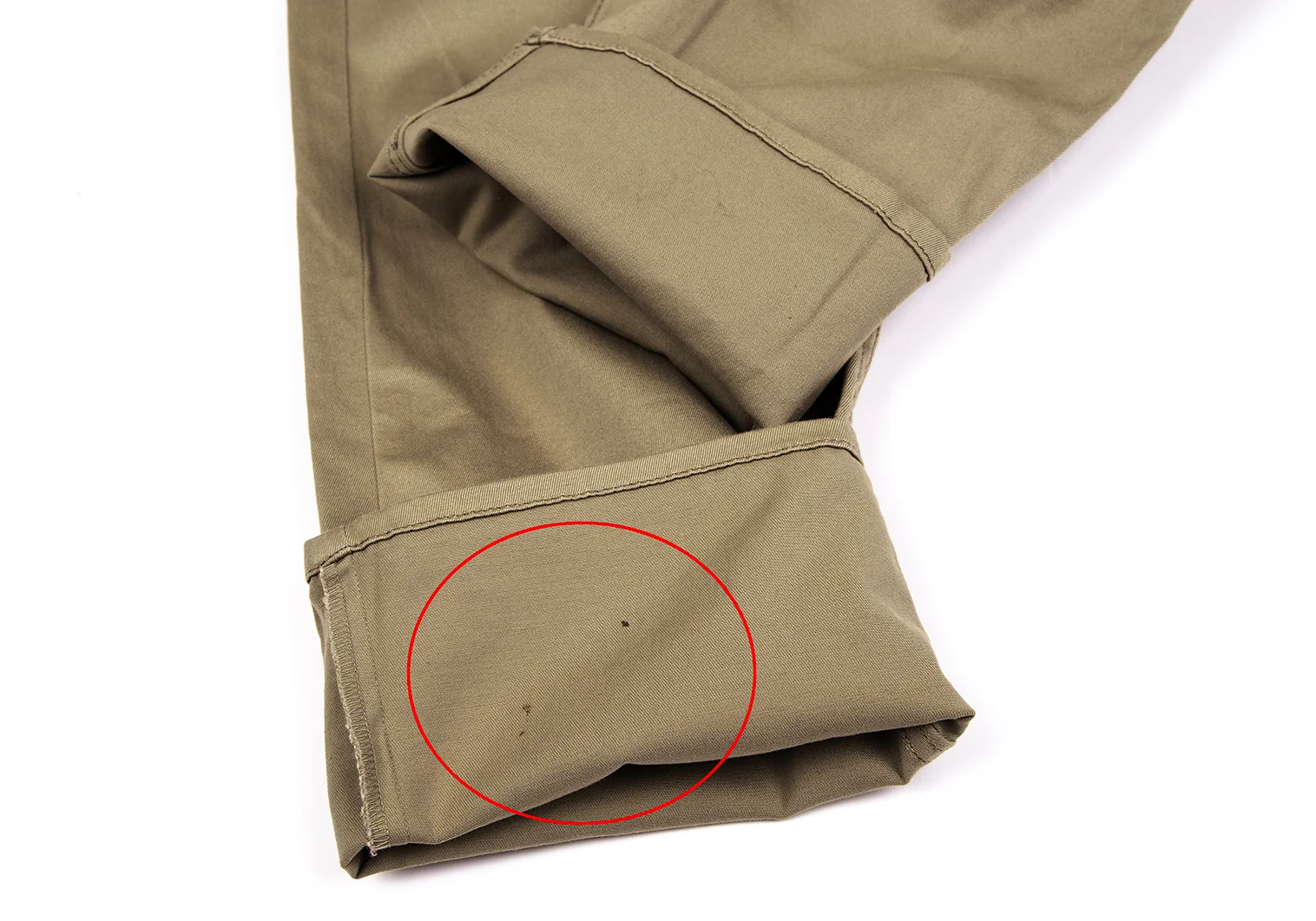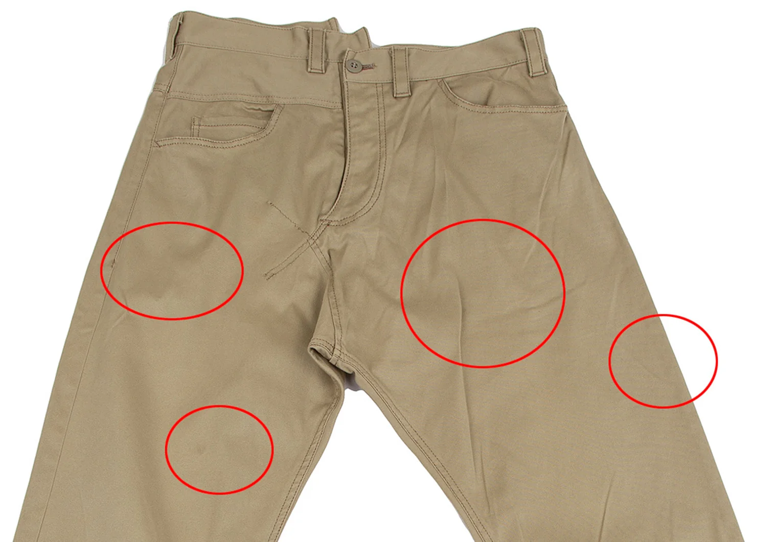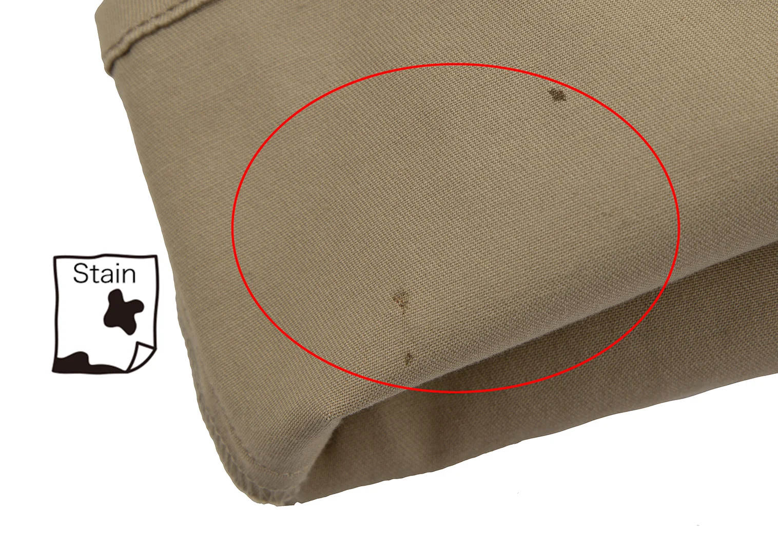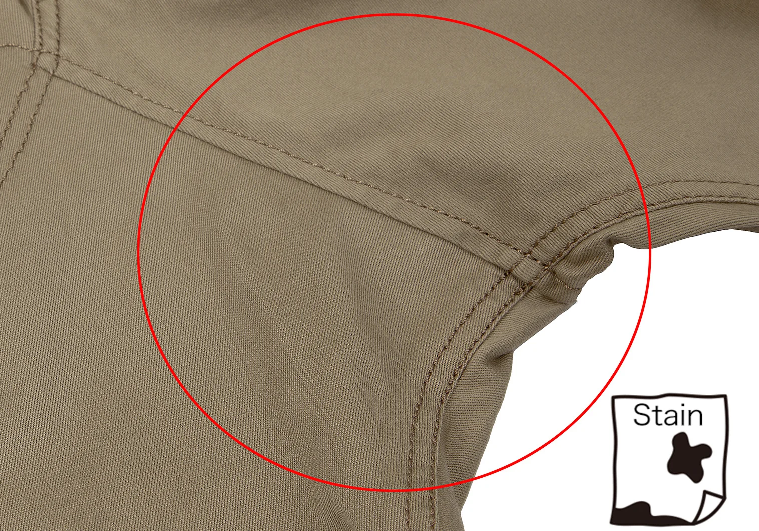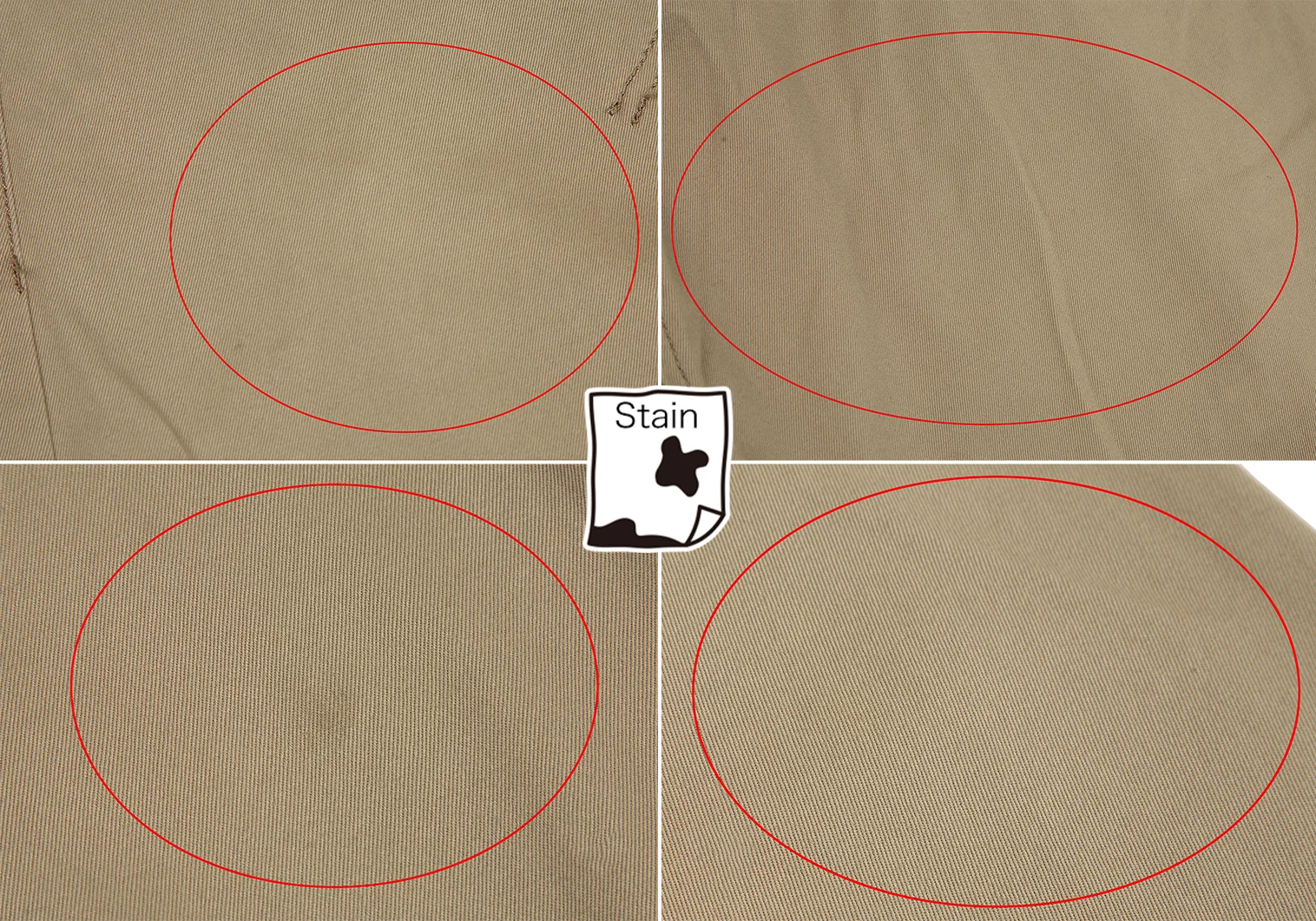 股に変色、前後身頃・裾裏にシミがあります(写真参照)クリーニング済み