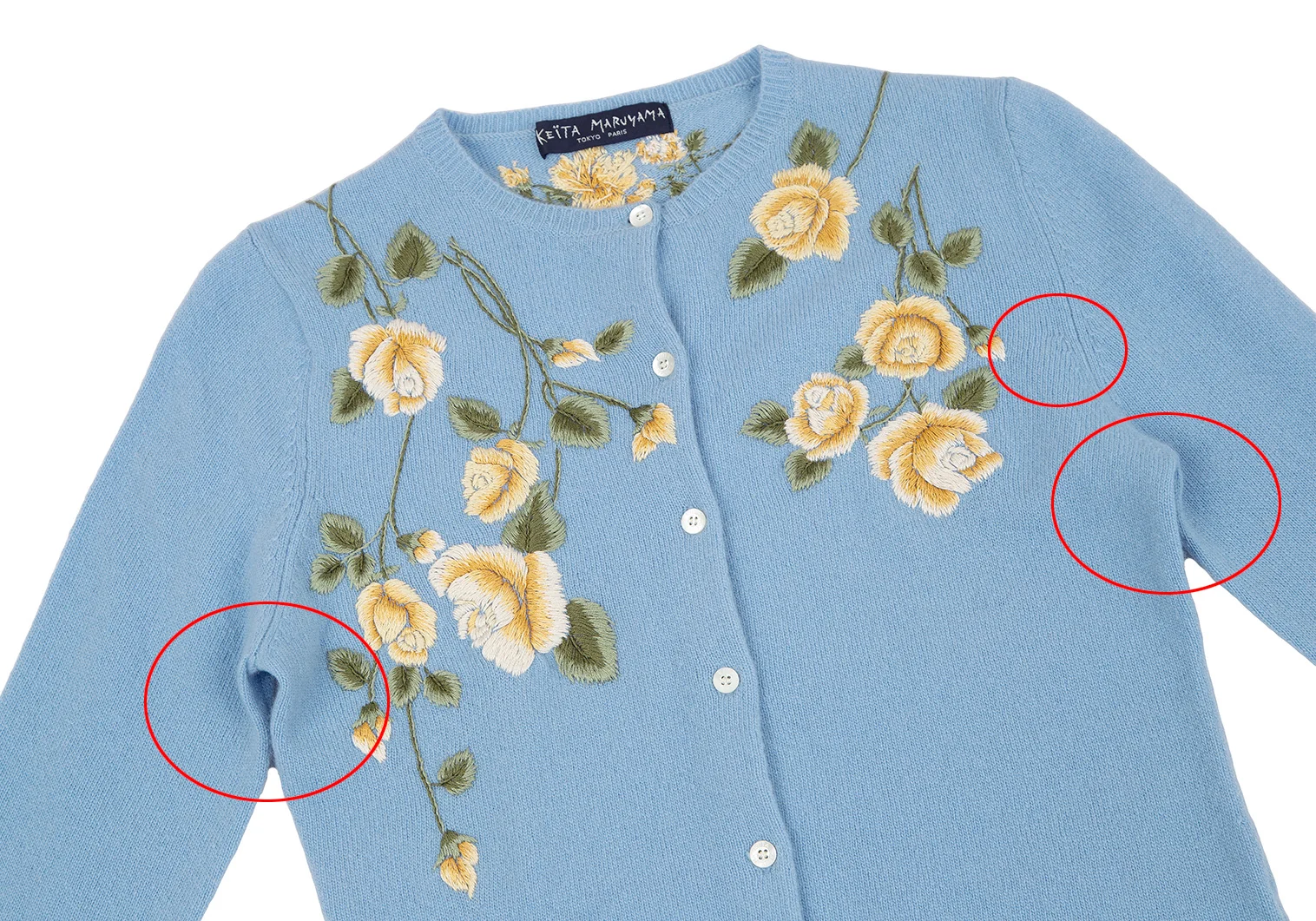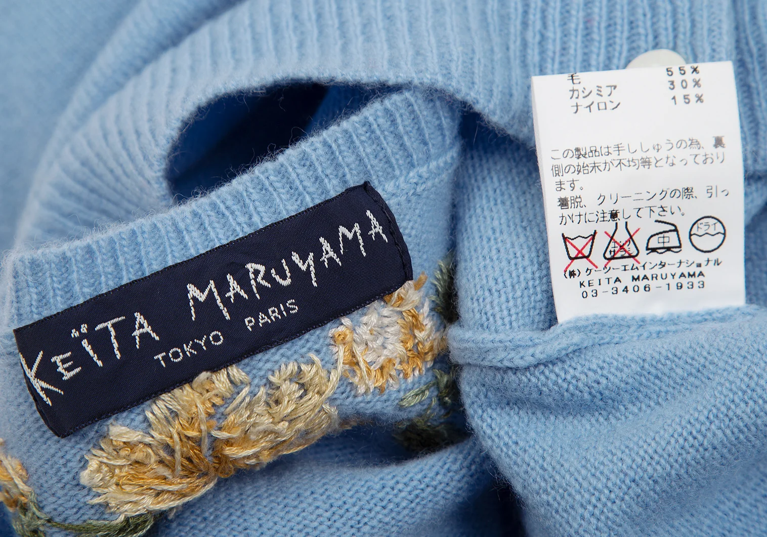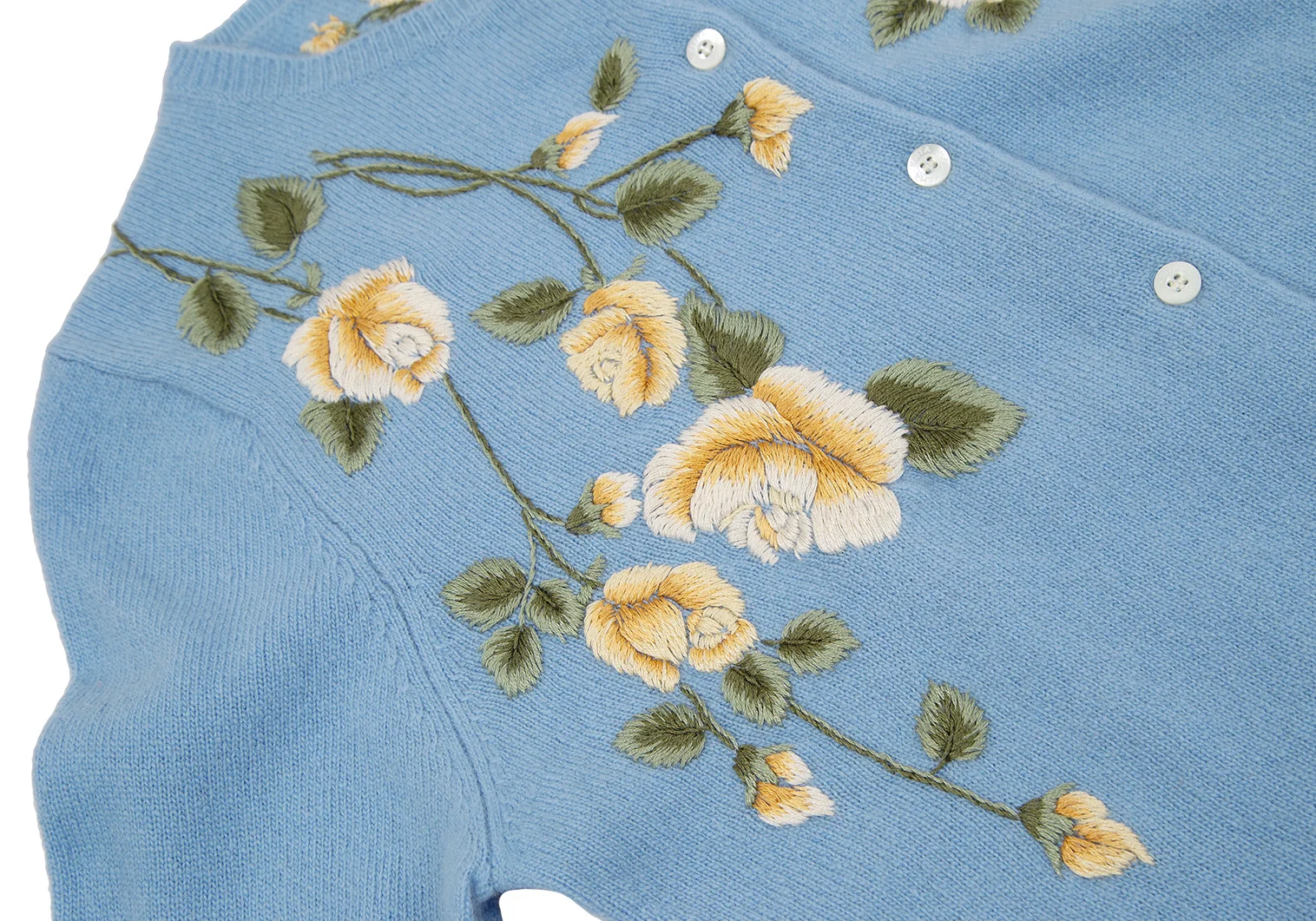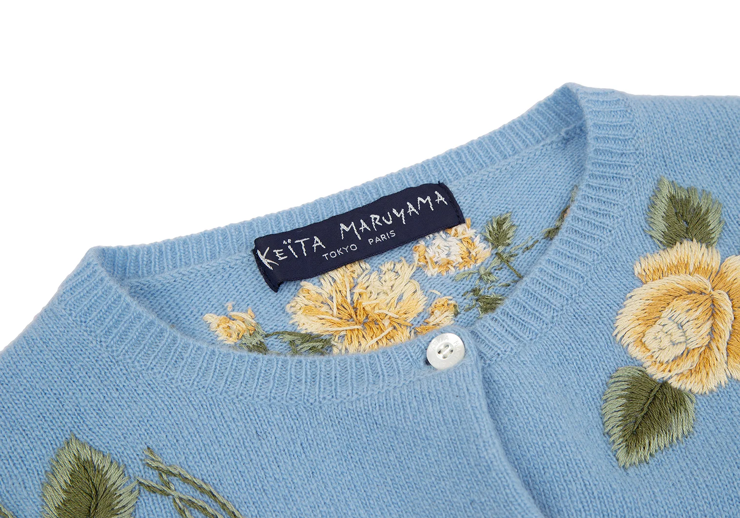 ケイタマルヤマKEITA MARUYAMA ウールカシミヤ花刺繍ニットカーディガン 水色1