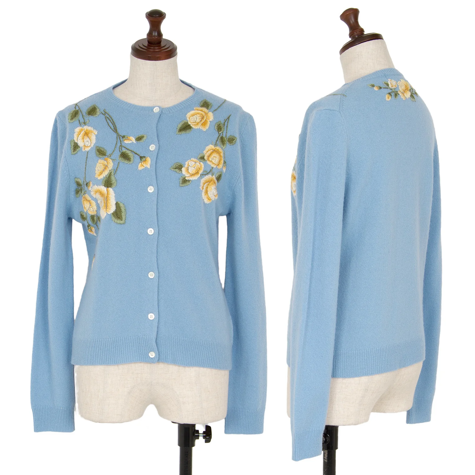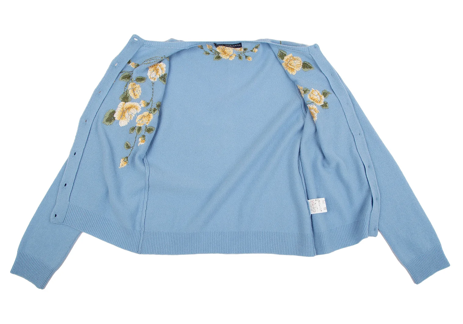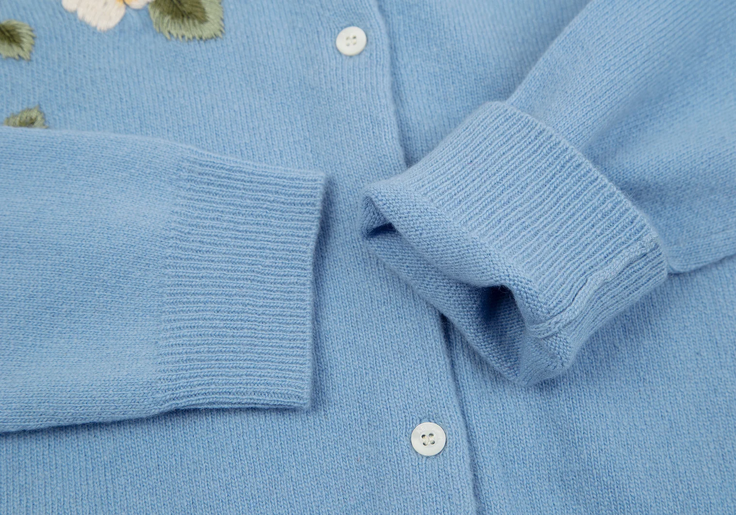 ケイタマルヤマKEITA MARUYAMA ウールカシミヤ花刺繍ニットカーディガン 水色1