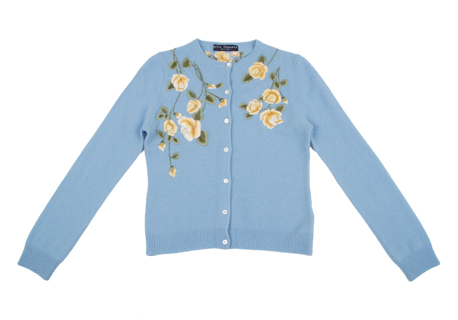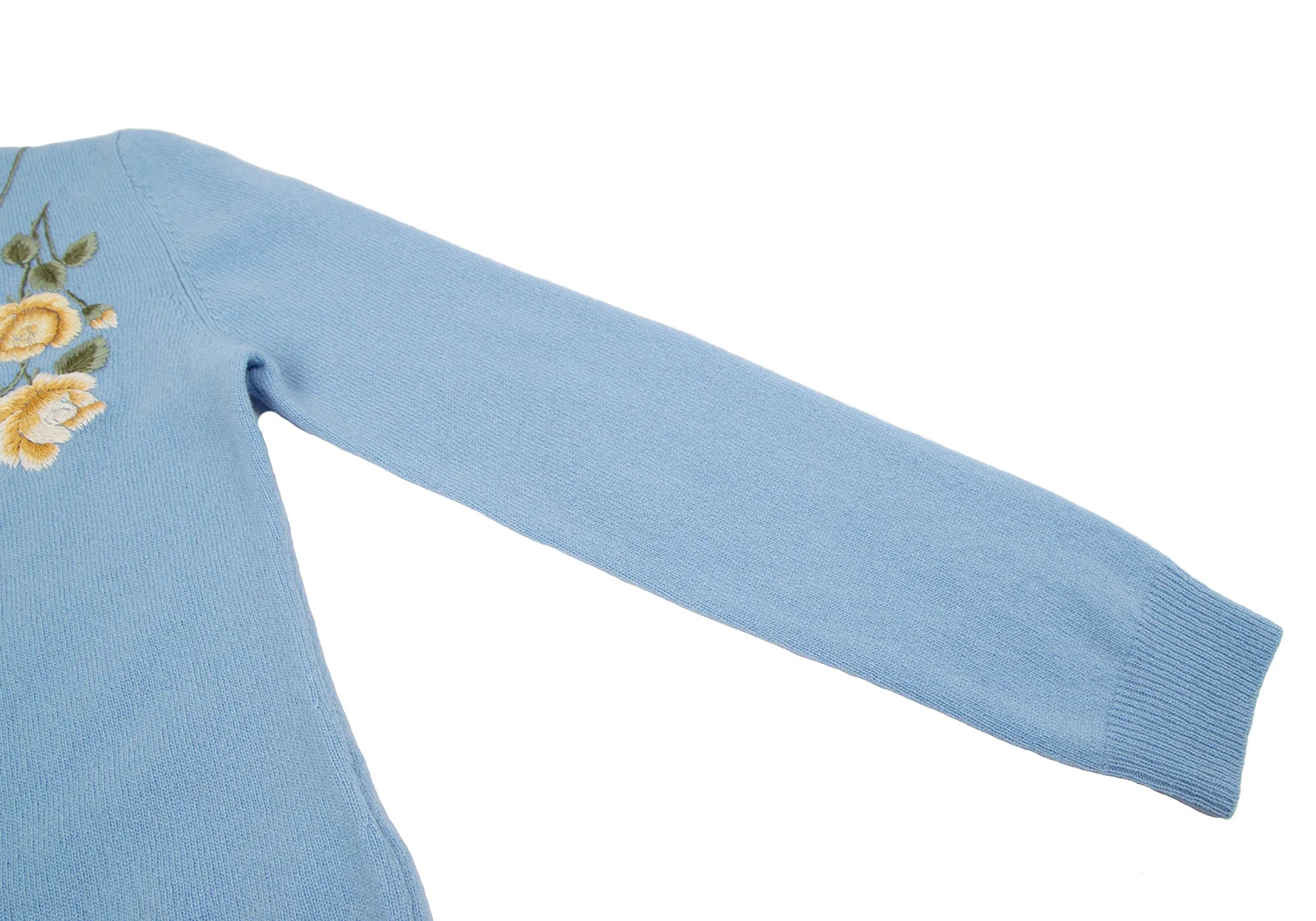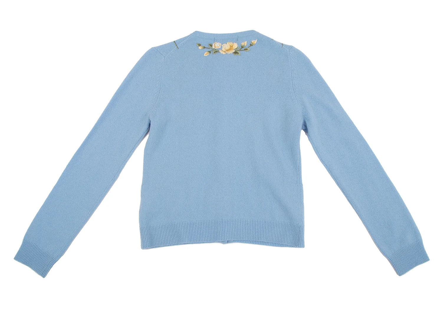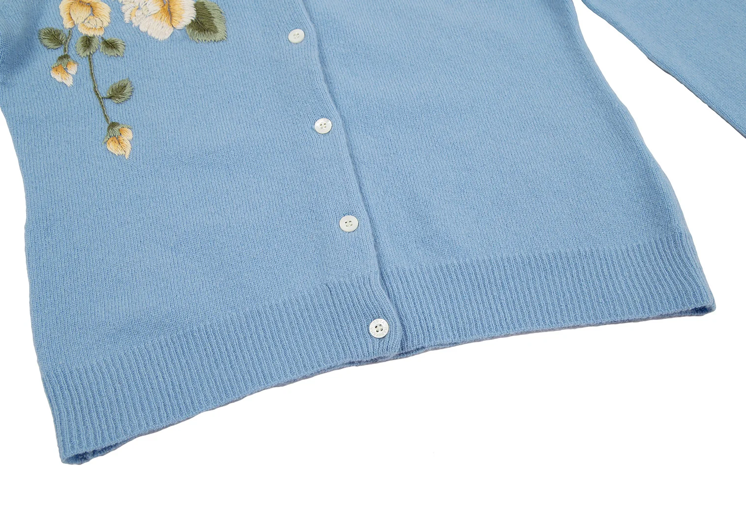 ケイタマルヤマKEITA MARUYAMA ウールカシミヤ花刺繍ニットカーディガン 水色1