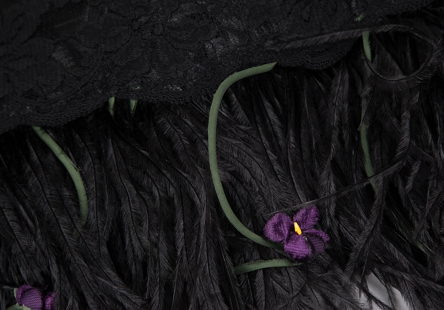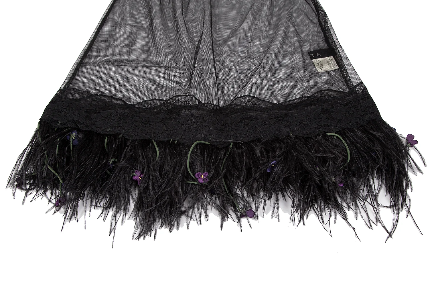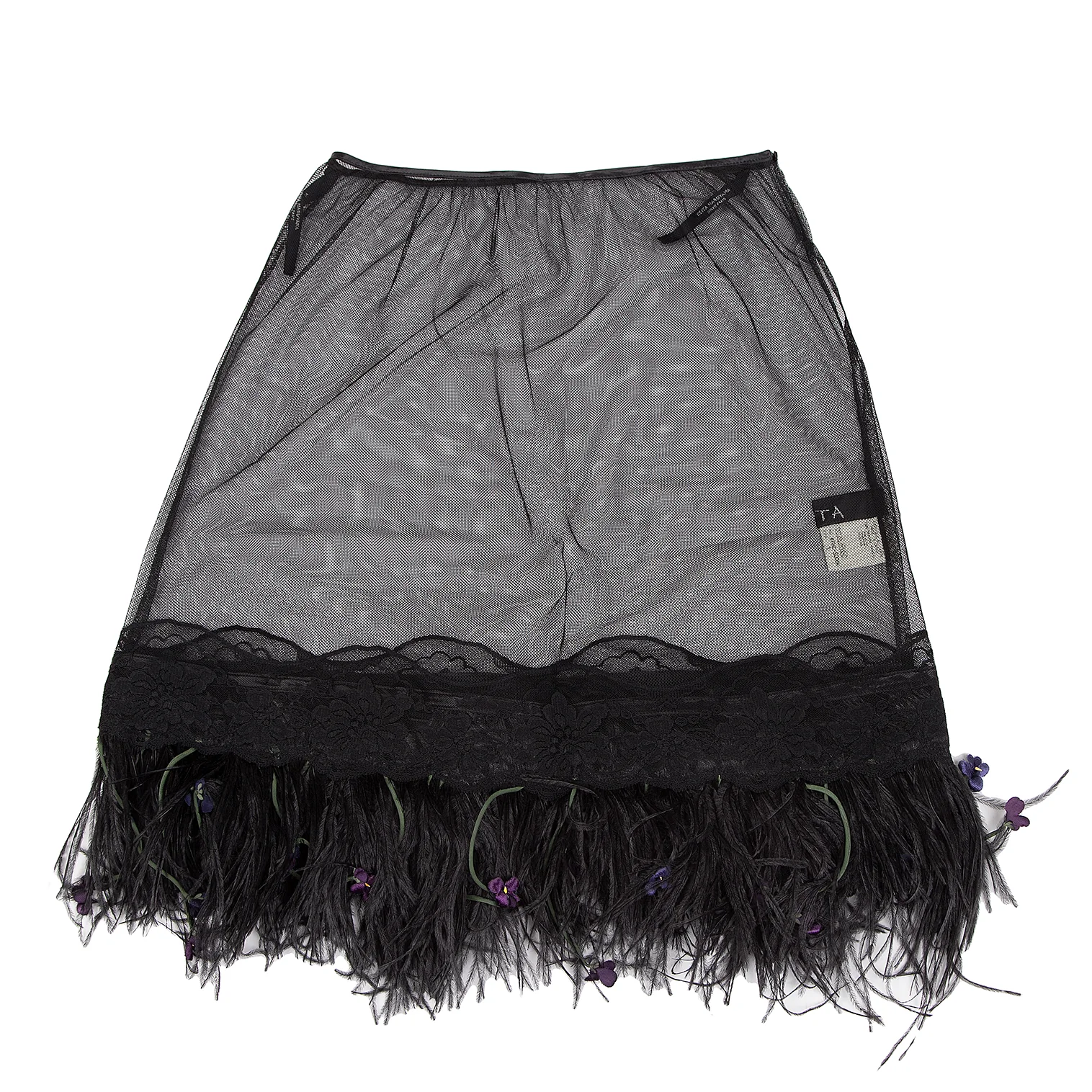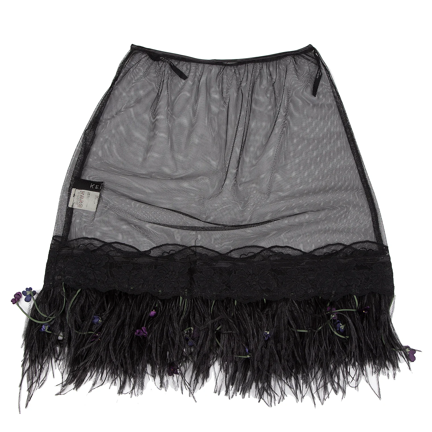 ケイタマルヤマKEITA MARUYAMA フェザーフリンジ装飾メッシュオーバースカート 黒1