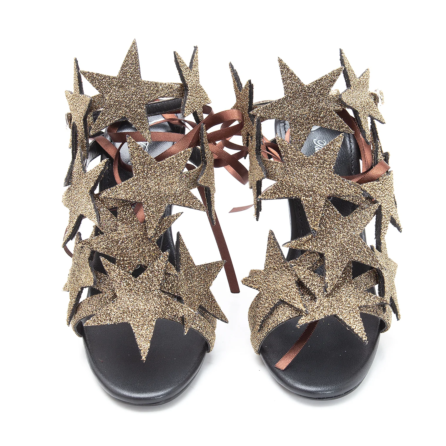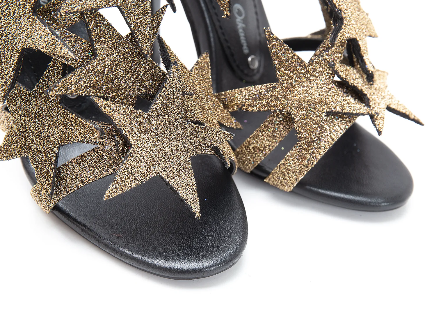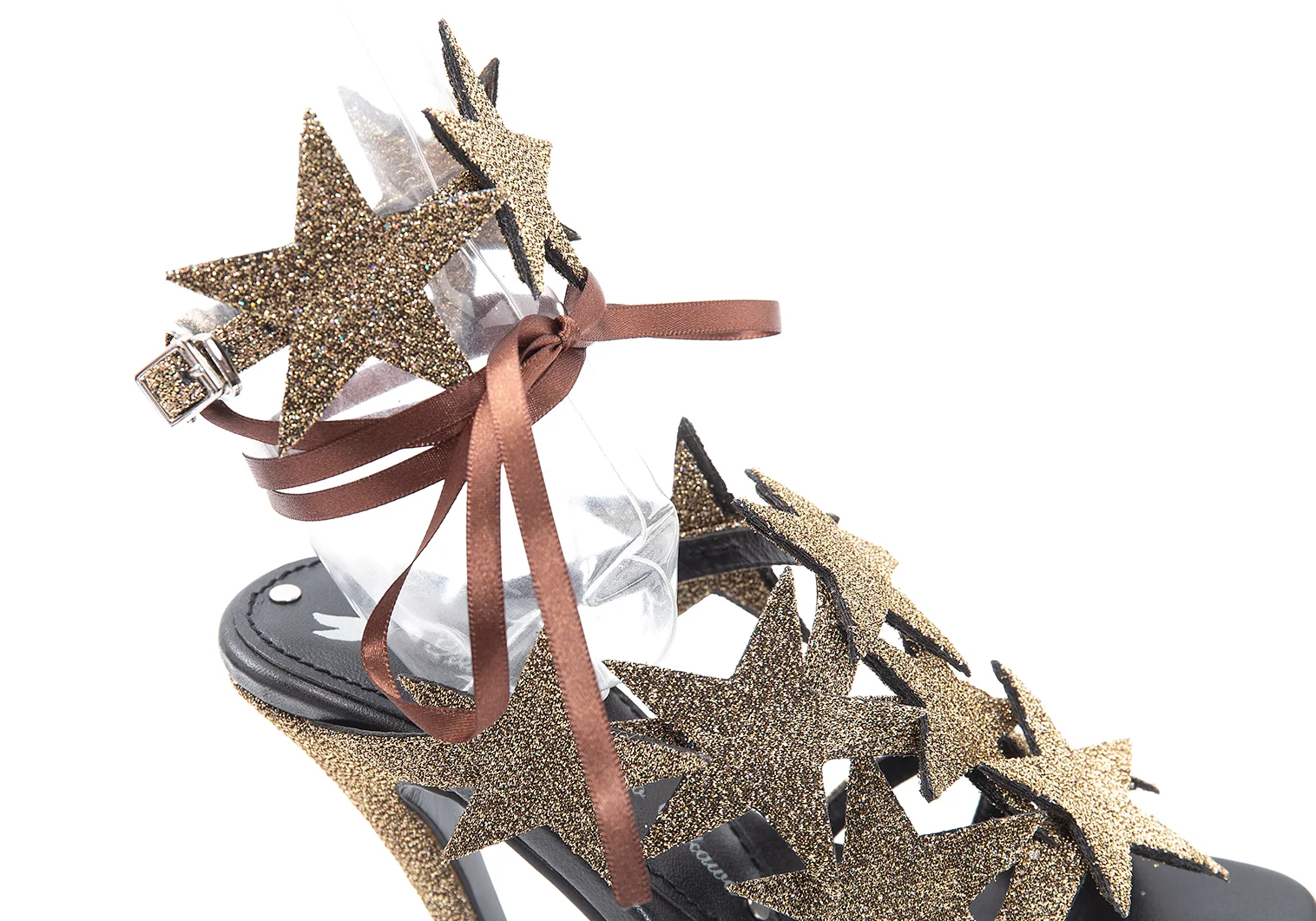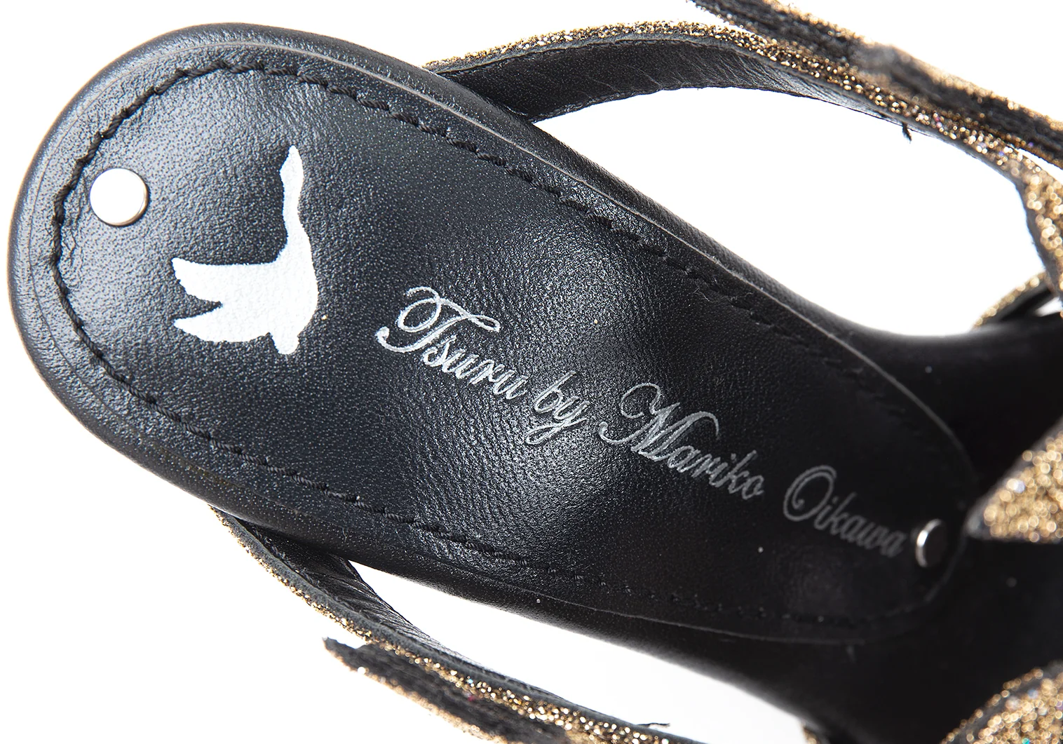ツルバイマリコオイカワTSURU BY MARIKO OIKAWA グリッタースターヒールサンダル 35 ゴールド35(22.5位)