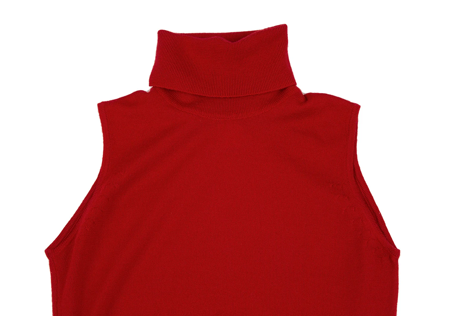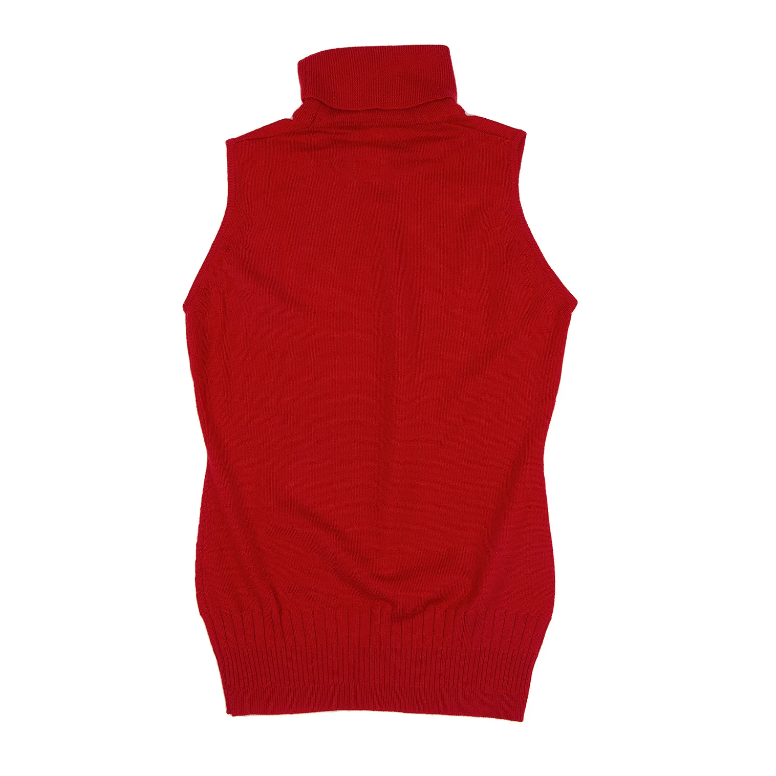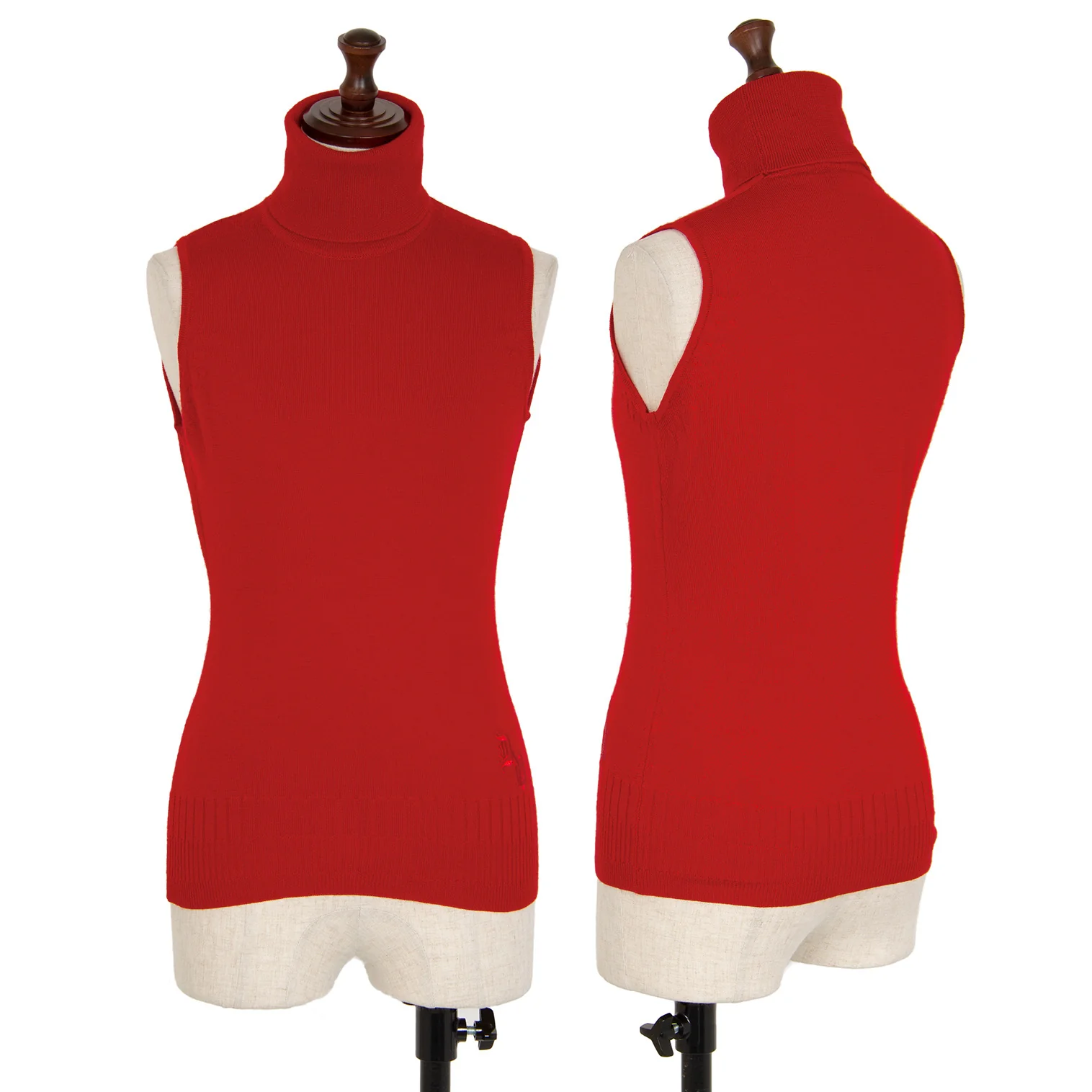 ヴェルサーチVERSACE ワンポイント刺繍タートルネックノースリーブニット 赤38
