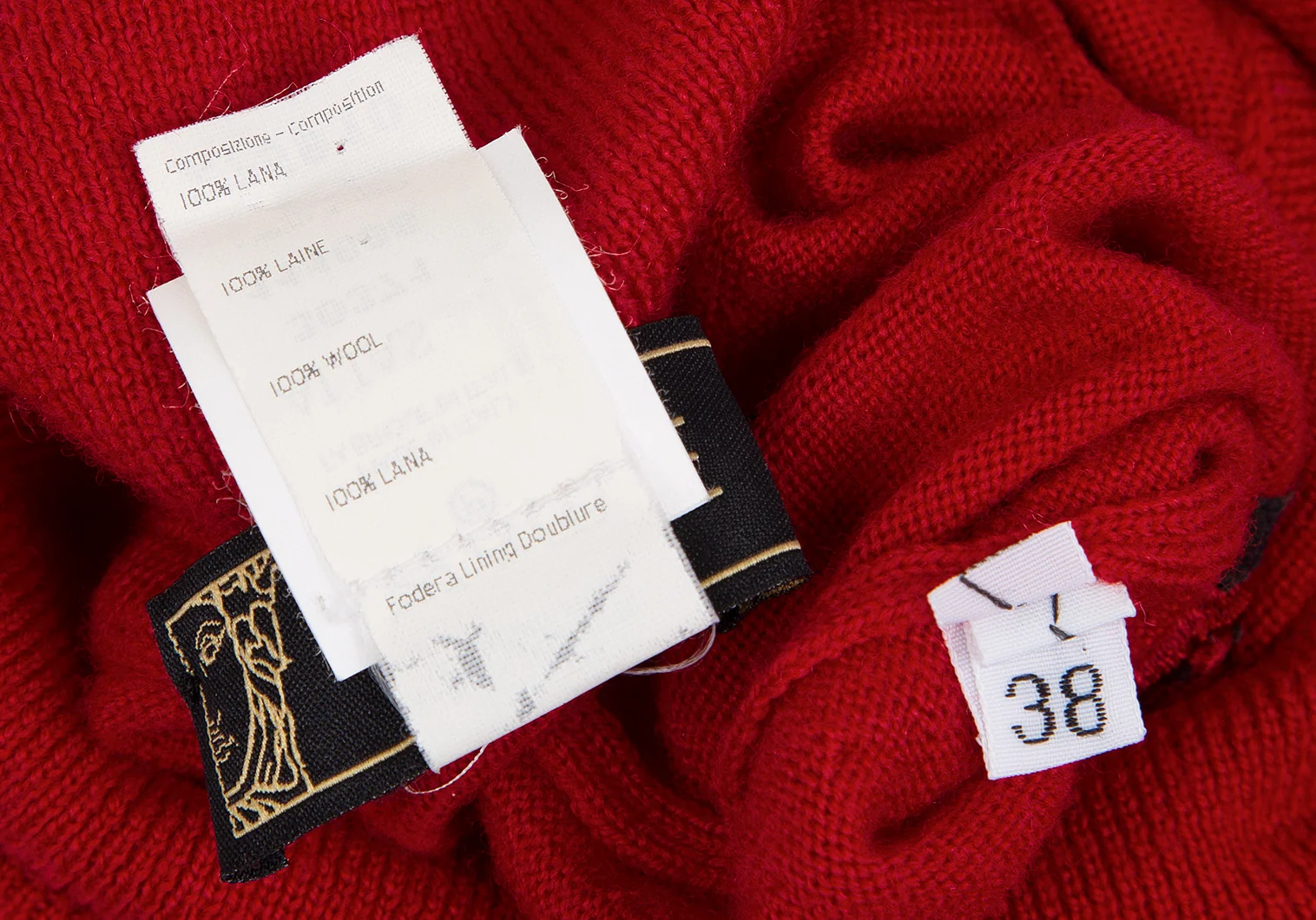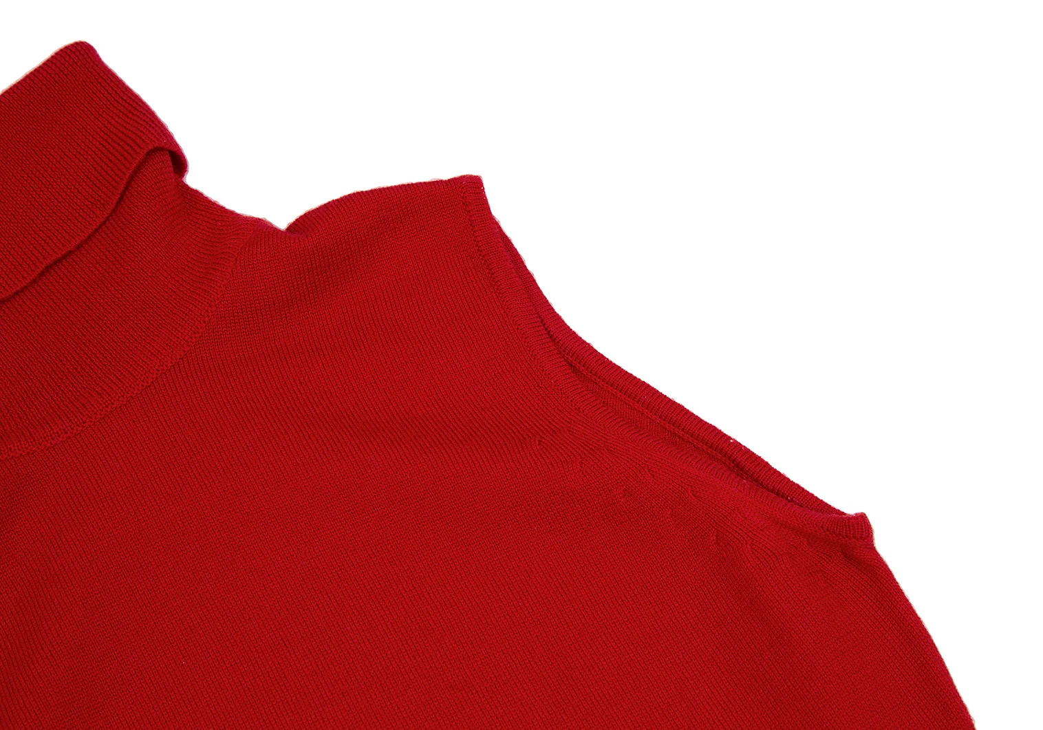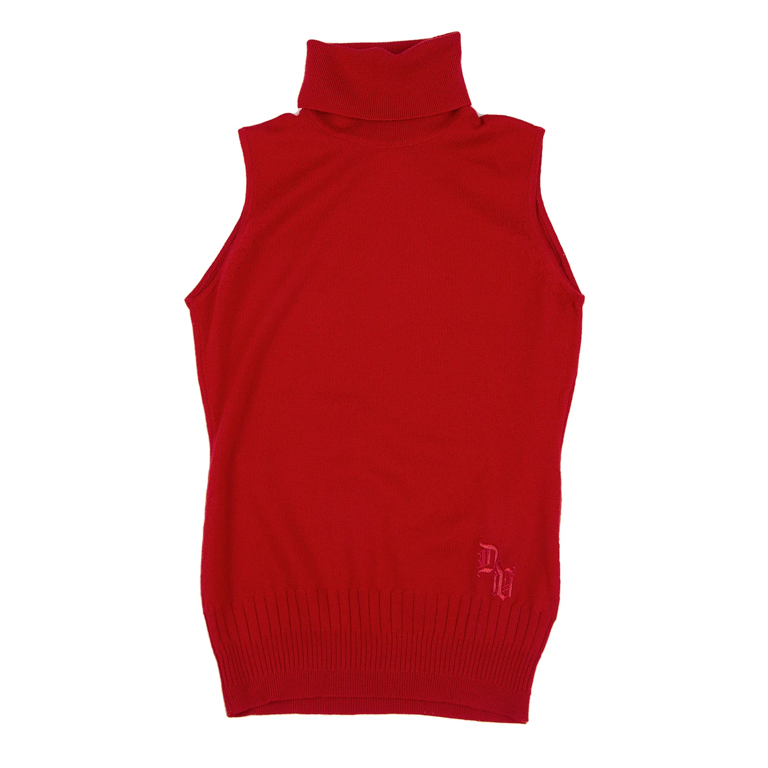 ヴェルサーチVERSACE ワンポイント刺繍タートルネックノースリーブニット 赤38