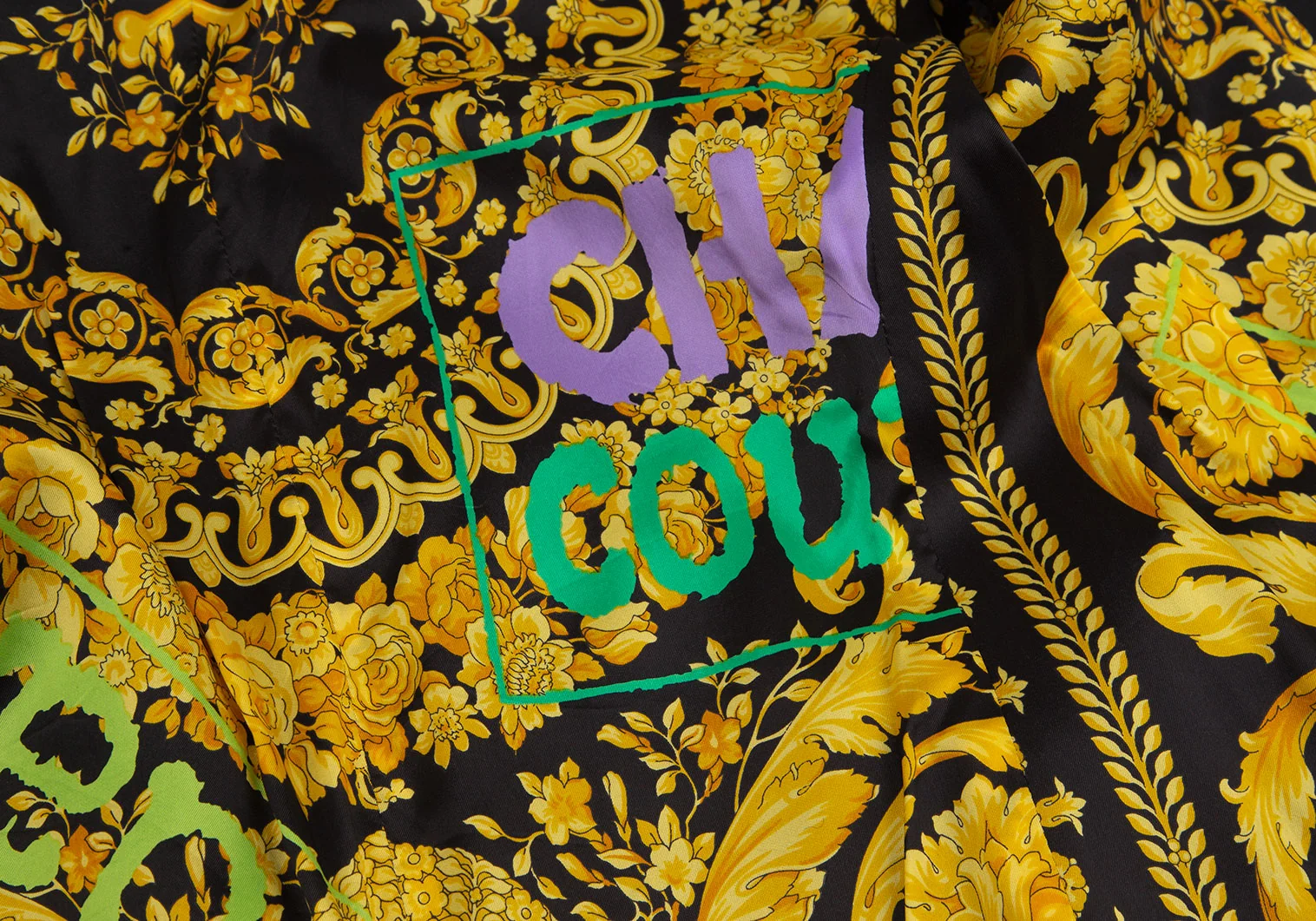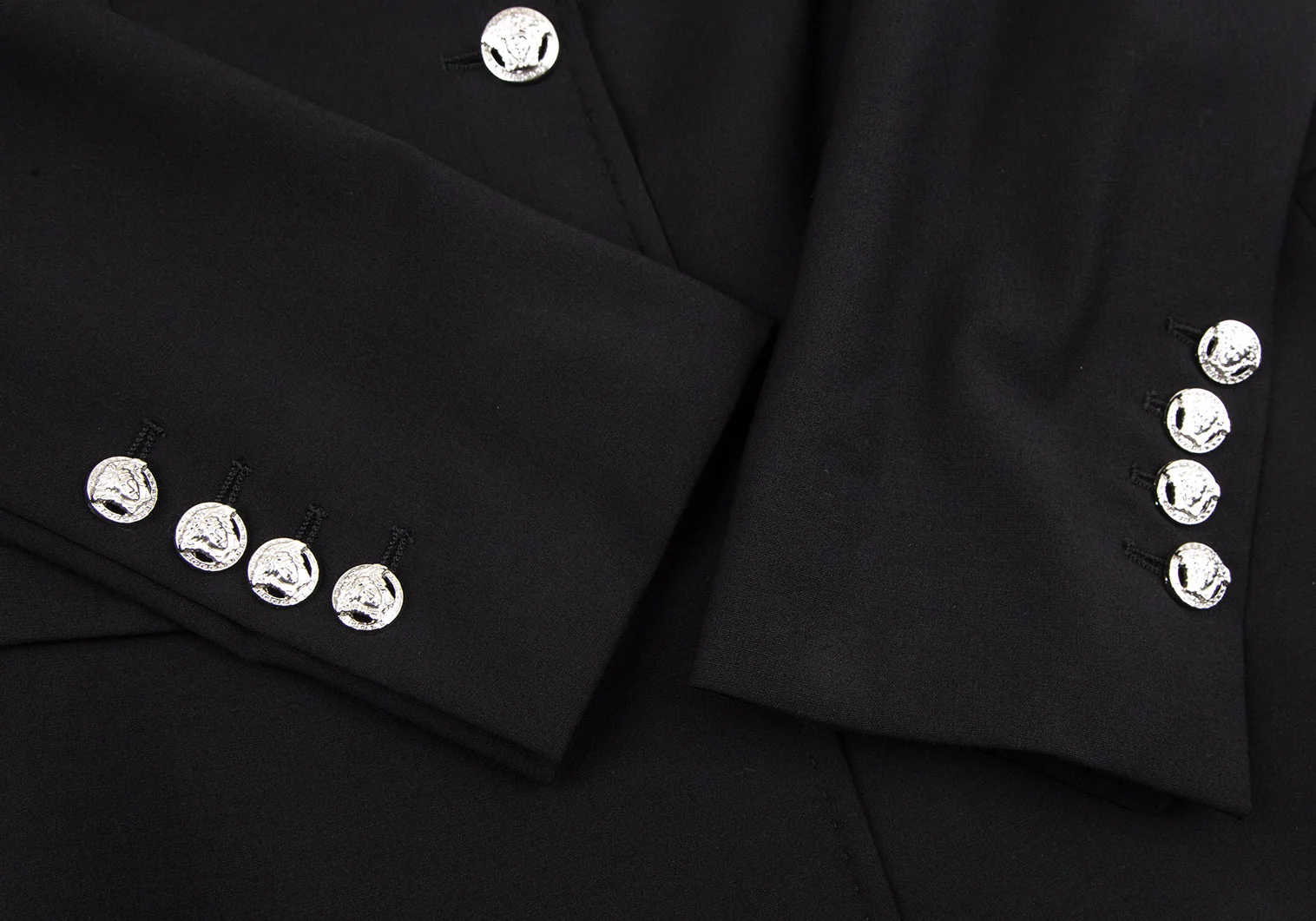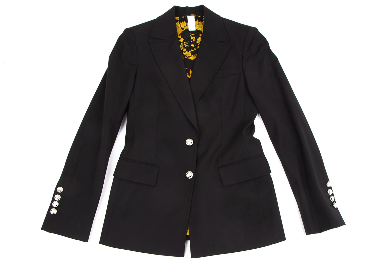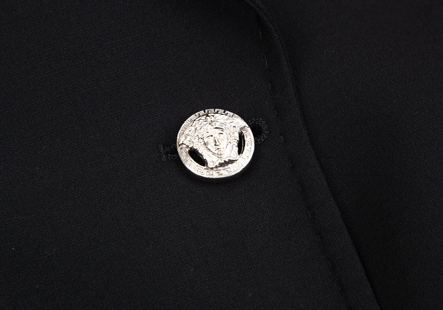 ヴェルサーチVERSACE 裏ゴシックプリントストレッチメデューサボタンジャケット 黒38