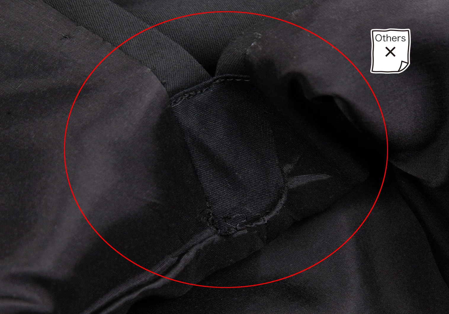 後ろスリット根元・裏側にダメージがあります(写真参照)。その他目立ったシミ、汚れ、ほつれ等なくいい状態です。クリーニング済み