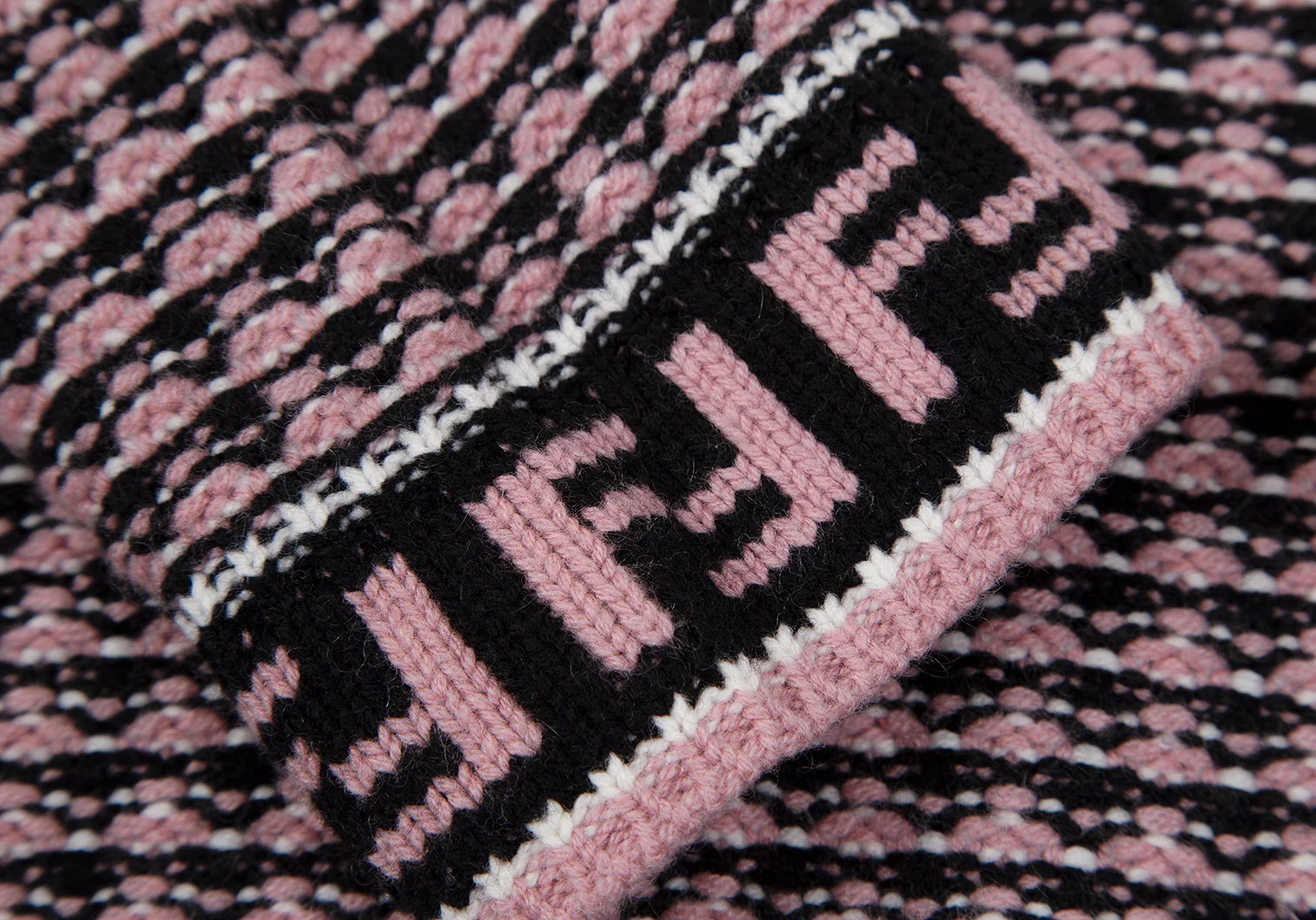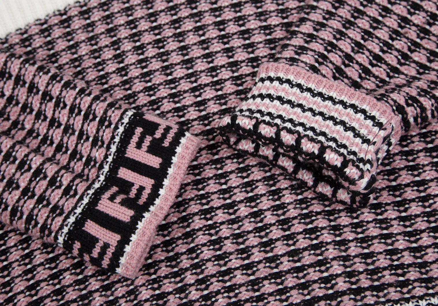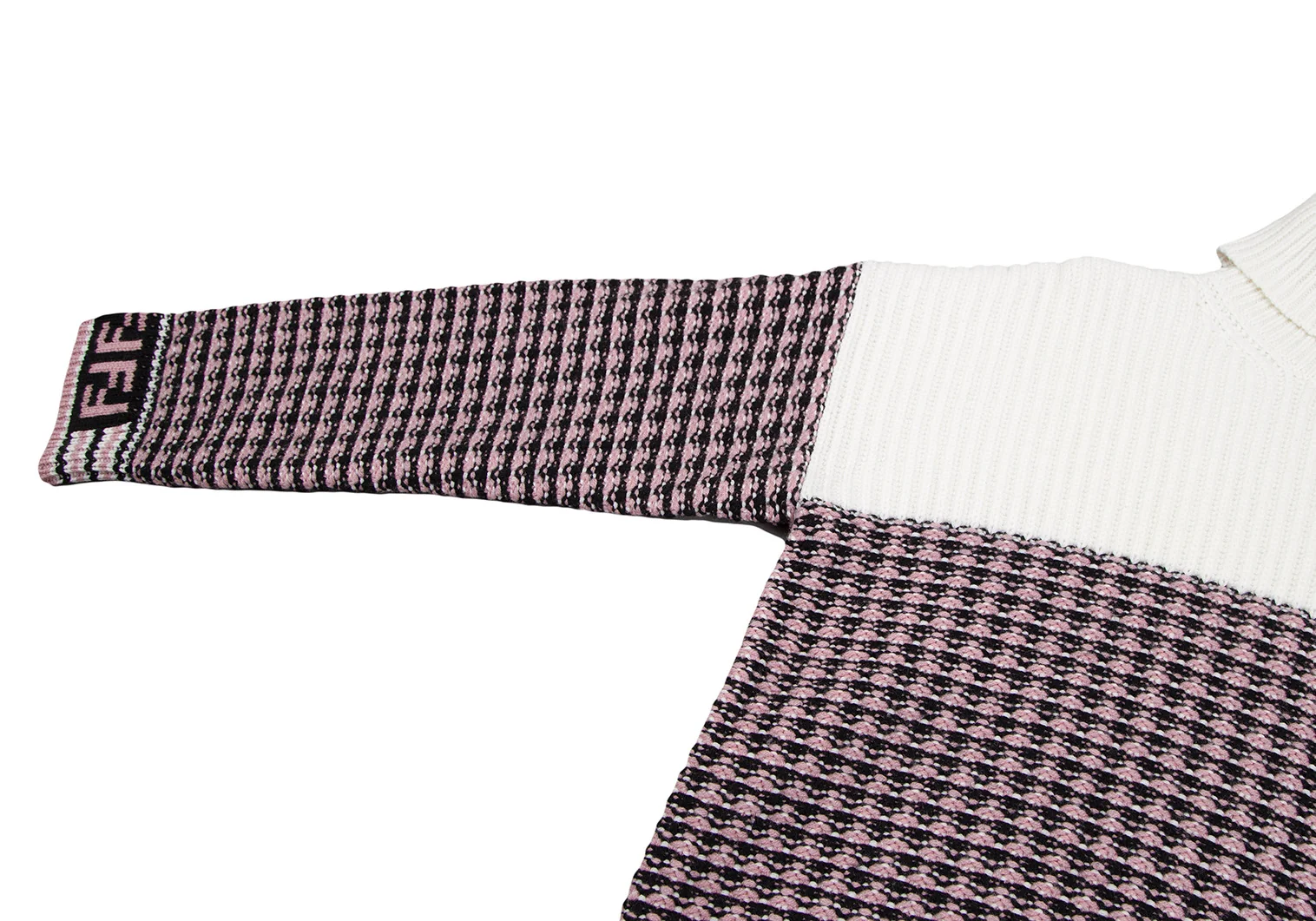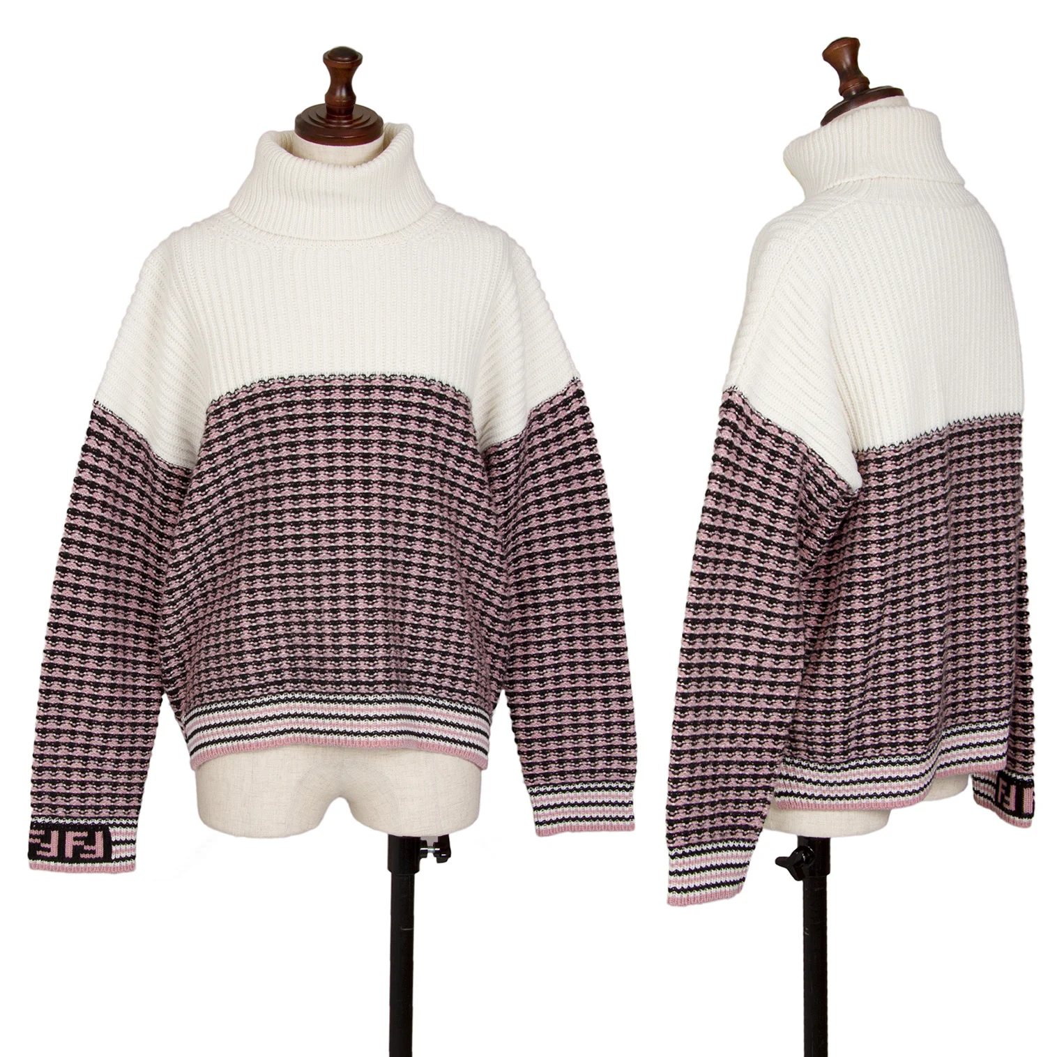 フェンディFENDIウールカシミヤ袖ズッカ柄タートルニットセーター 白ピンク46