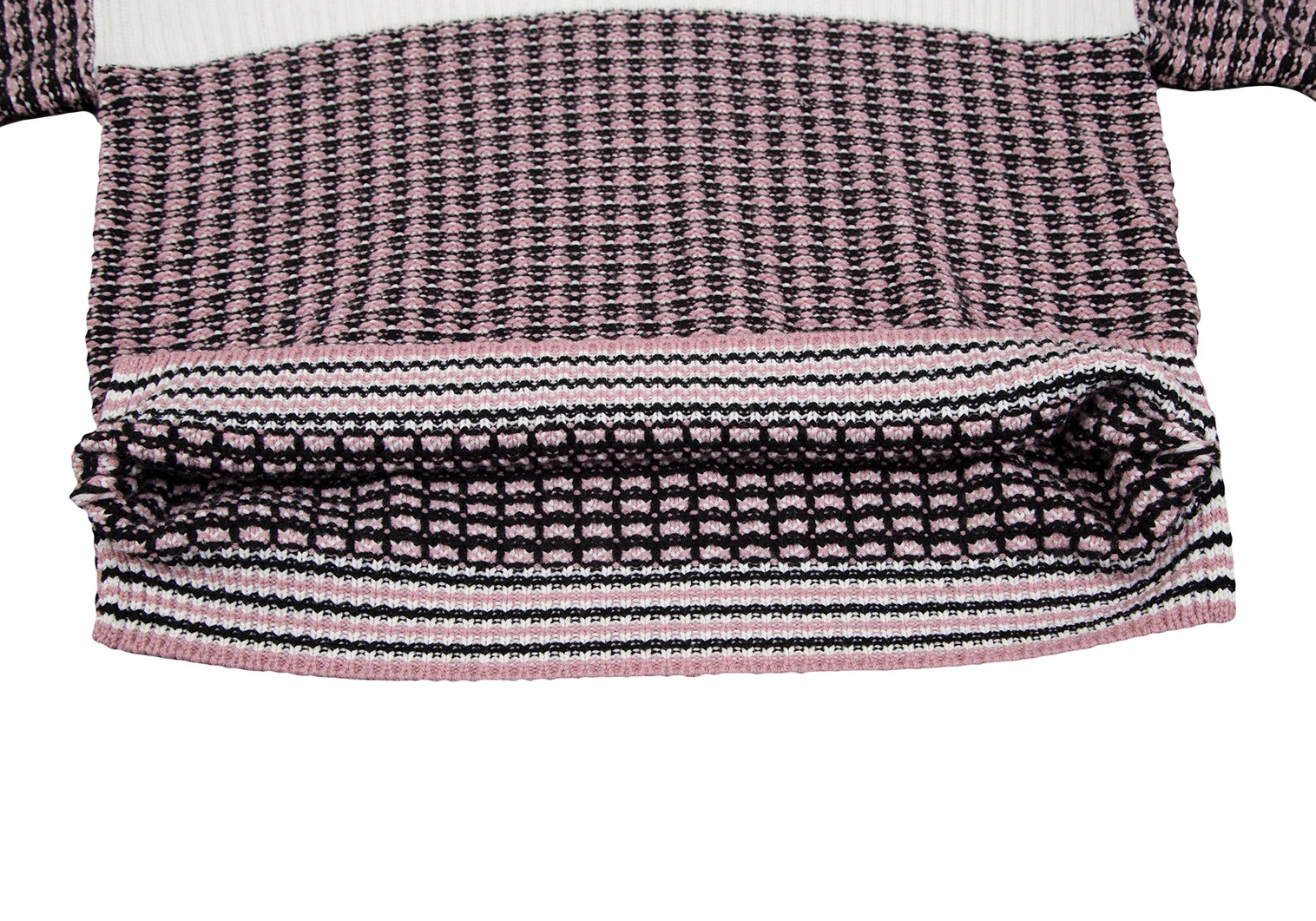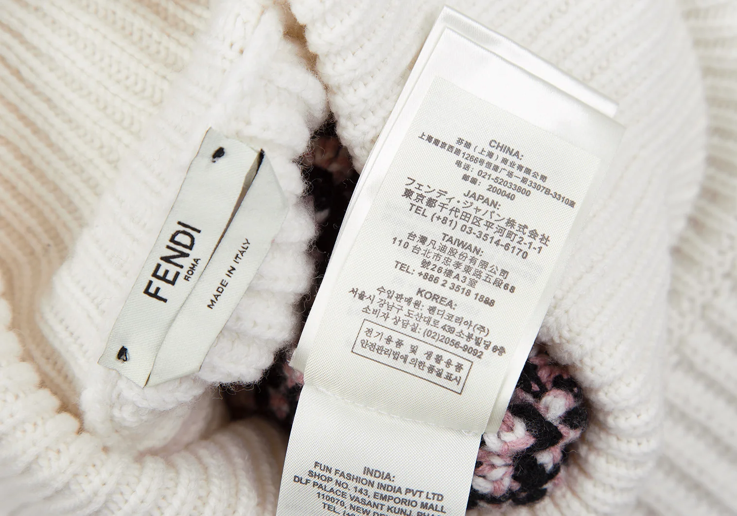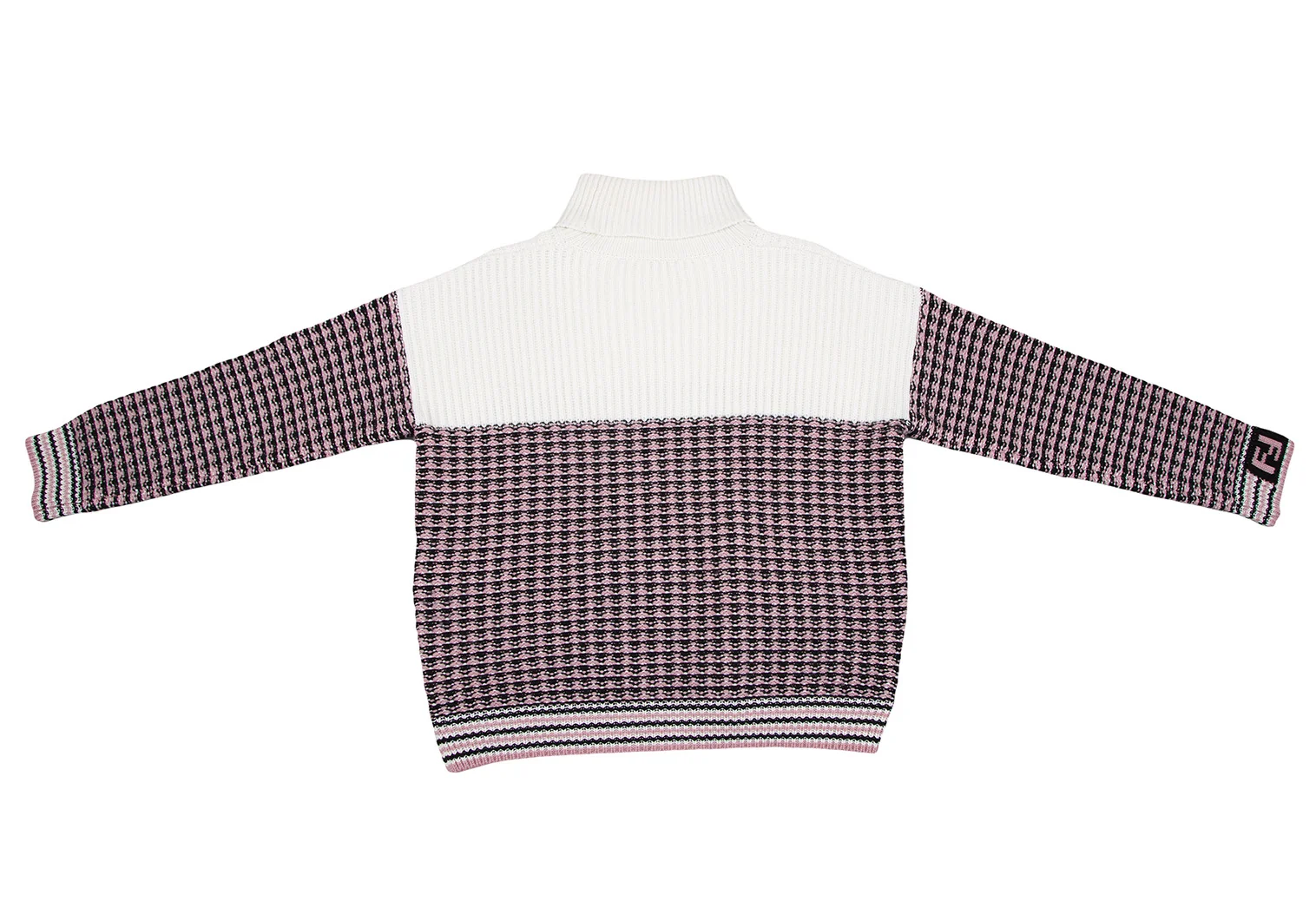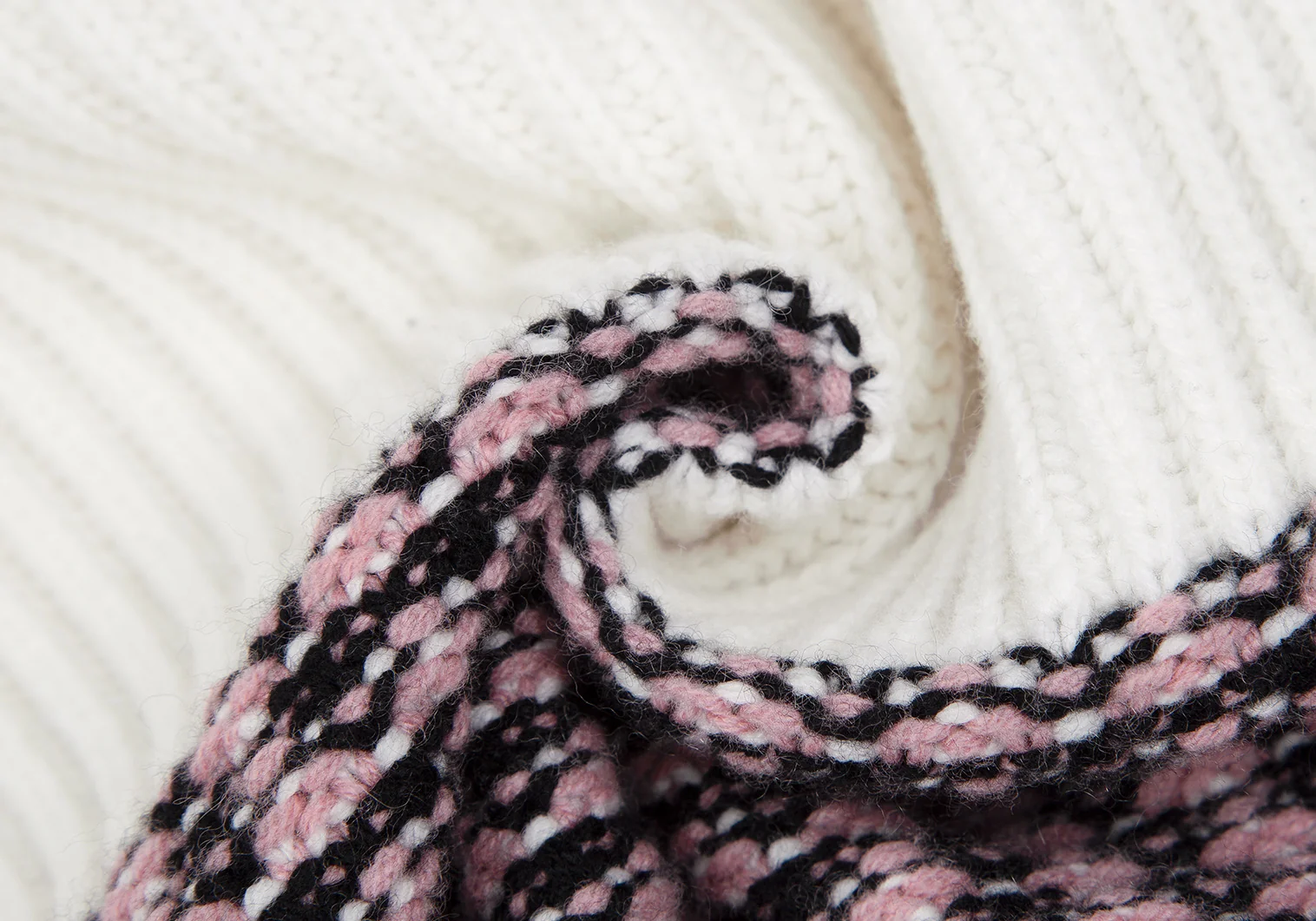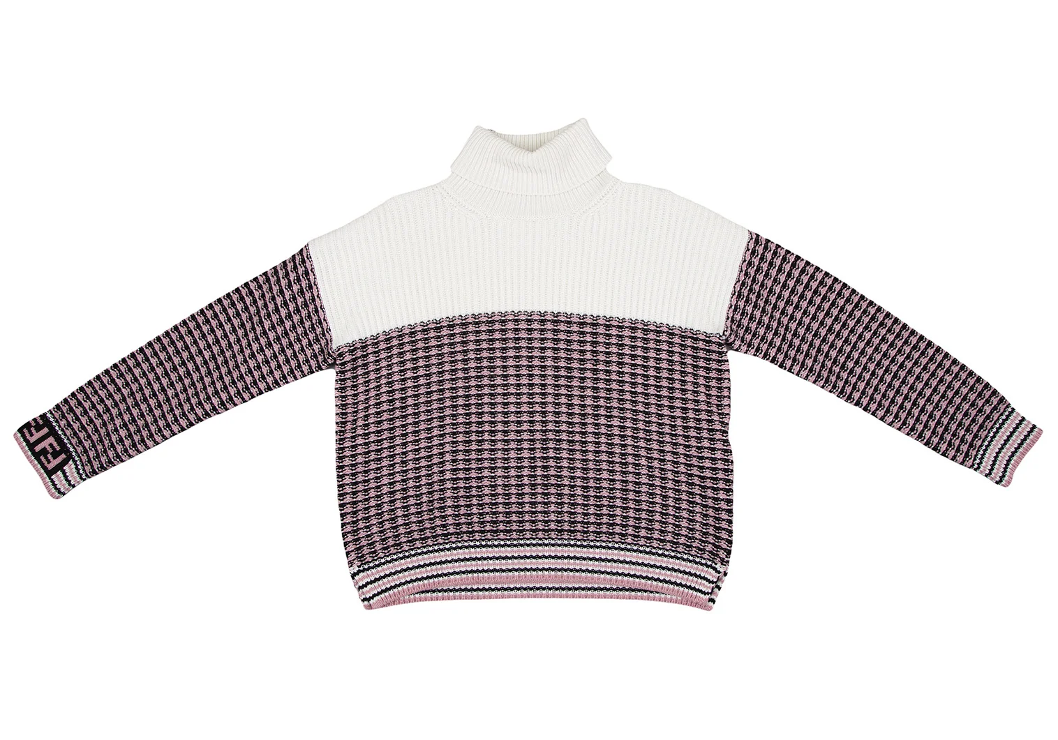 フェンディFENDIウールカシミヤ袖ズッカ柄タートルニットセーター 白ピンク46