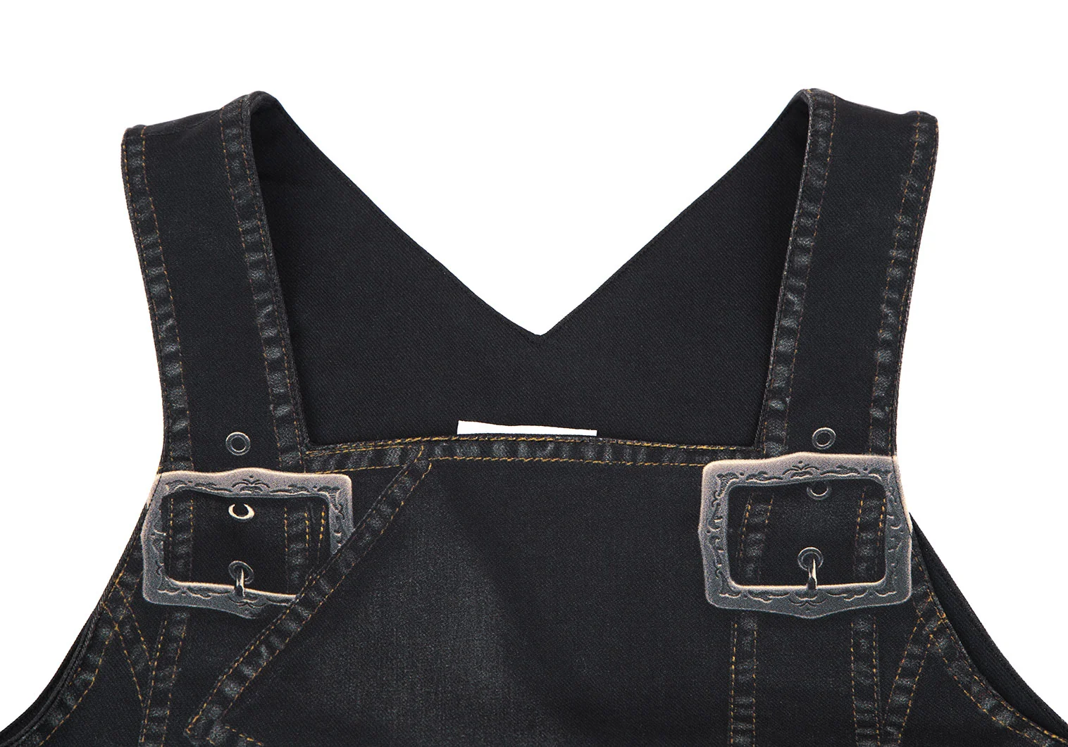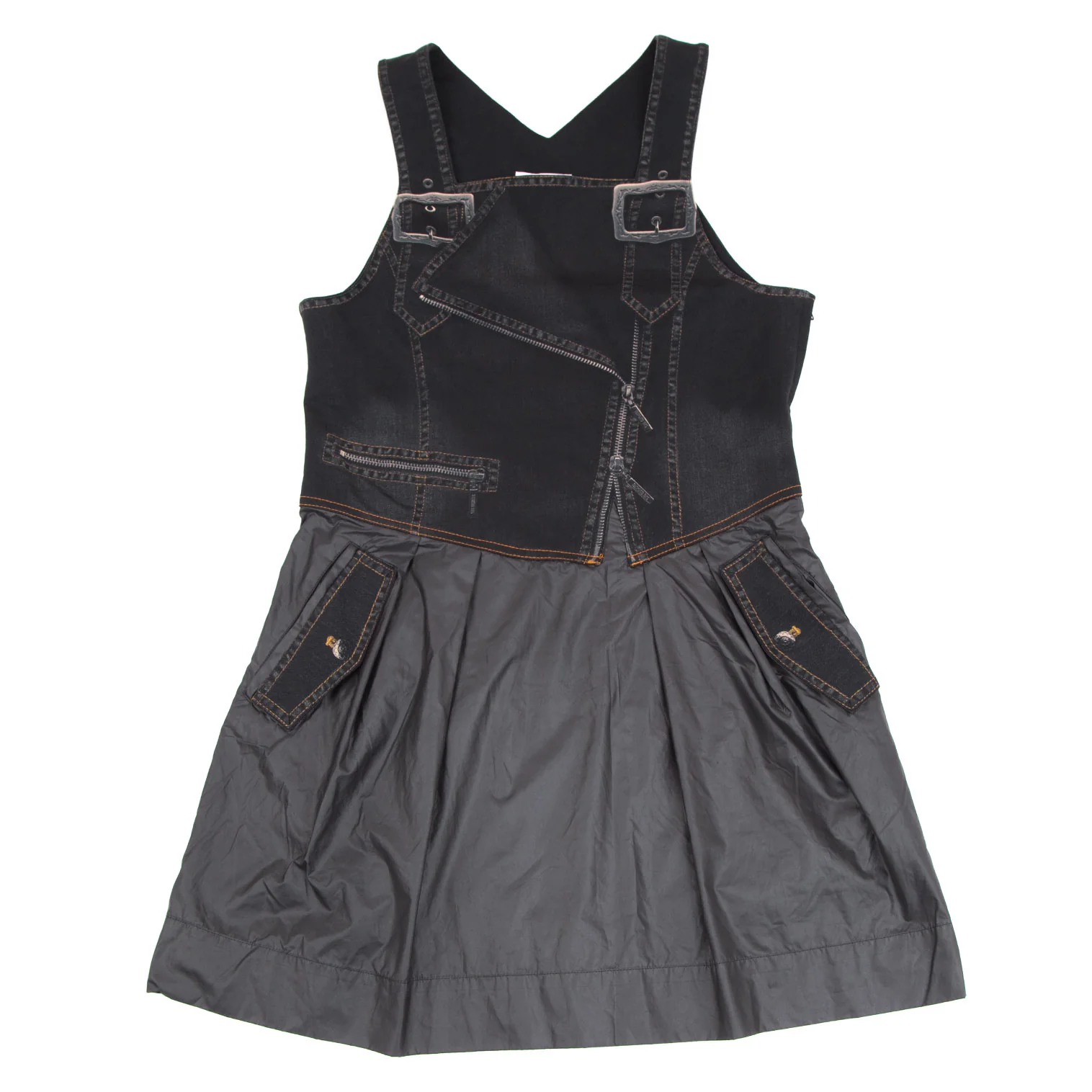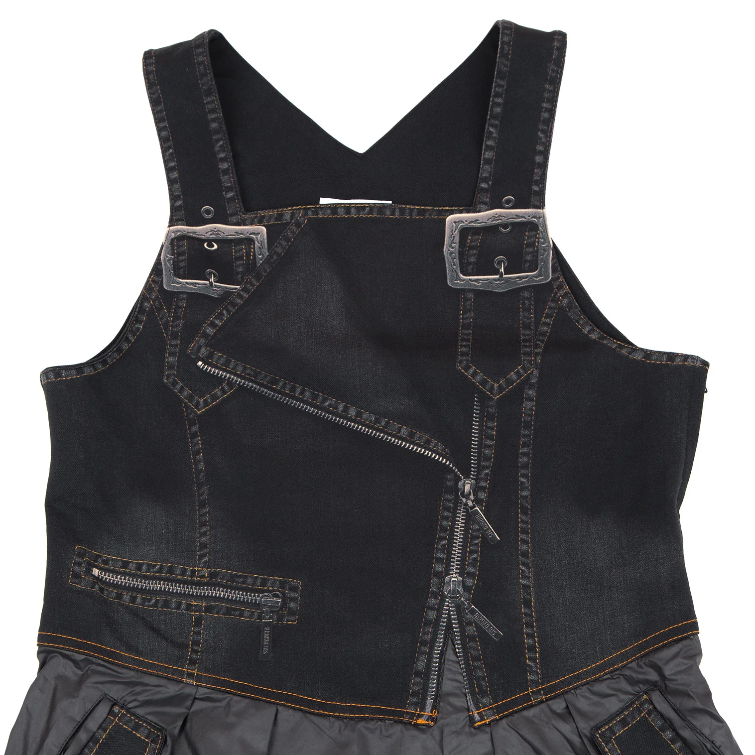 ヒロコビスHIROKO BIS eSSeNtieL デニム転写プリント切替ノースリーブワンピース 黒9