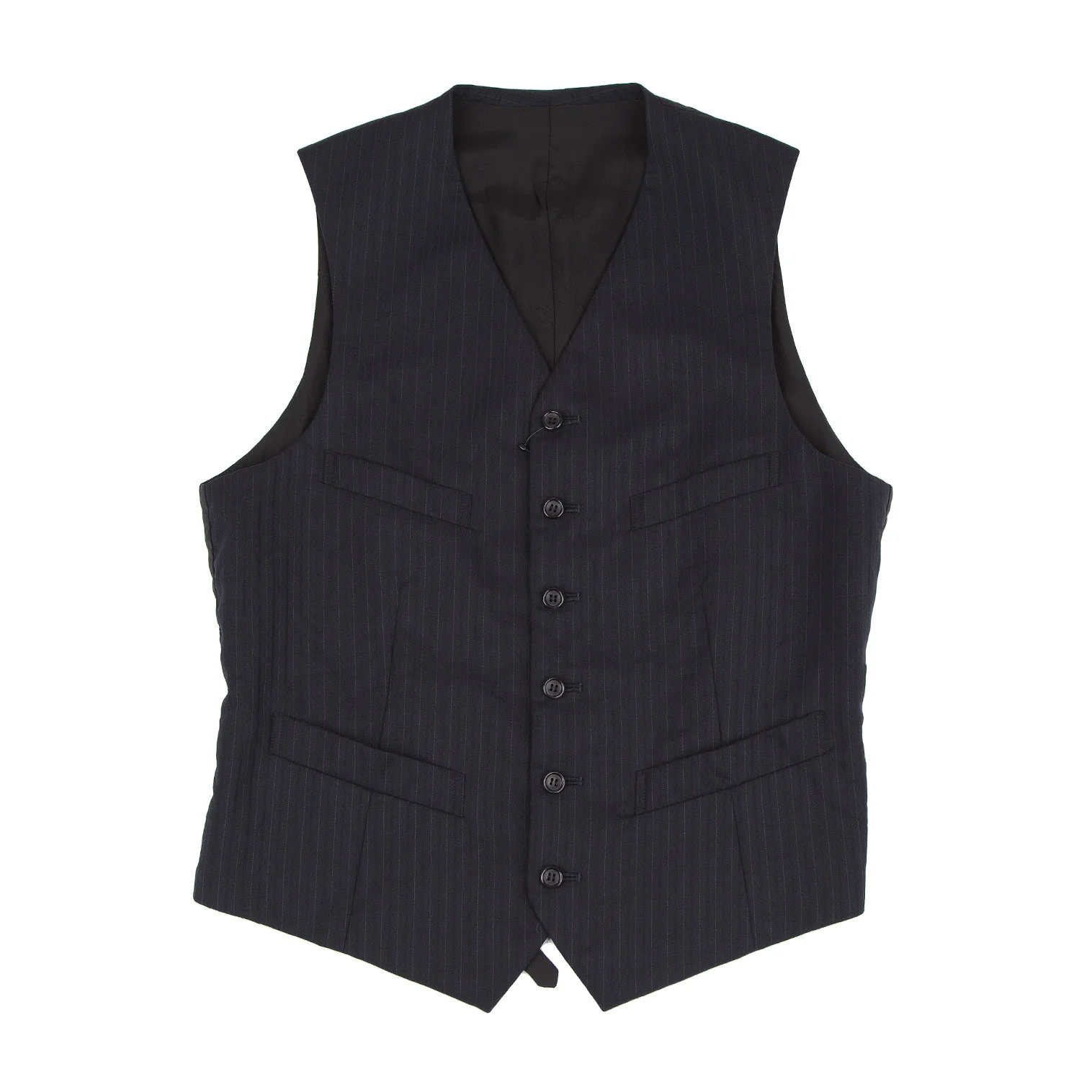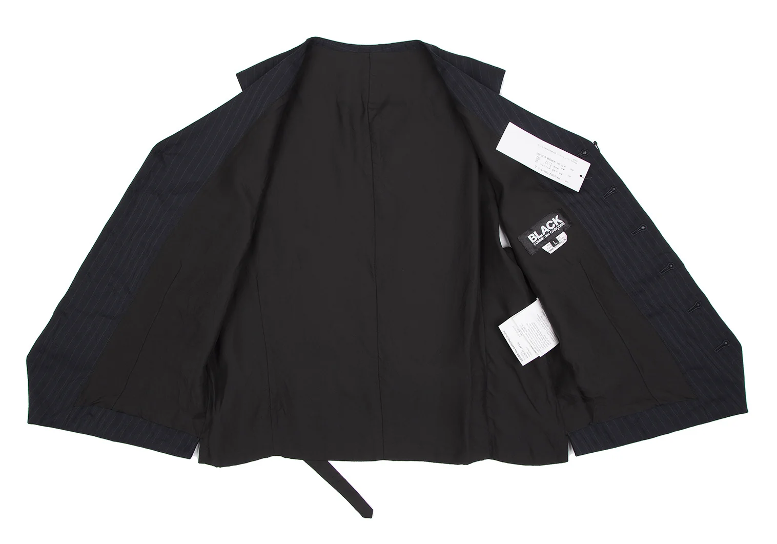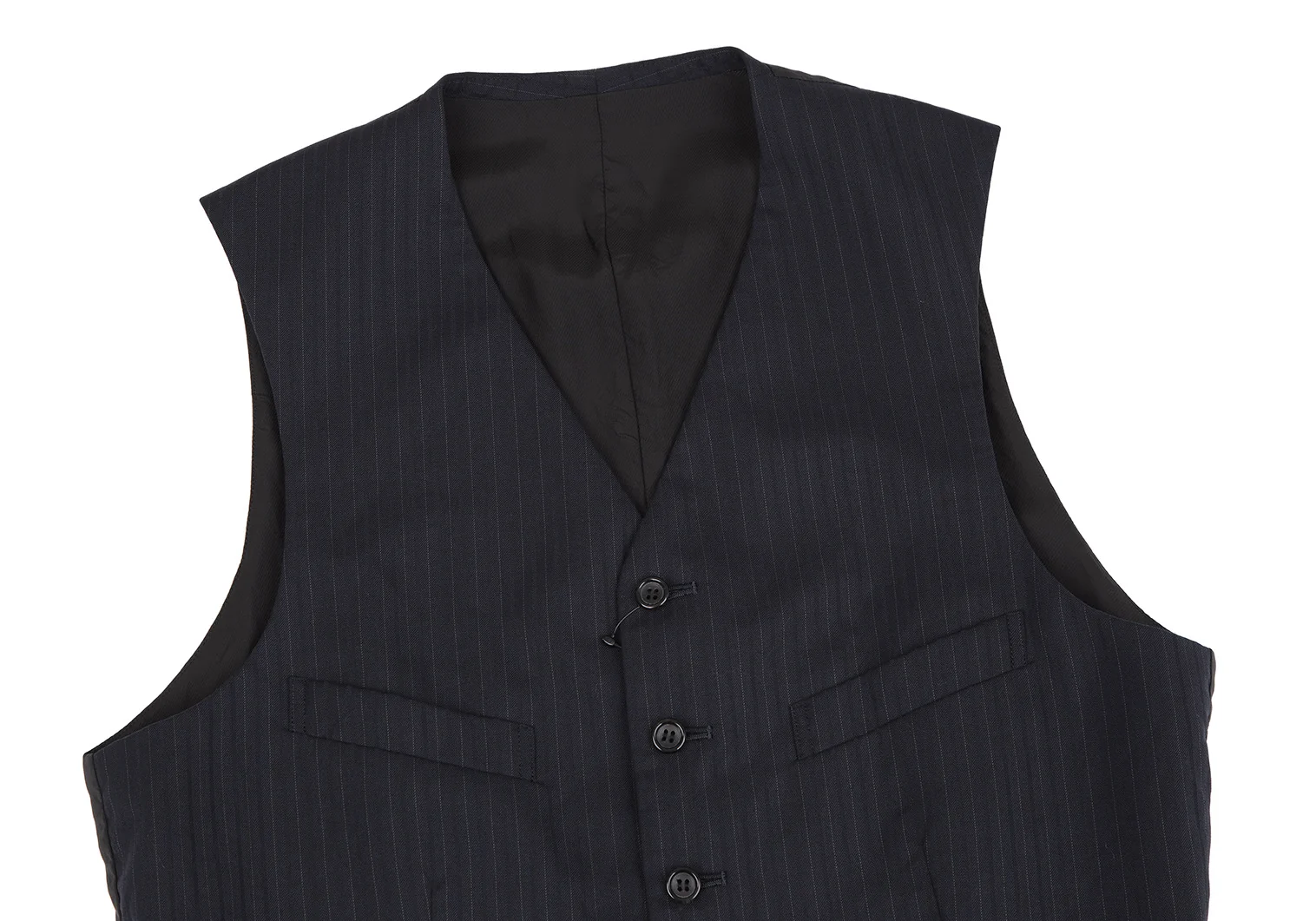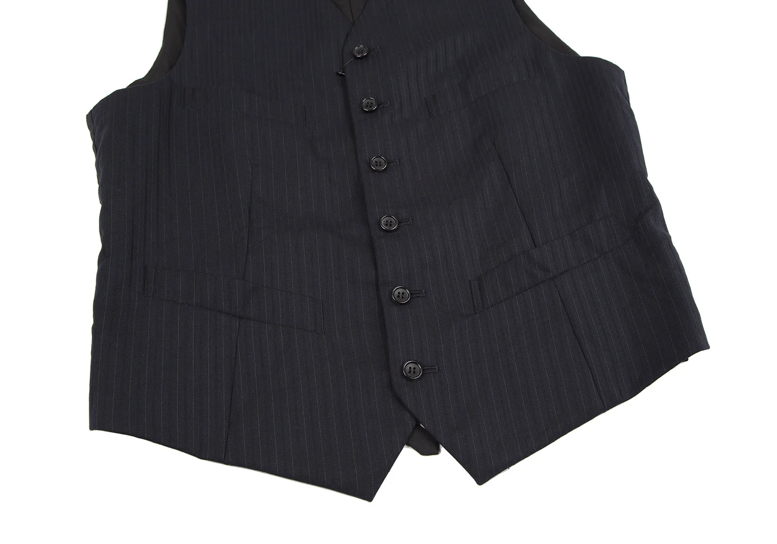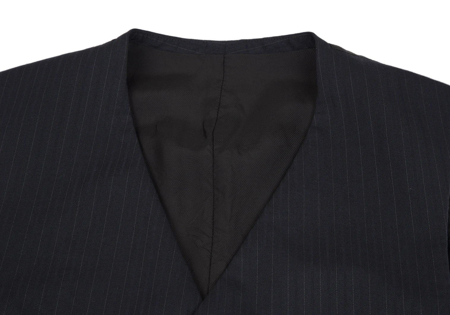 新品!ブラックコムデギャルソンBLACK COMME des GARCONS ポリウールストライプジレベスト 紺黒L