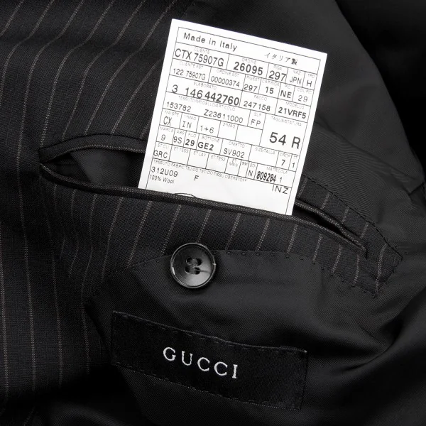 グッチGUCCI 2Bストライプウールジャケット 黒54