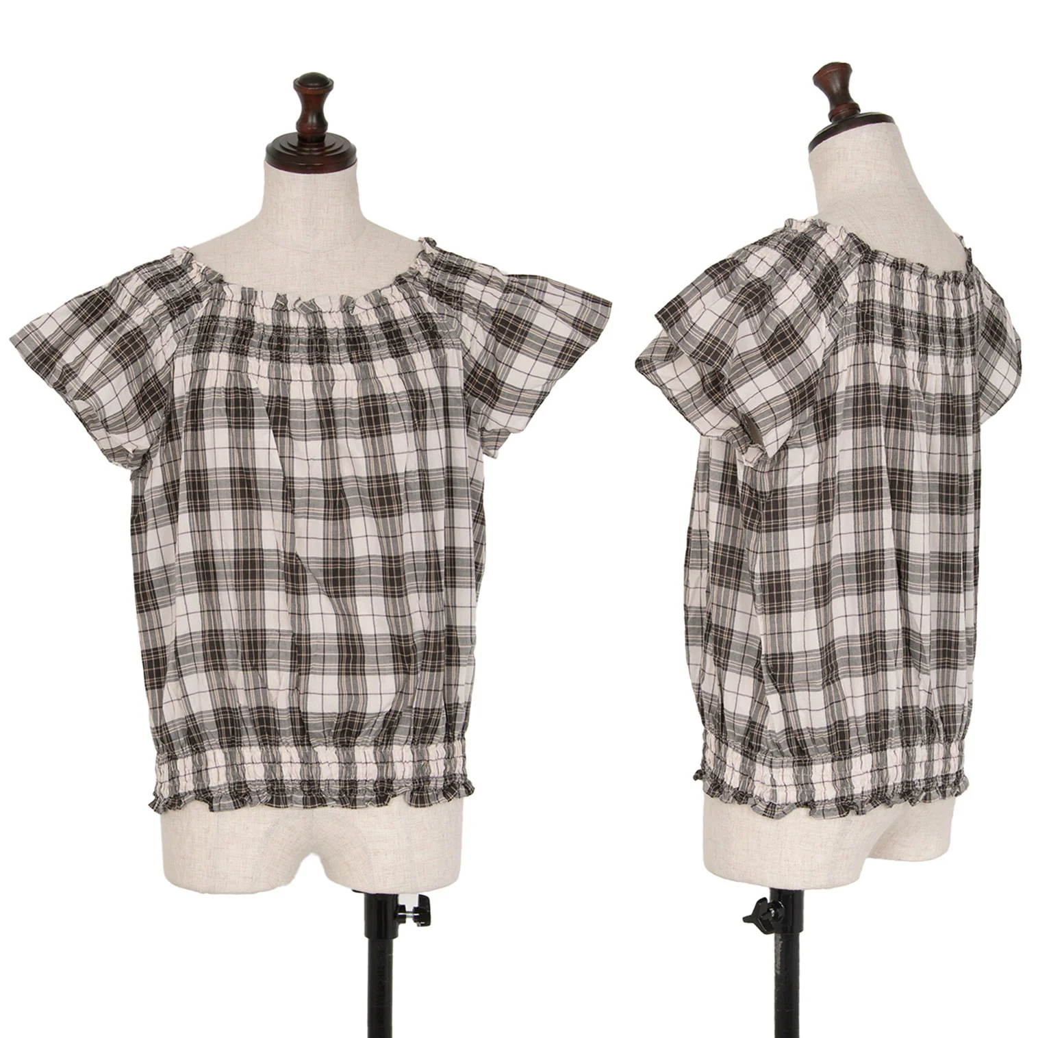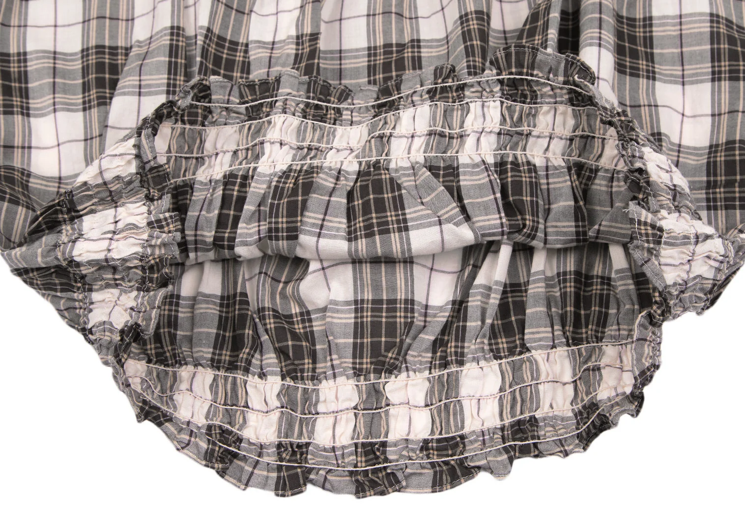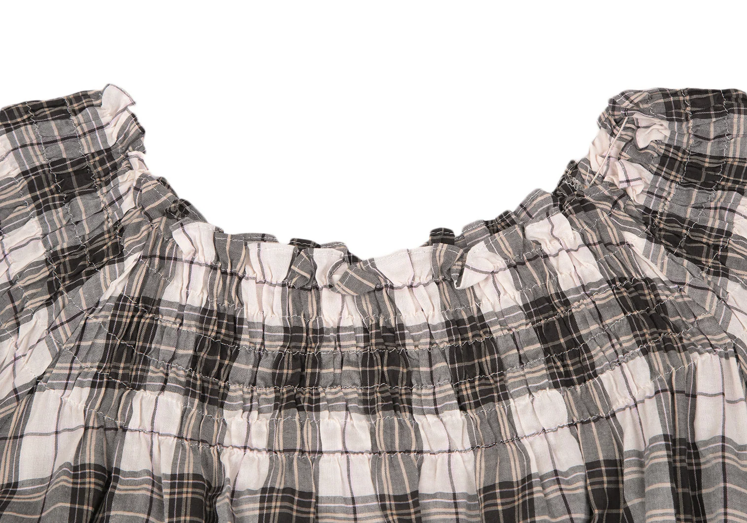 オールドイングランドOLD ENGLAND チェックギャザートップス 黒アイボリー36