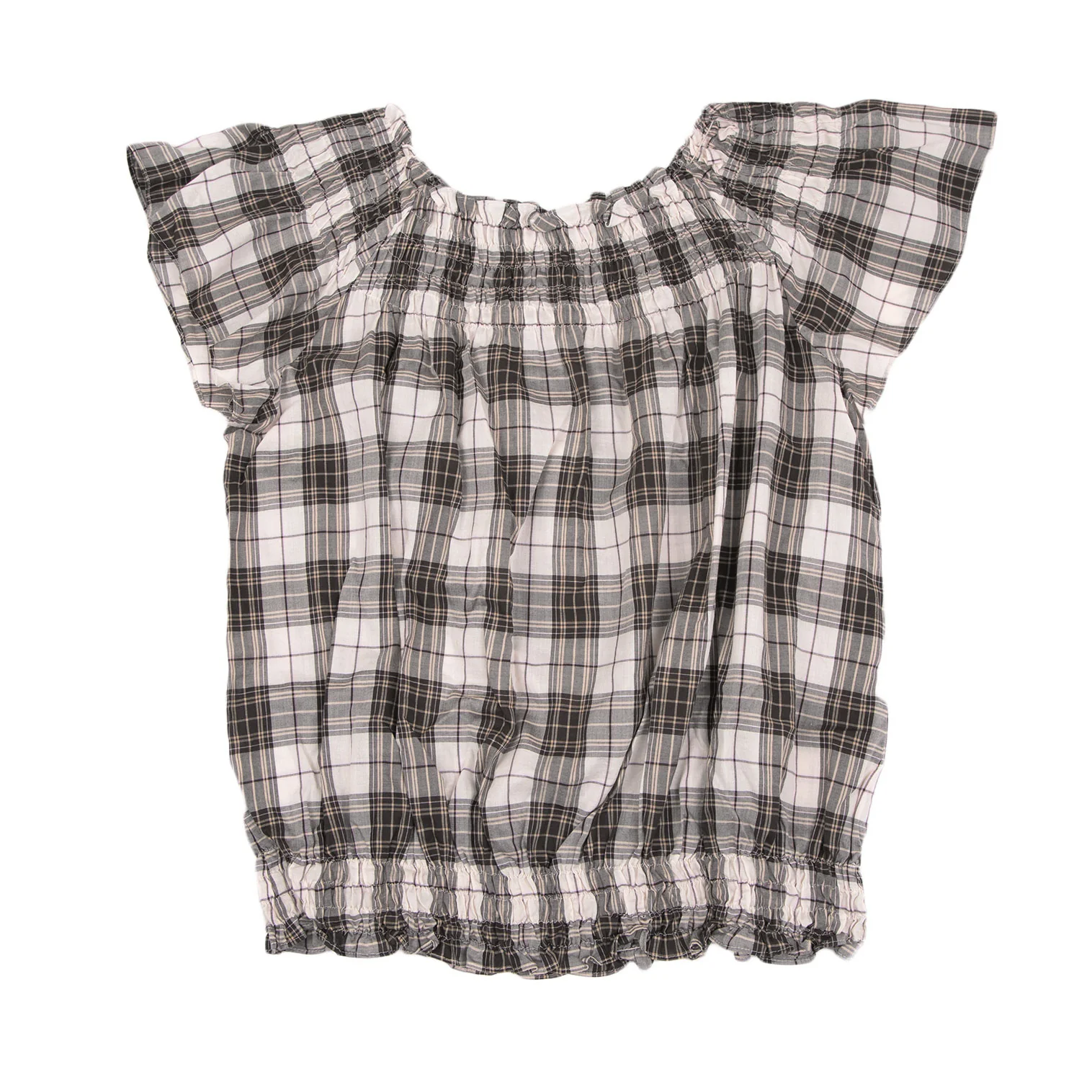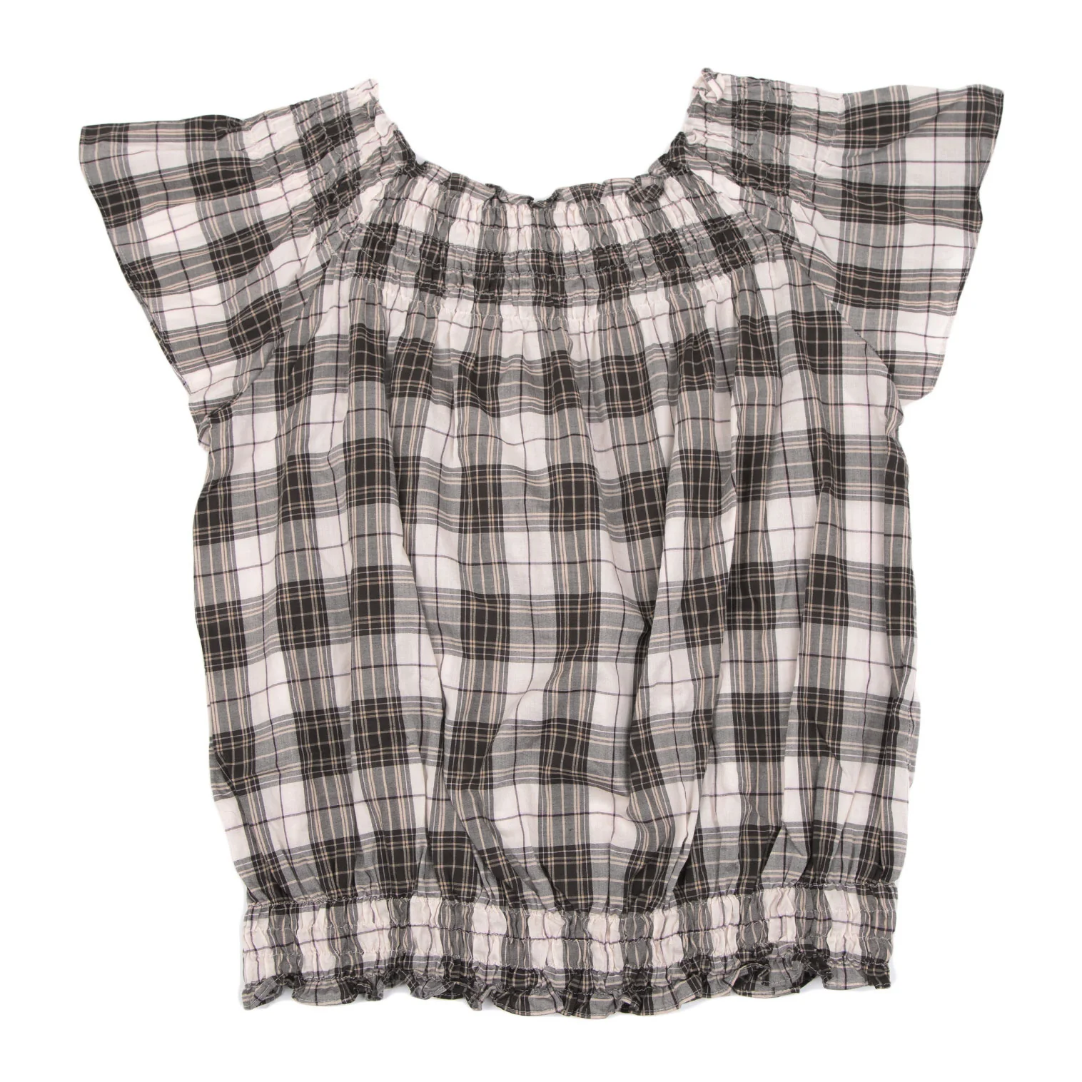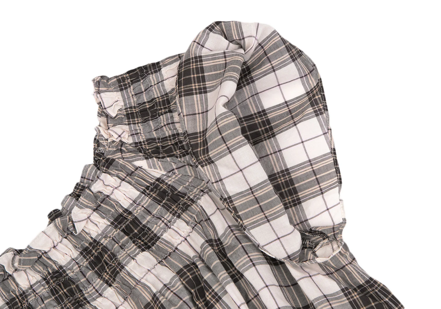 オールドイングランドOLD ENGLAND チェックギャザートップス 黒アイボリー36
