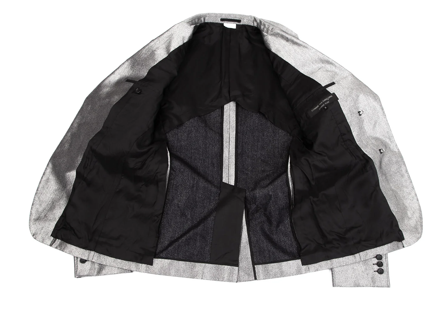 コムデギャルソン オムプリュスCOMME des GARCONS HOMME PLUS メタリックホックボタンジャケットセットアップスーツ シルバーM・L