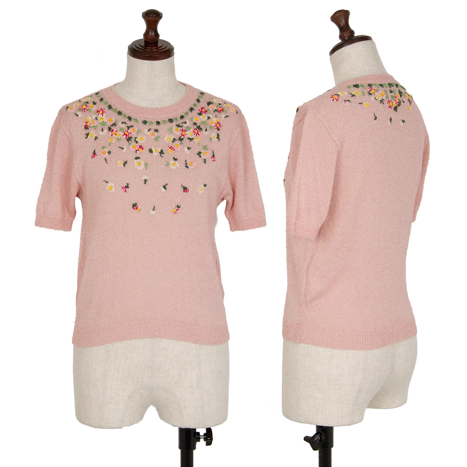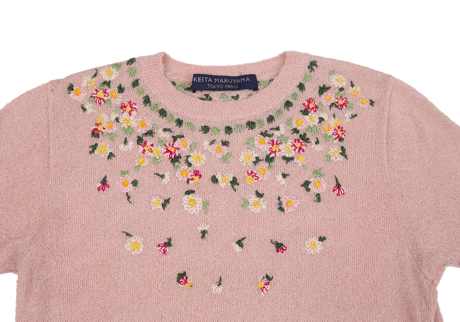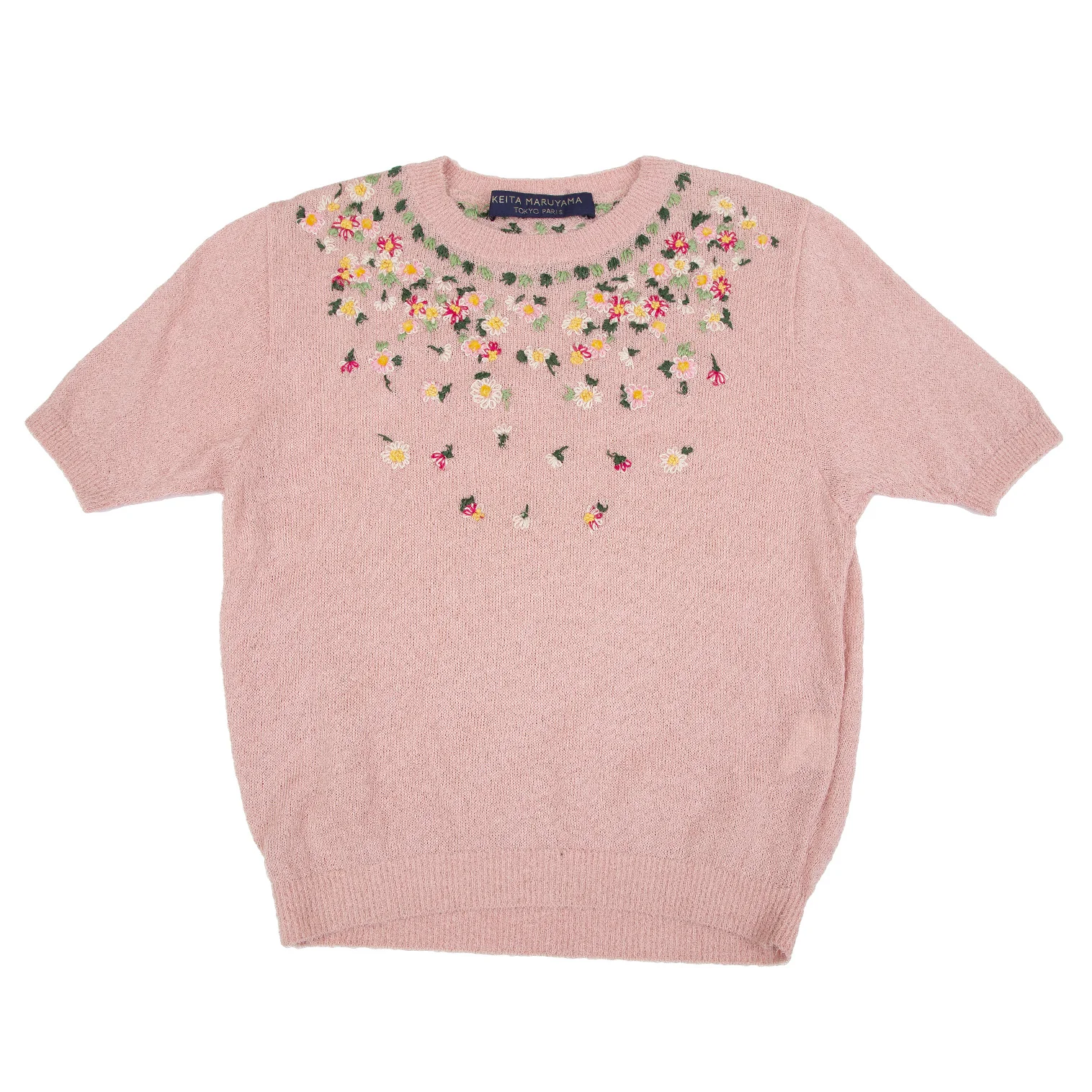 ケイタマルヤマKEITA MARUYAMA 小花刺繍半袖ニット ピンクM