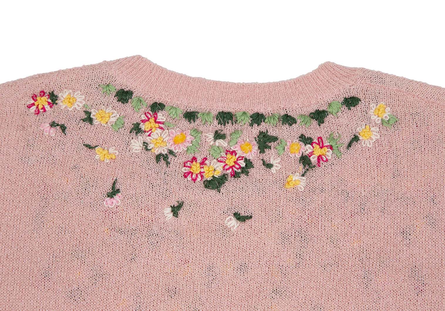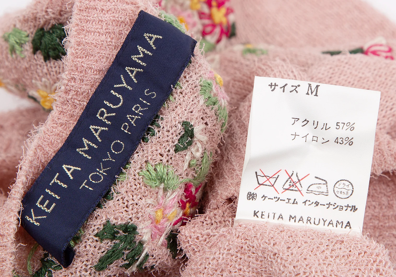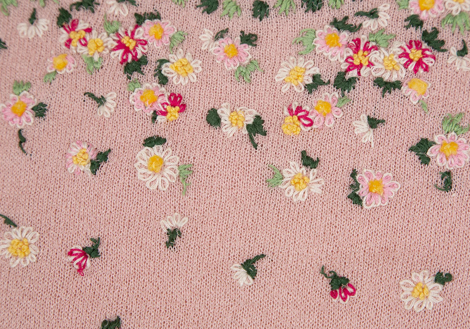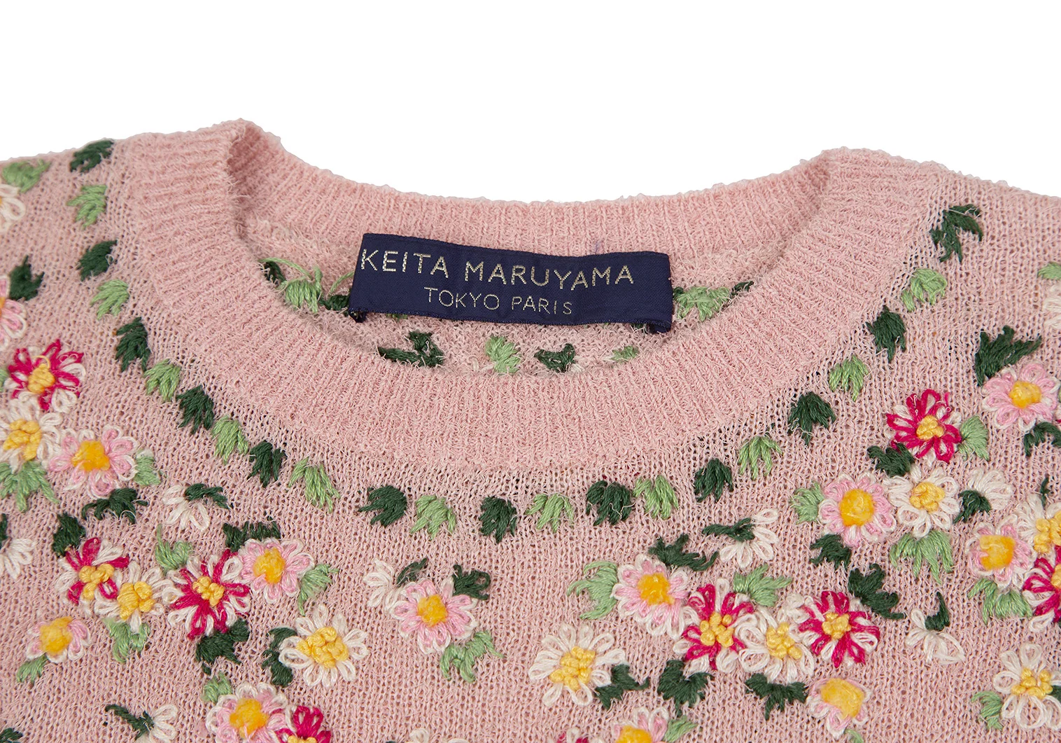 ケイタマルヤマKEITA MARUYAMA 小花刺繍半袖ニット ピンクM